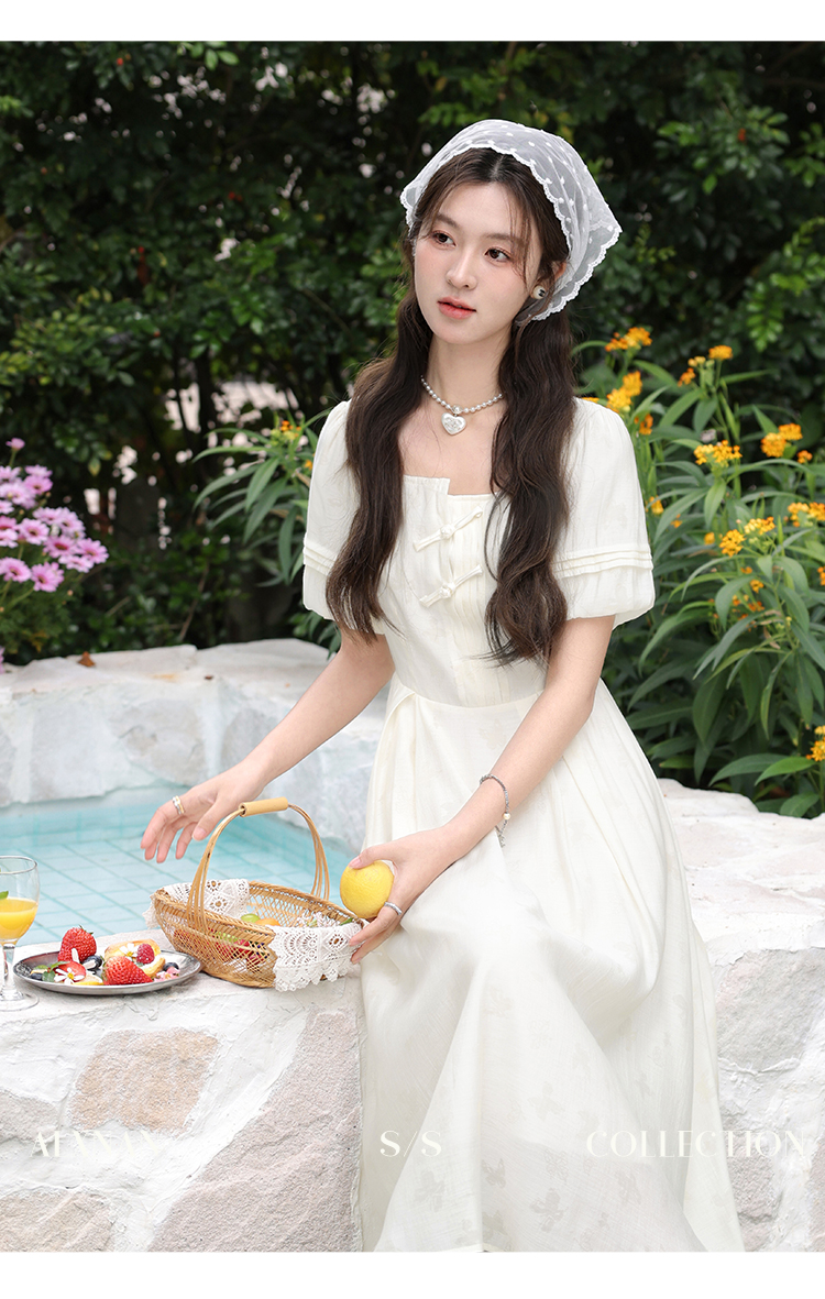 鹿向南《山间鹿鸣》法式方领连衣裙L35006