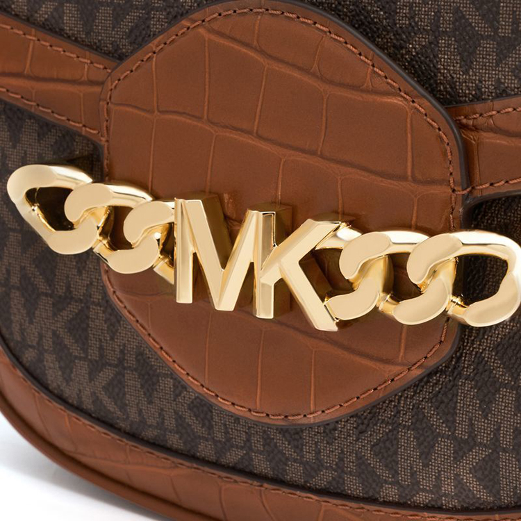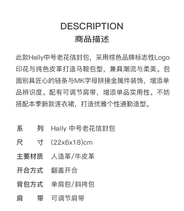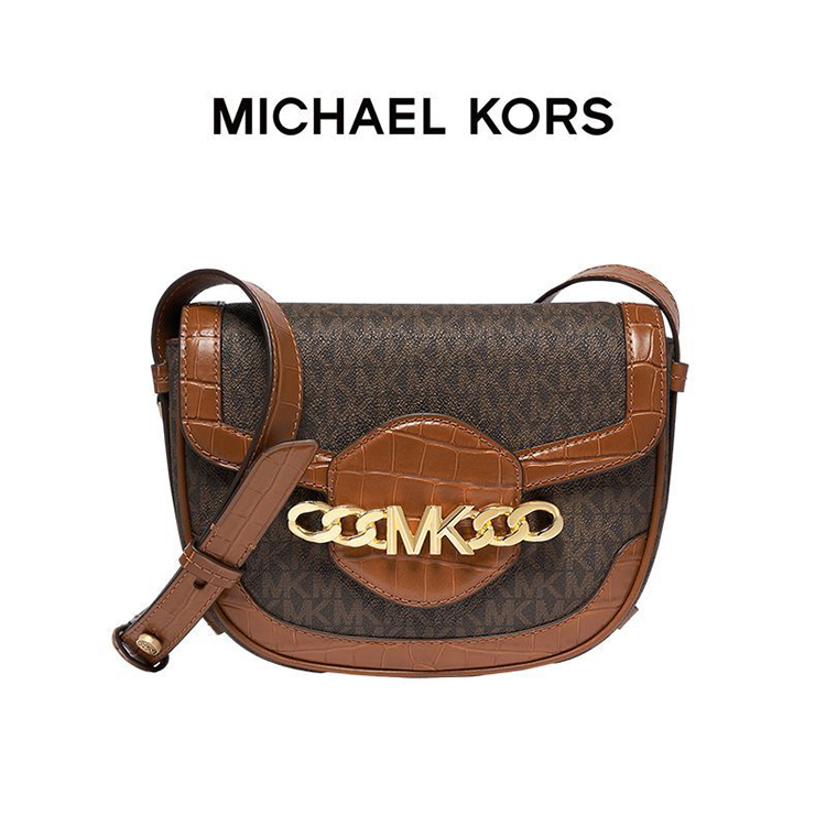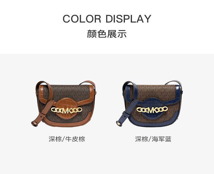 【品牌】MK HALLY 中号Logo拼接老花信封马鞍斜挎女包深棕/海军蓝
