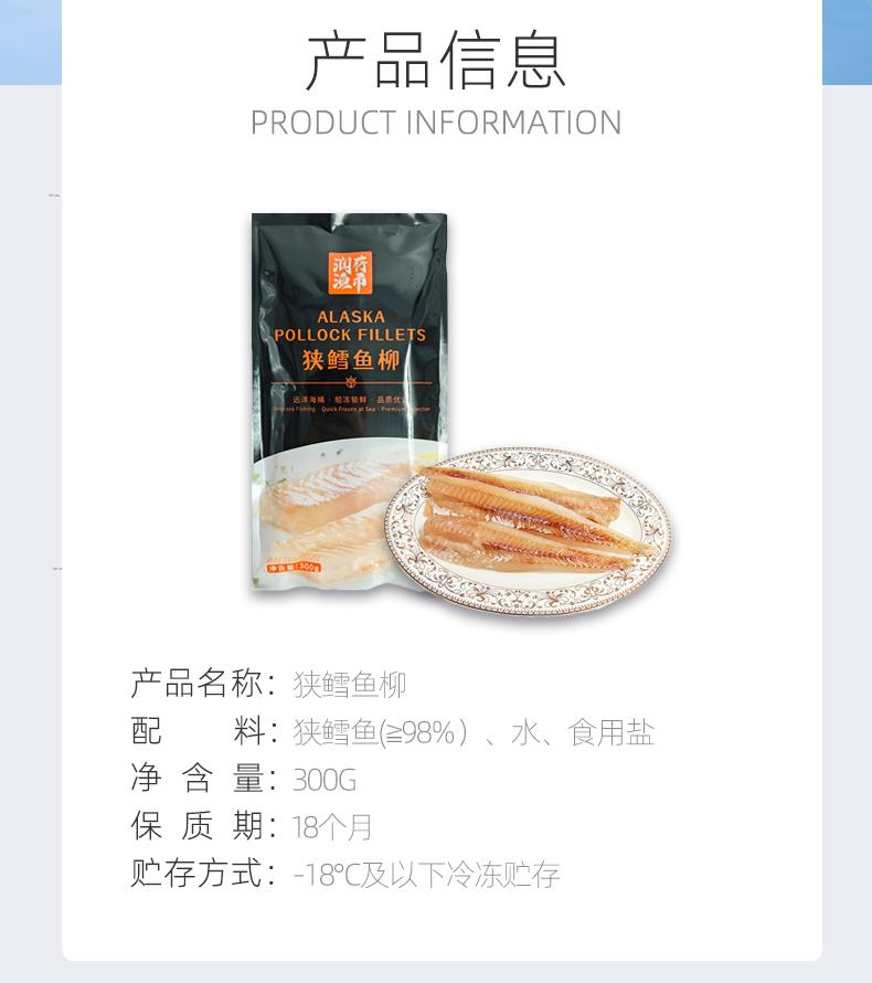 【润荇渔市200-100】进口俄罗斯速冻狭鳕鱼柳 300g/袋 白令海峡远洋捕捞