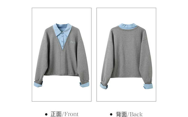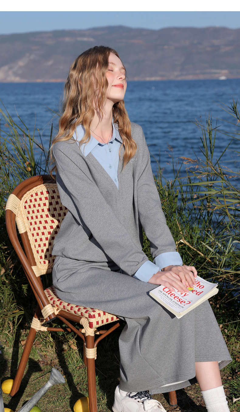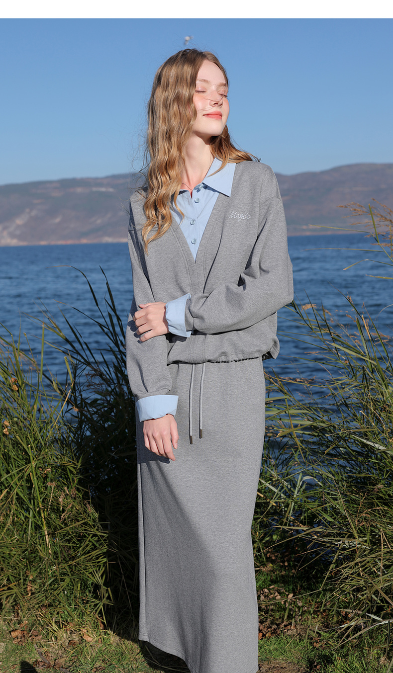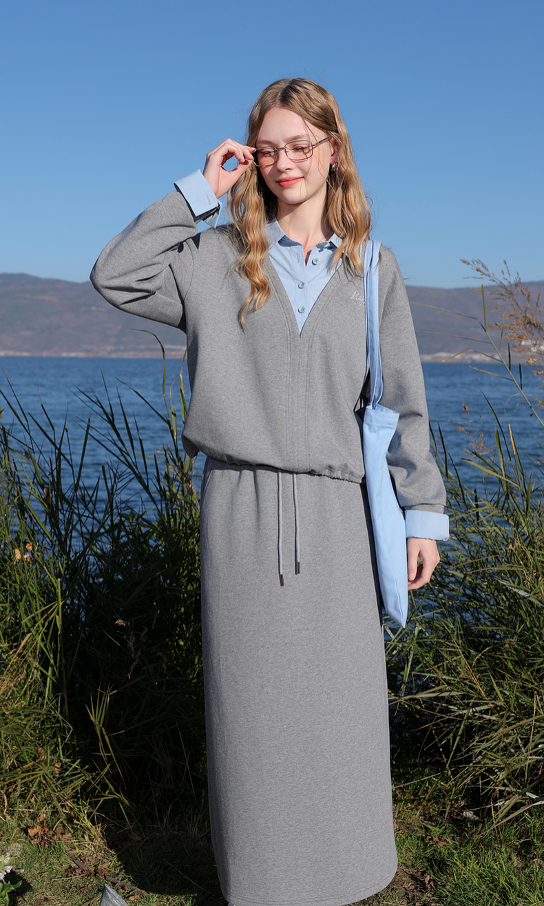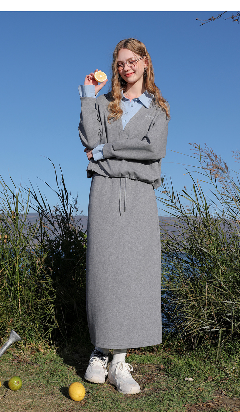 三彩2026春季新款卫衣套装假两件套头衫直筒半身裙长裙两件套M