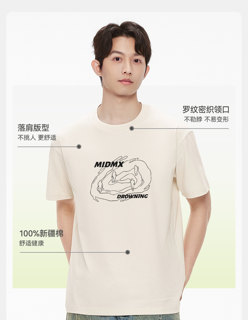 「棉的美学」纯棉质感宽松圆领短袖T恤趣味印花潮流休闲上衣男装