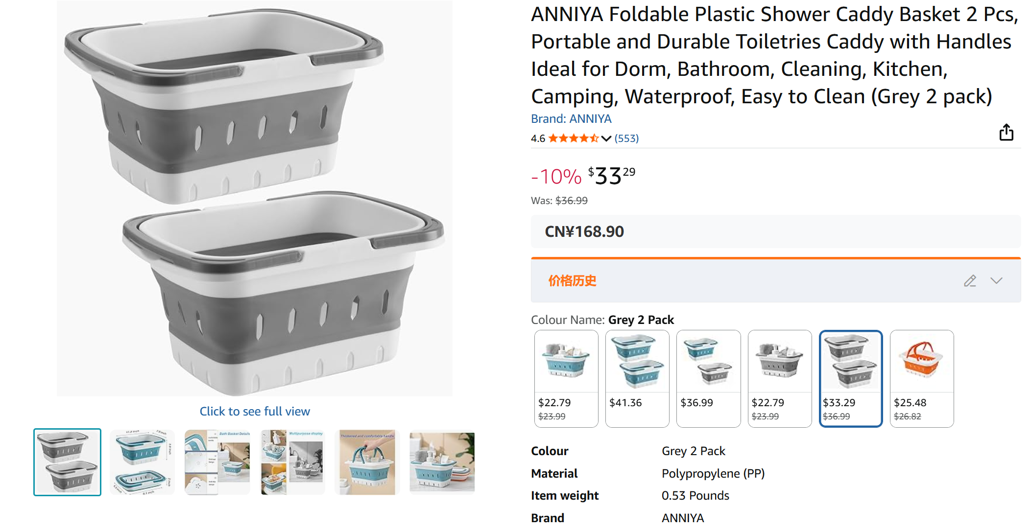 【亚马逊两个33.29美元约人民币168.9元】