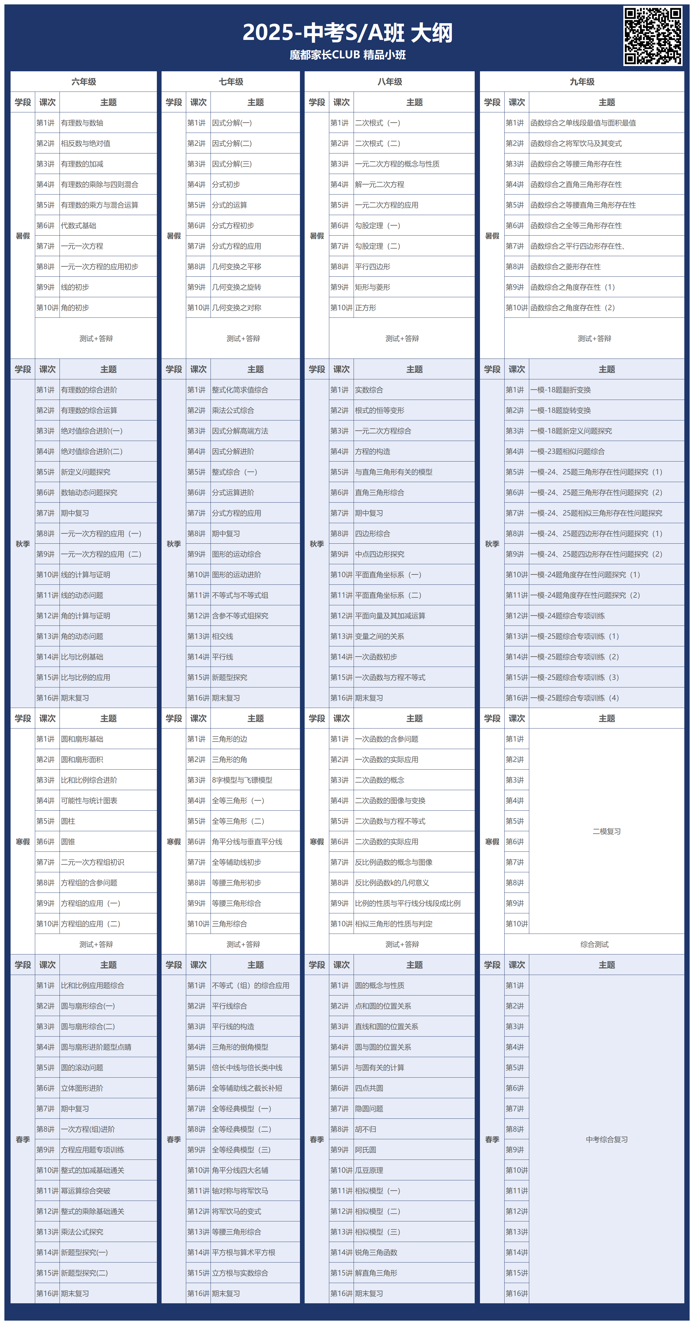 💕6~8年级,三年学完初中课内全部内容,采用 “寒暑预习+春秋拔高”的双轨教学模式,兼顾基础巩固与能力提升