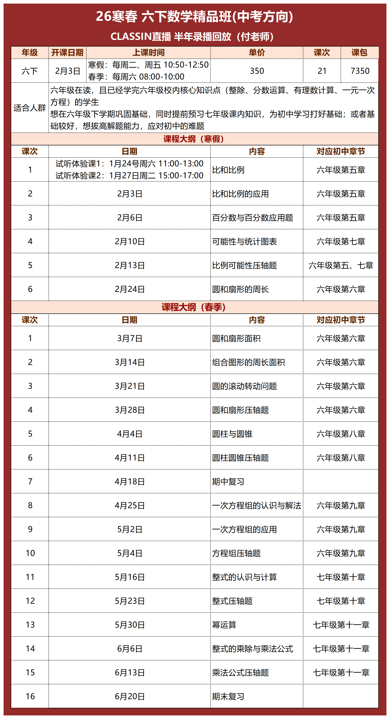 课程大纲(六下寒春季大纲)
