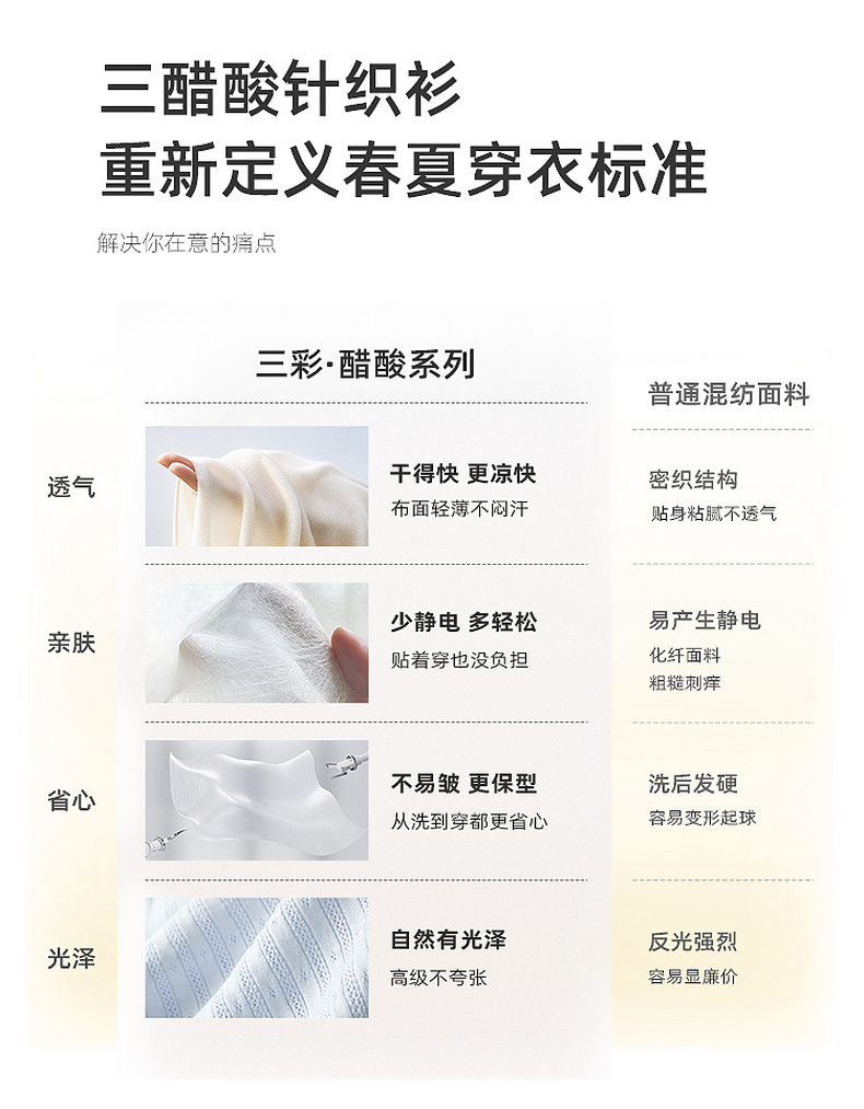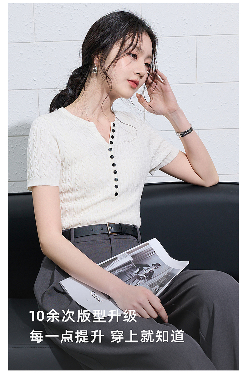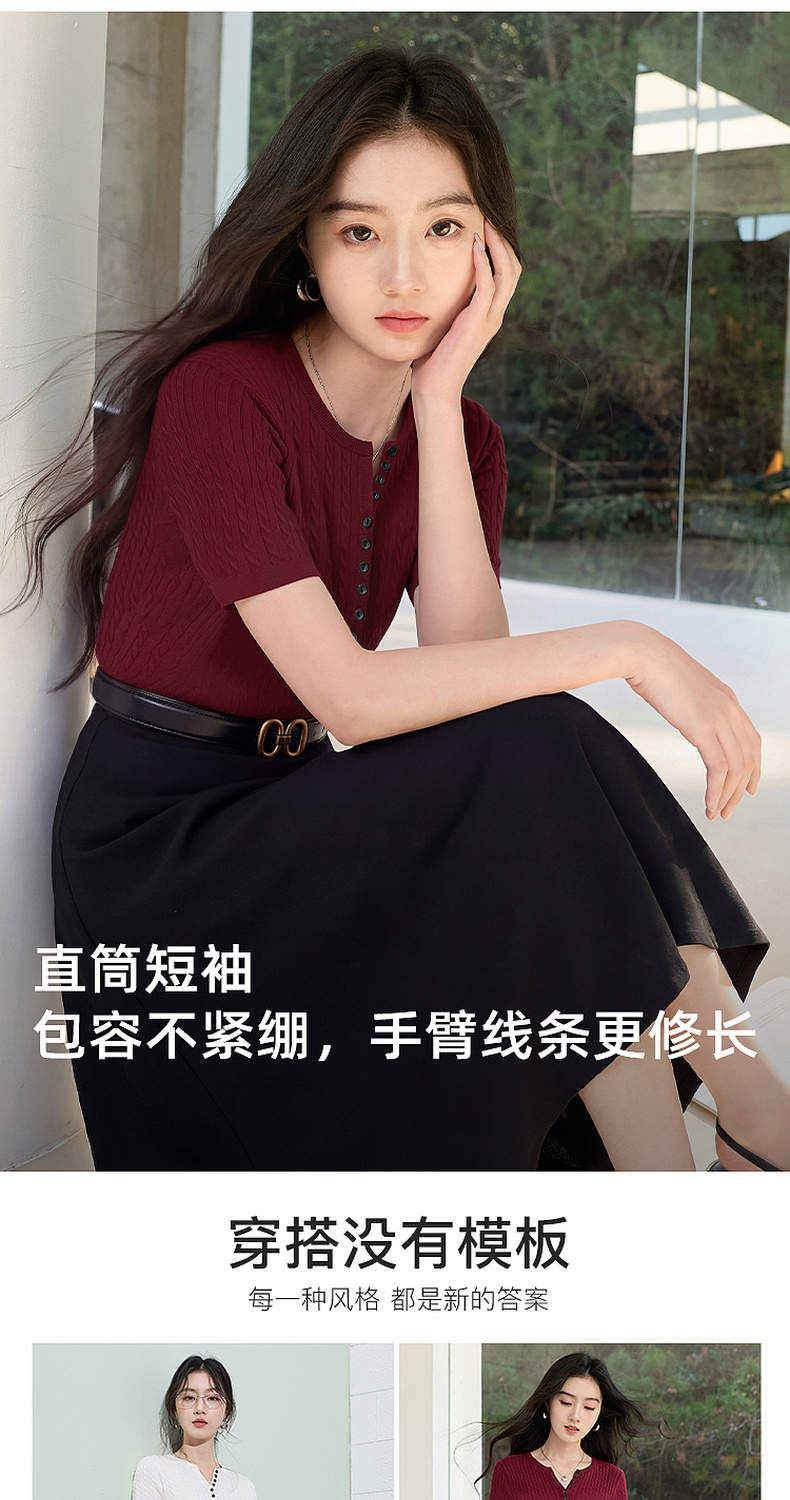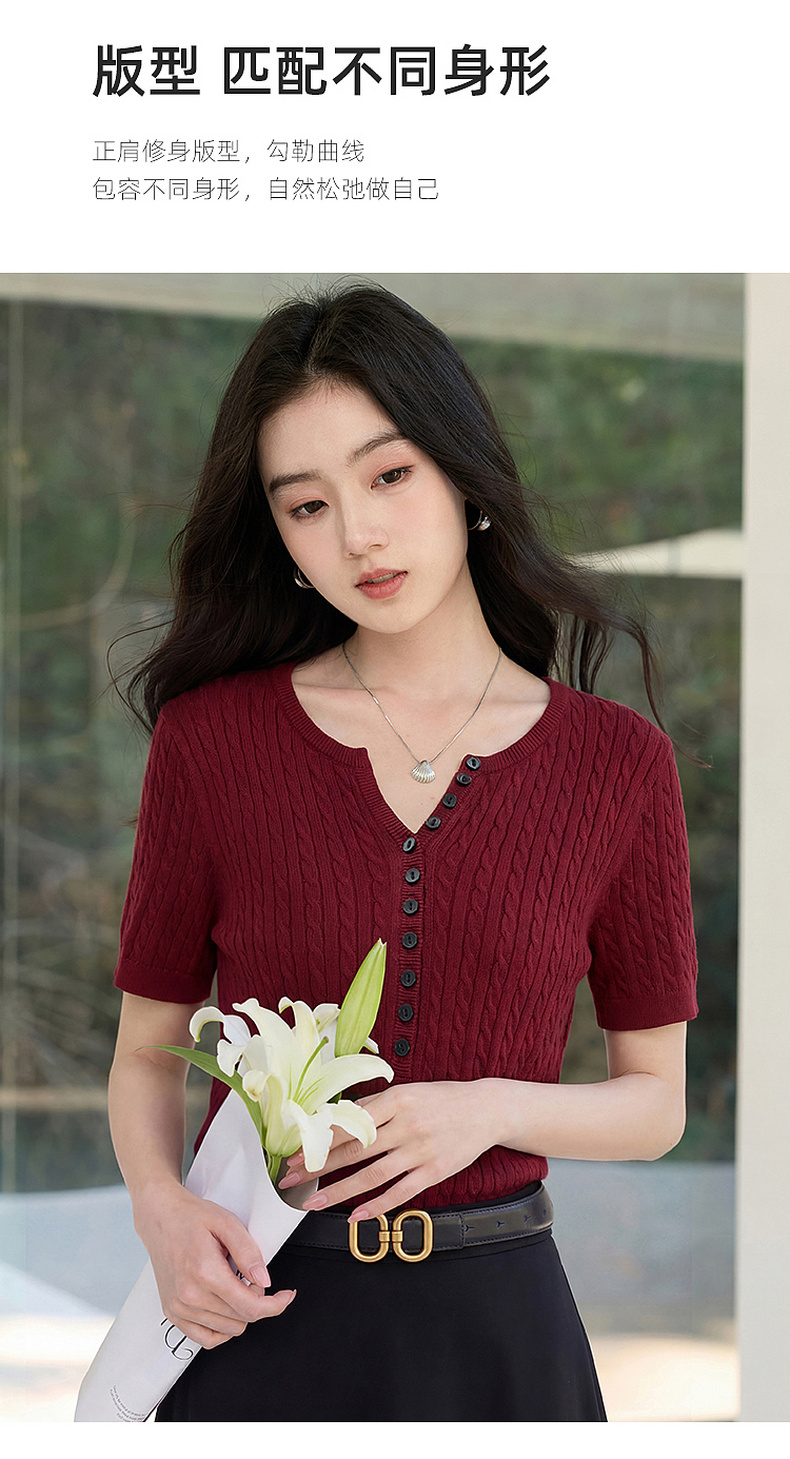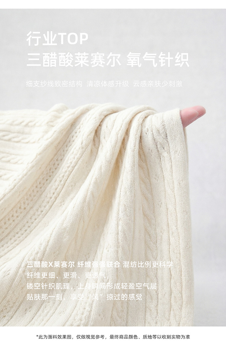 【莱赛尔三醋酸】三彩2026夏季新款修身短袖绞花针织衫上衣套头S