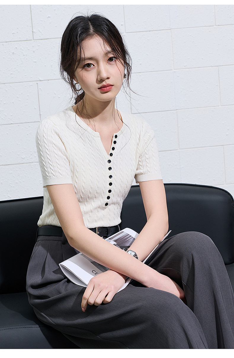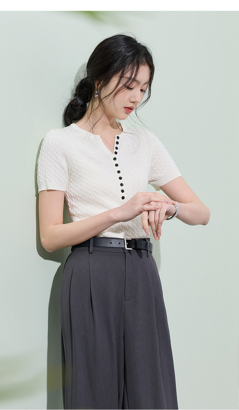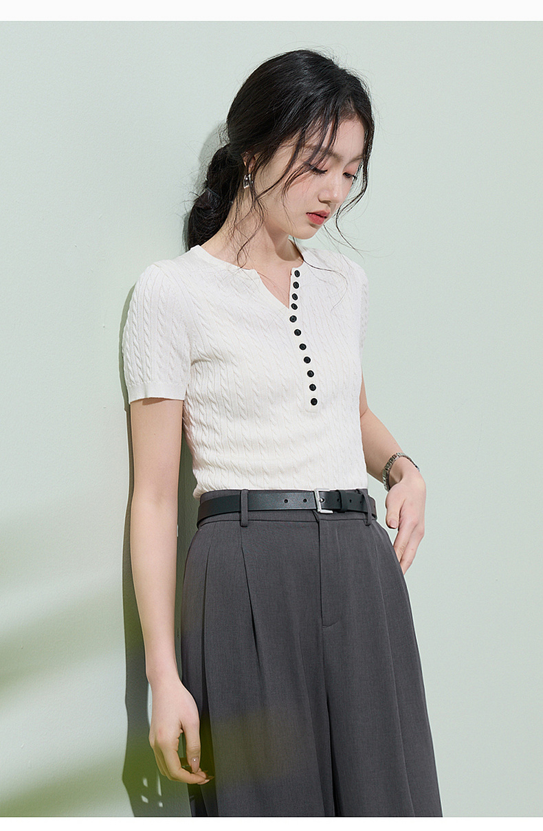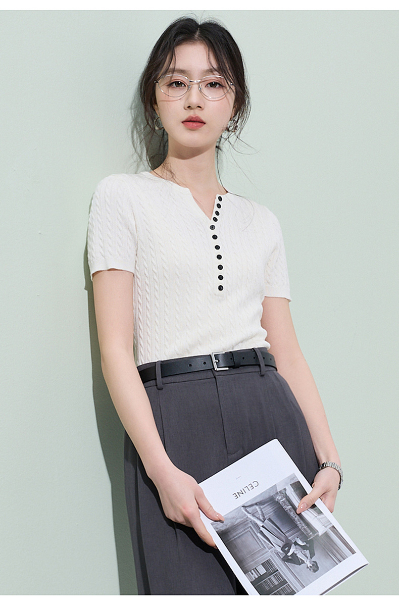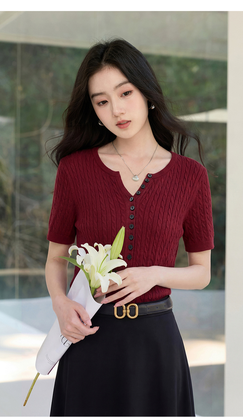 【莱赛尔三醋酸】三彩2026夏季新款修身短袖绞花针织衫上衣套头S