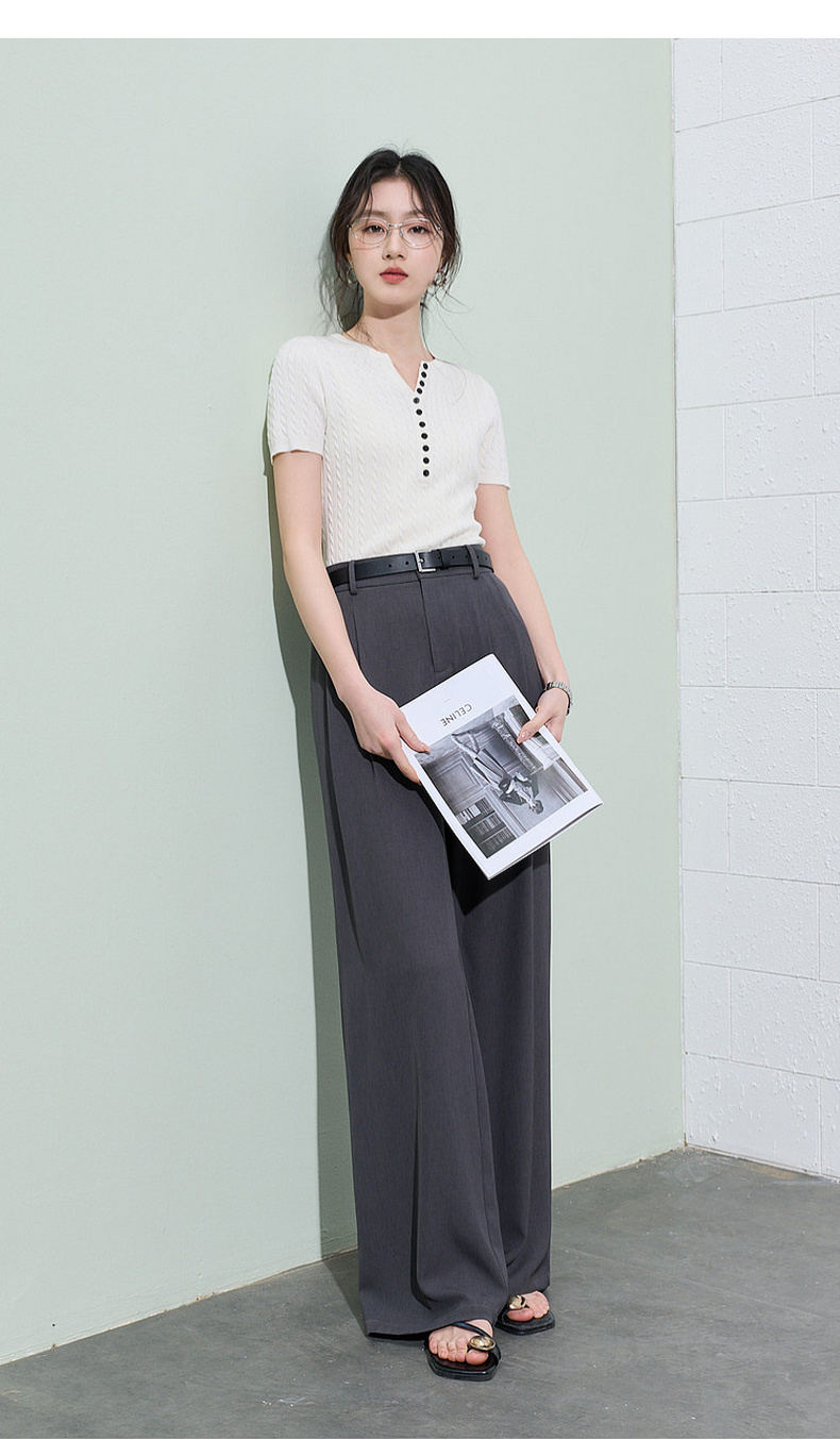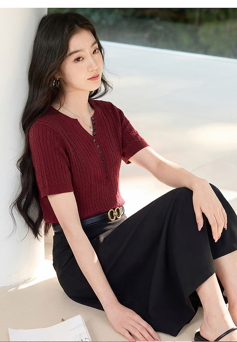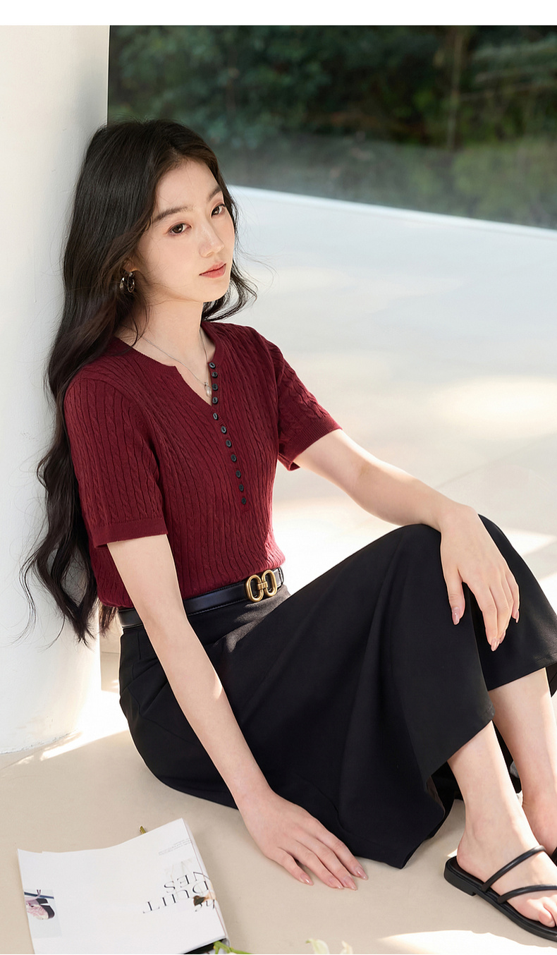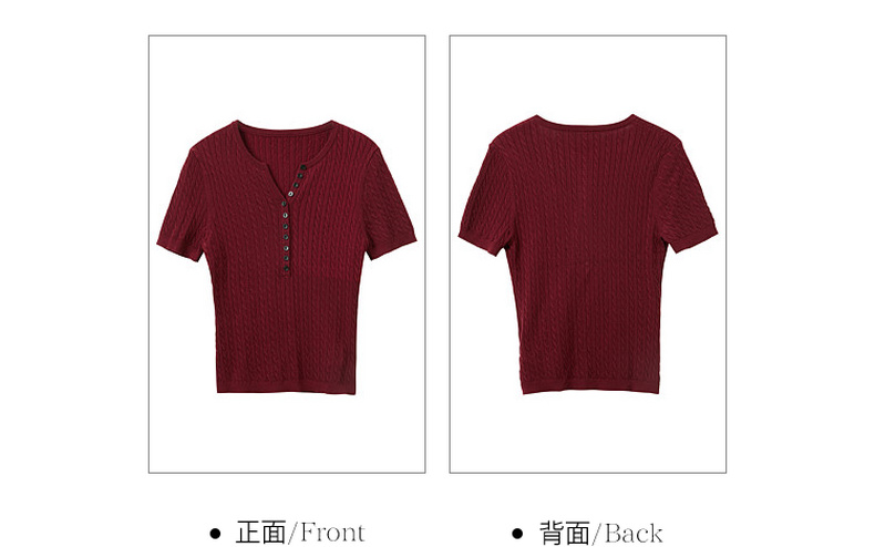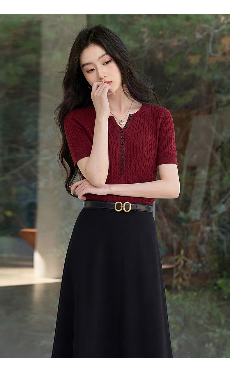 【莱赛尔三醋酸】三彩2026夏季新款修身短袖绞花针织衫上衣套头S