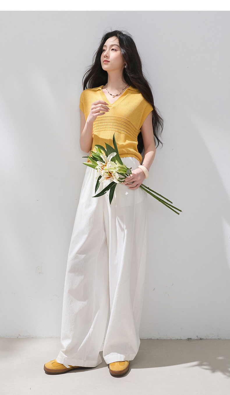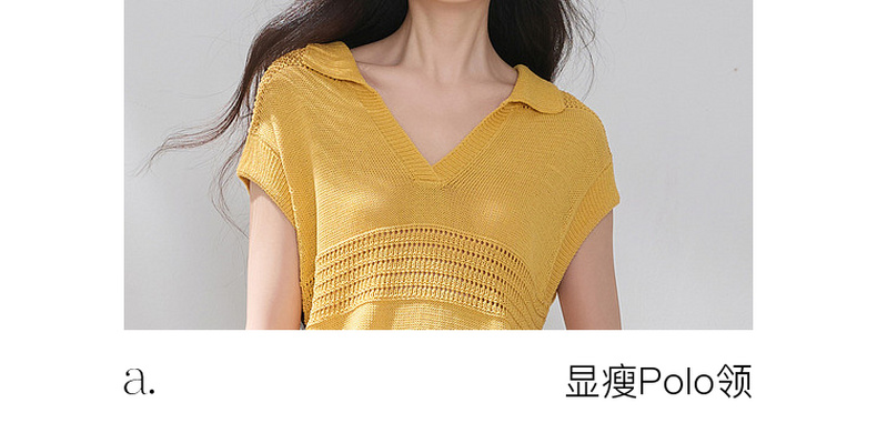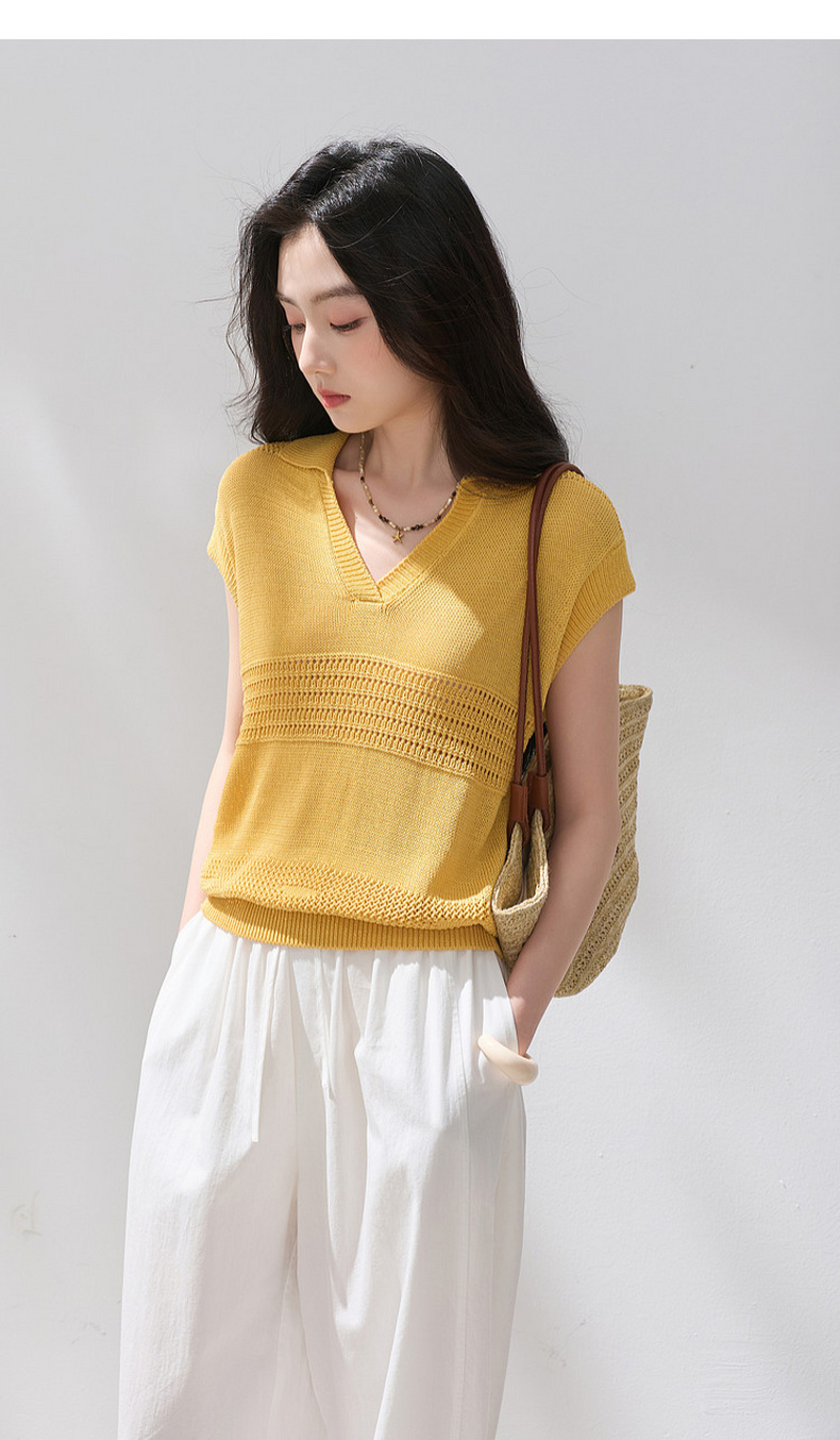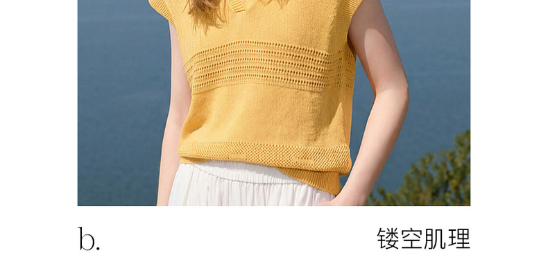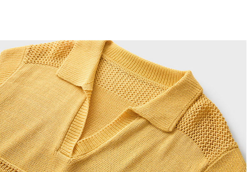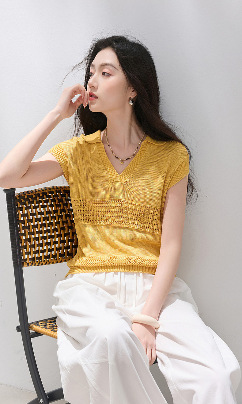 三彩2026夏季新款镂空肌理针织衫Polo领毛衫简约气质上衣M