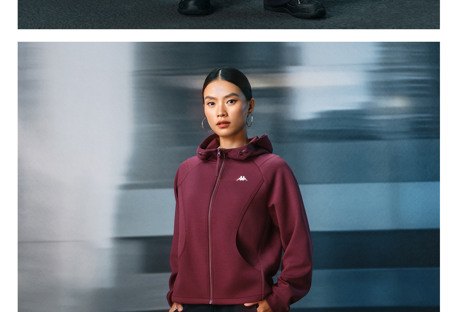 Kappa 针织开身帽衫撞色连帽运动外套女户外休闲风上衣K0G22MK41