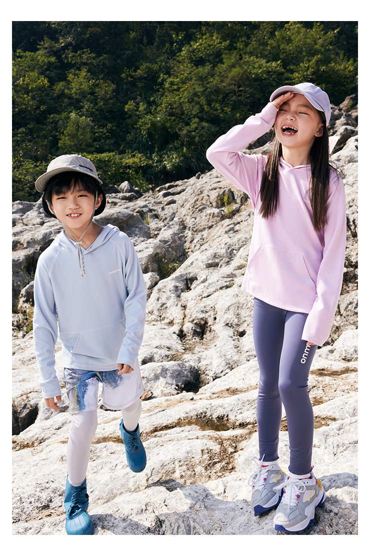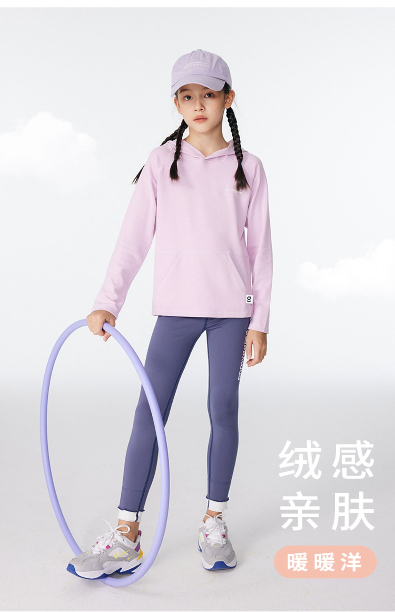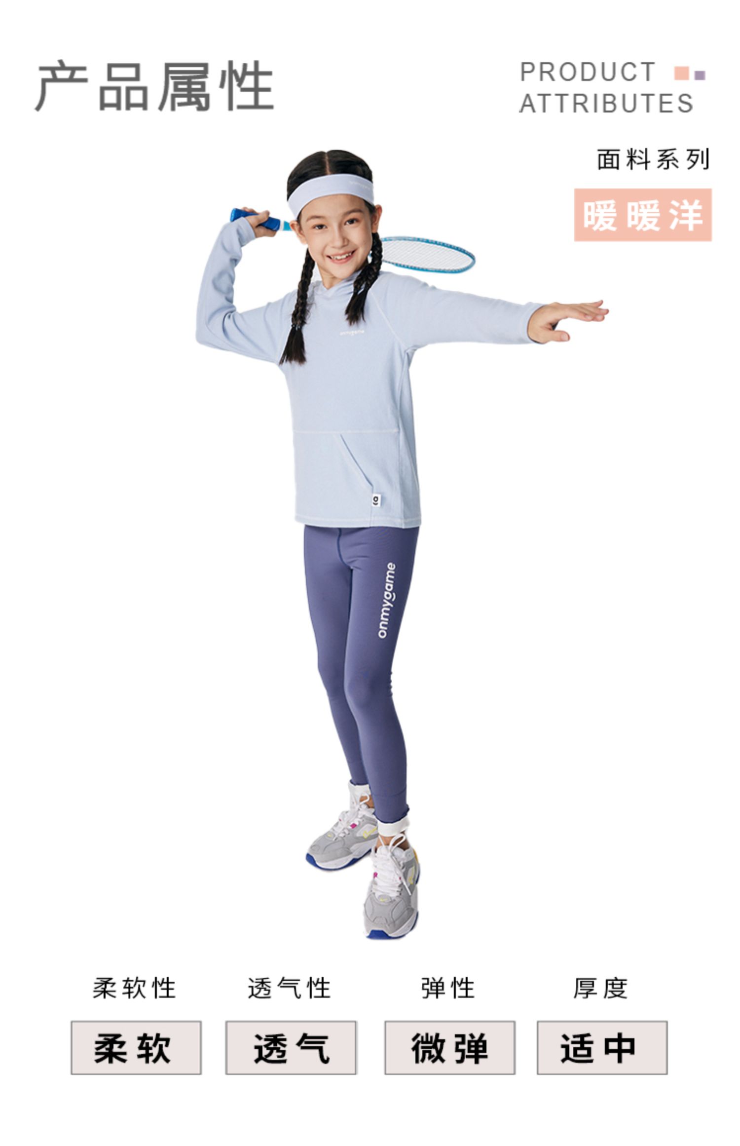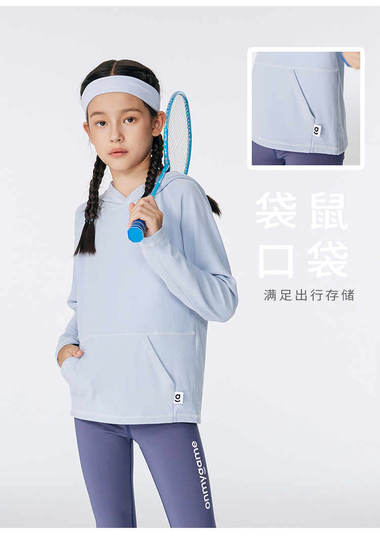 onmygame男女童长袖运动T恤儿童连帽套头衫运动衣打底衫