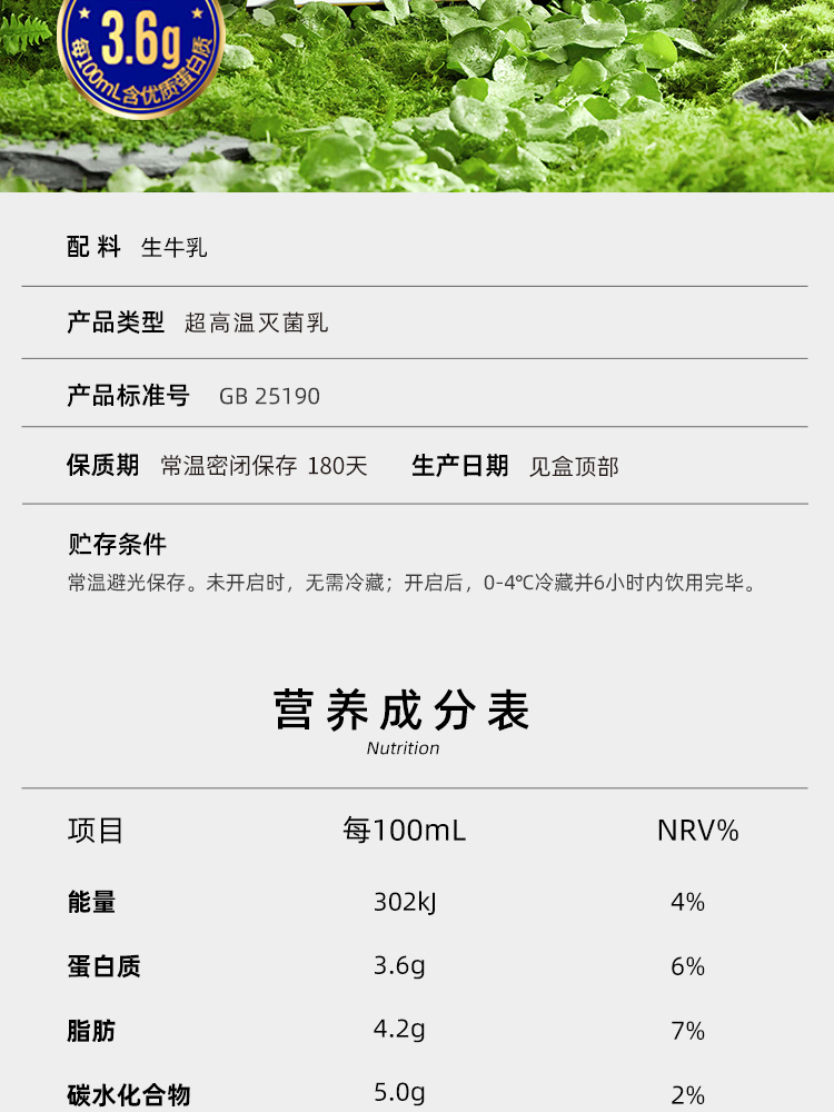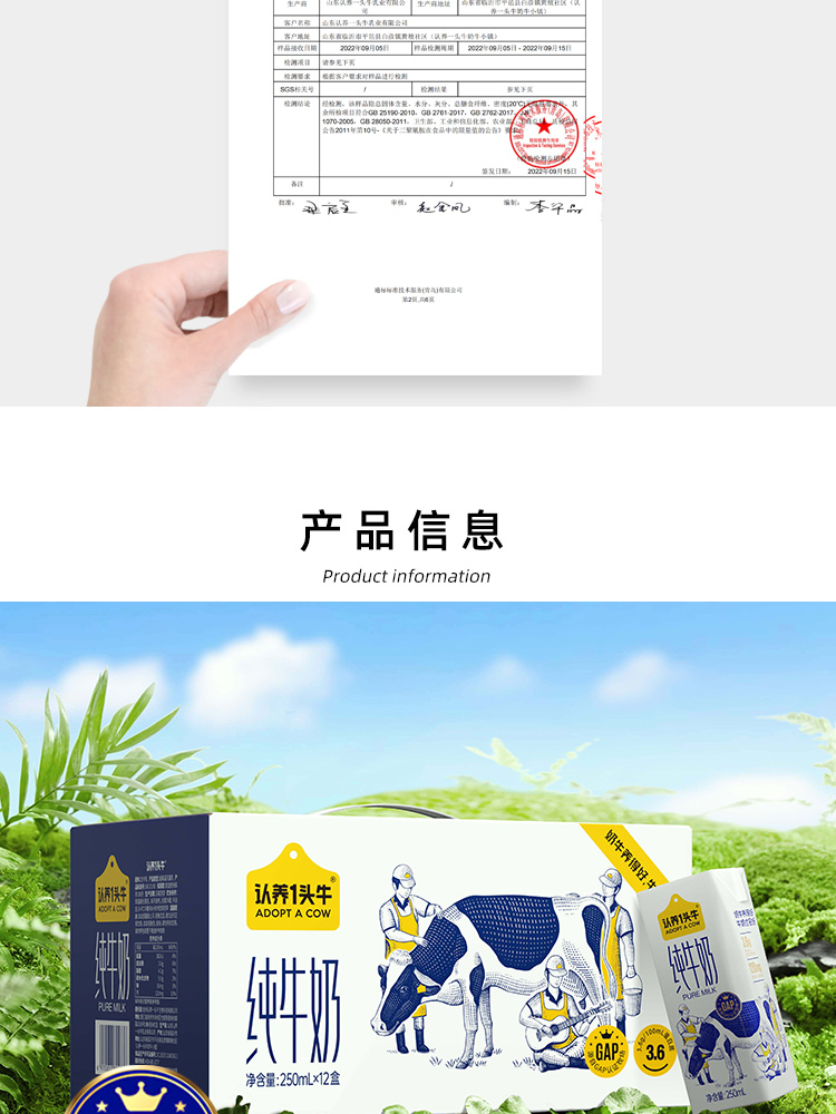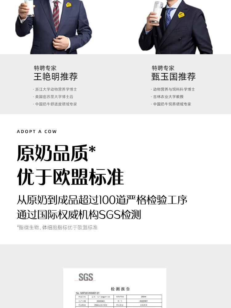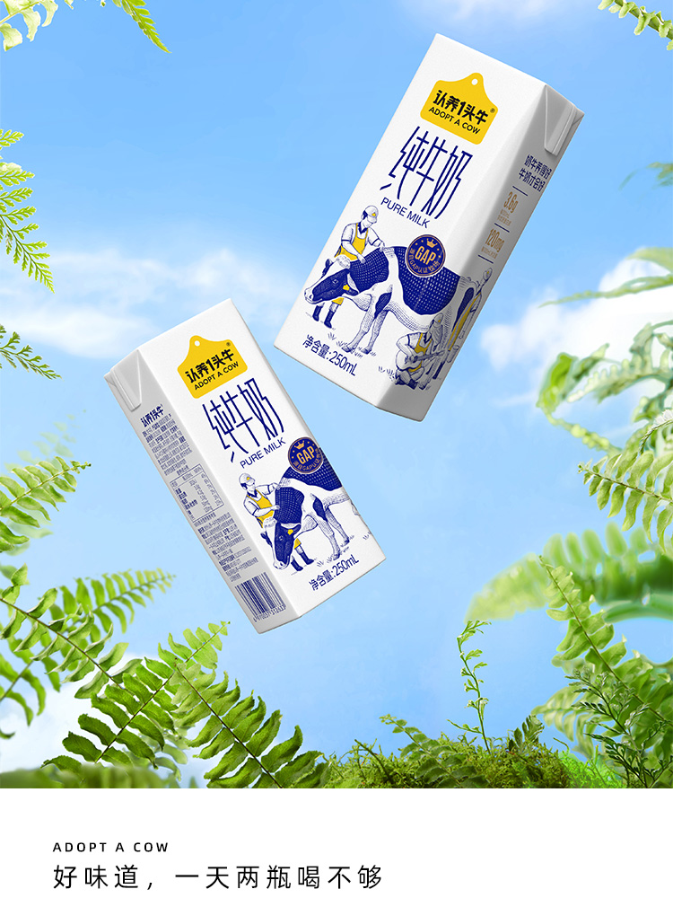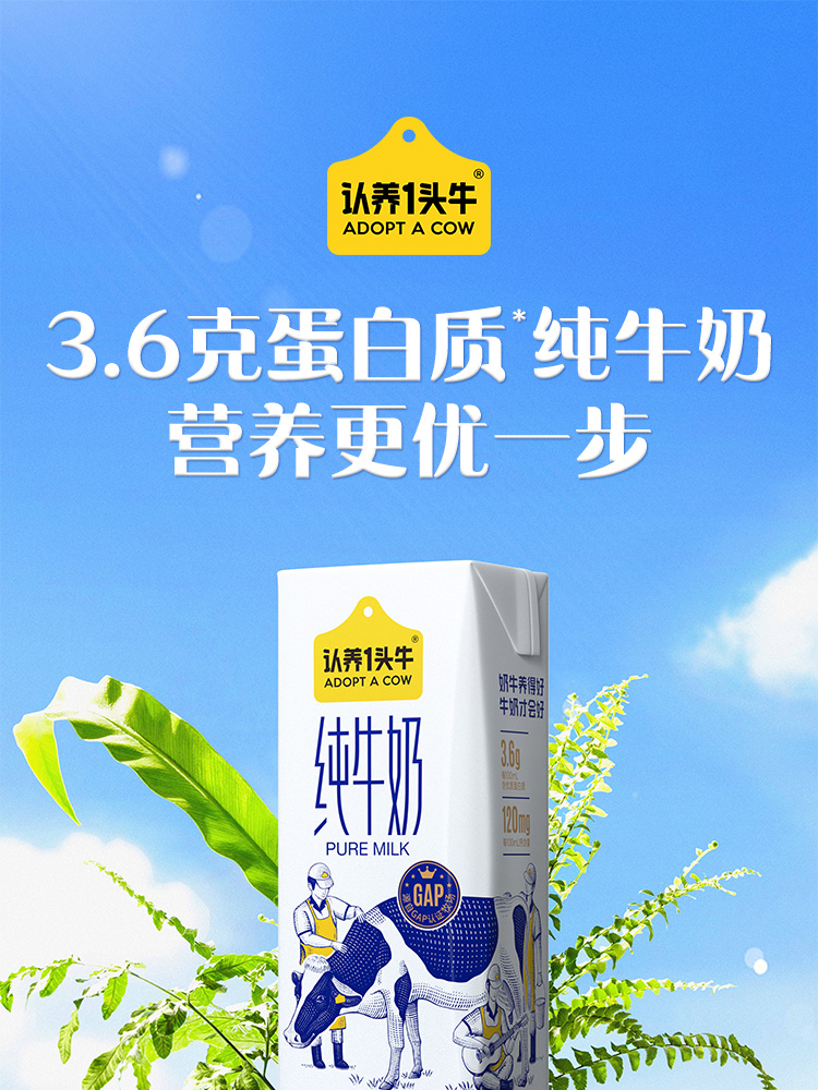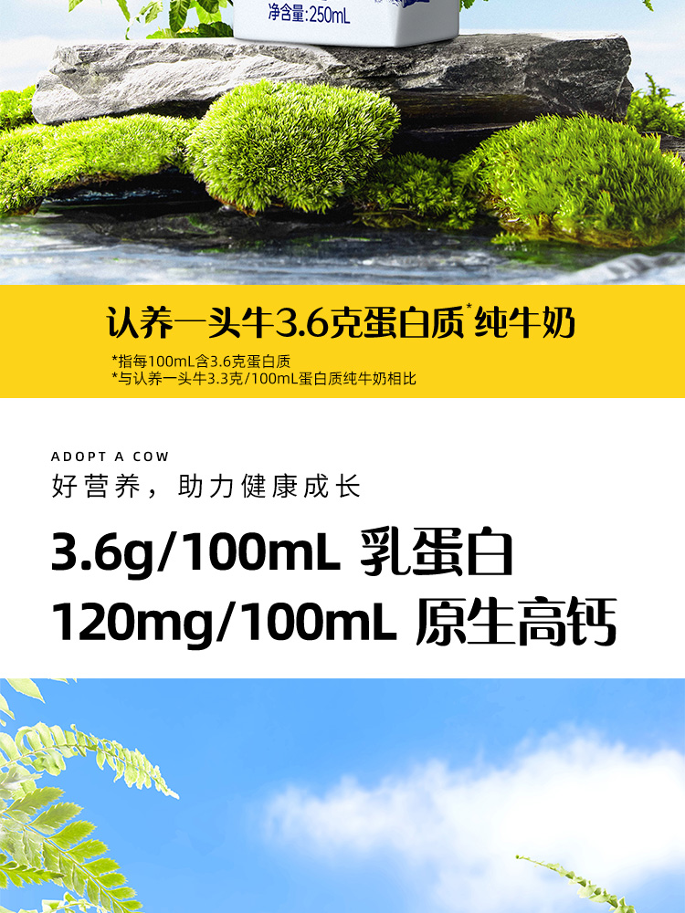 认养一头牛全脂纯牛奶学生营养早餐3.6g蛋白 250ml*12盒整箱