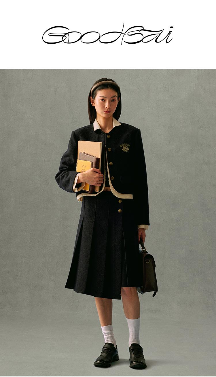 GOODBAI 学院风一片式不对称半身裙