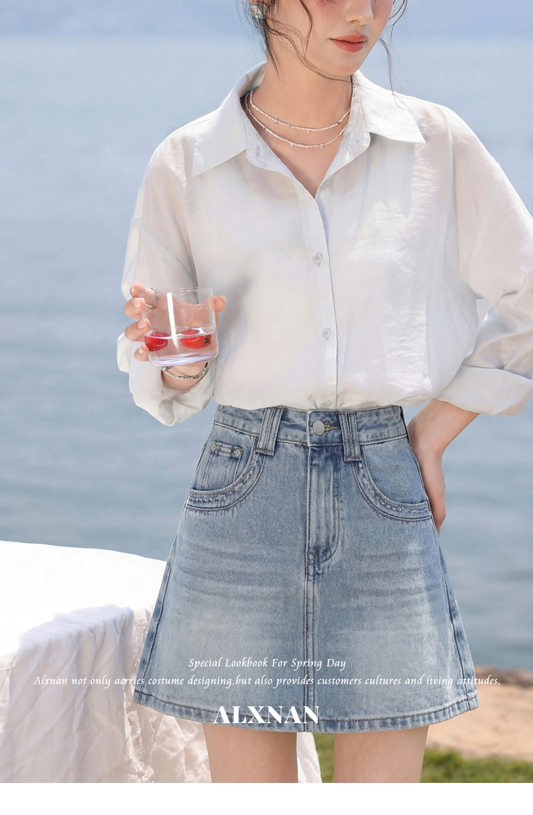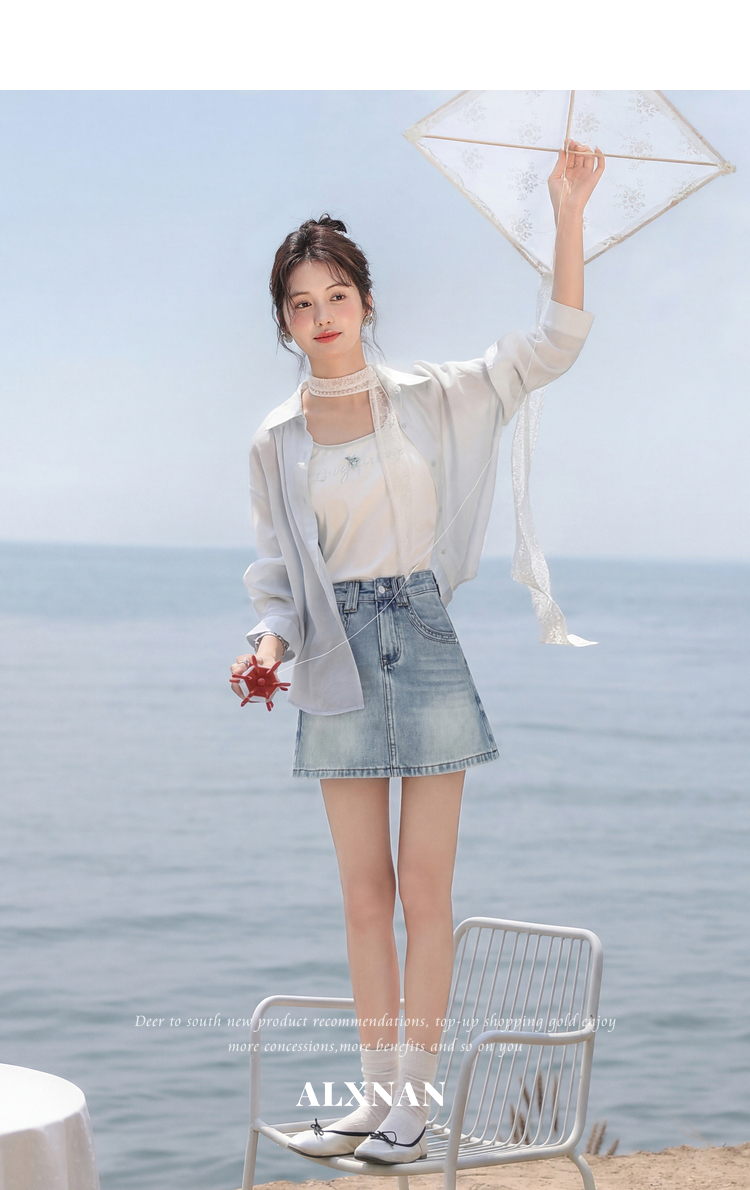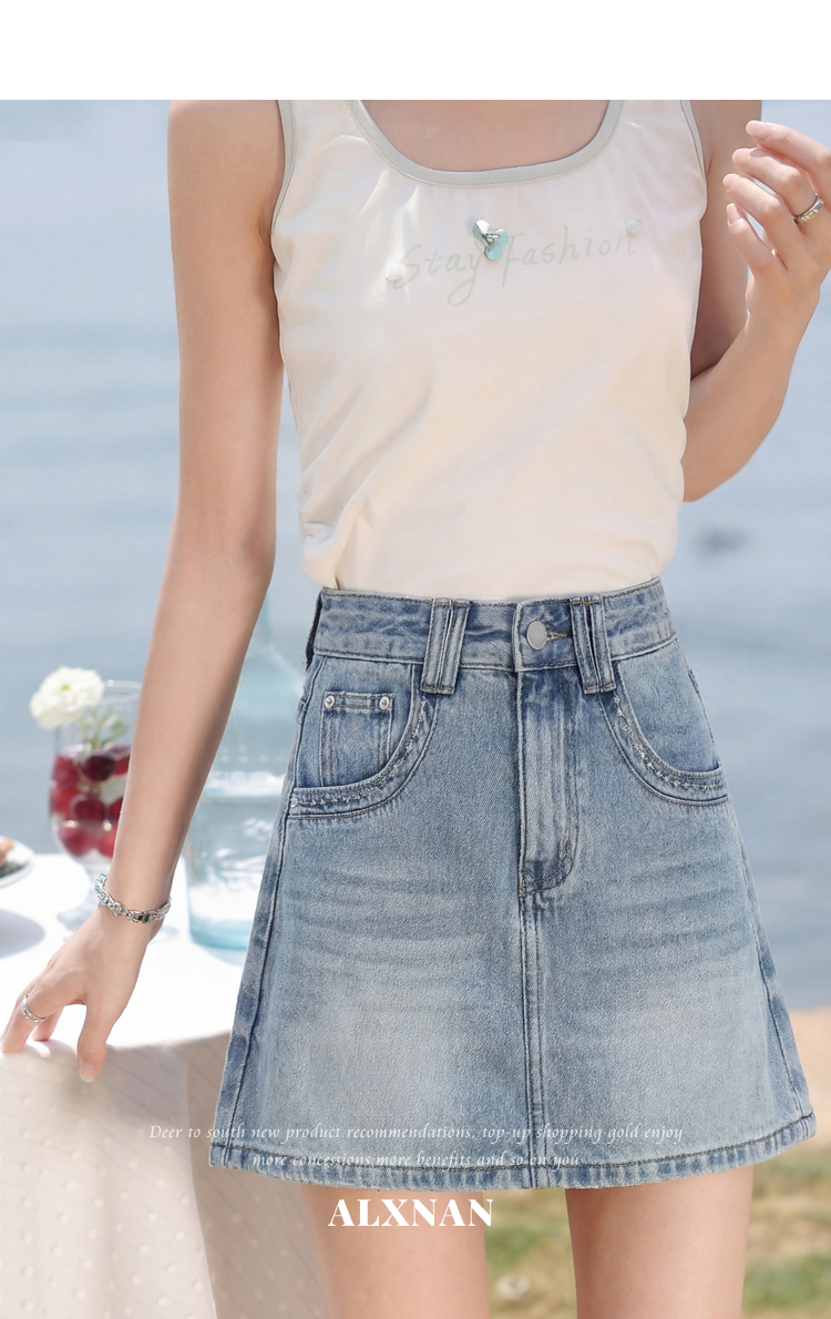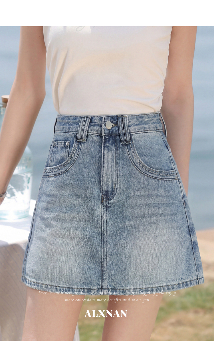 鹿向南「漫下歌语」小个子蓝色牛仔半身裙女夏季显瘦气质A字短裙