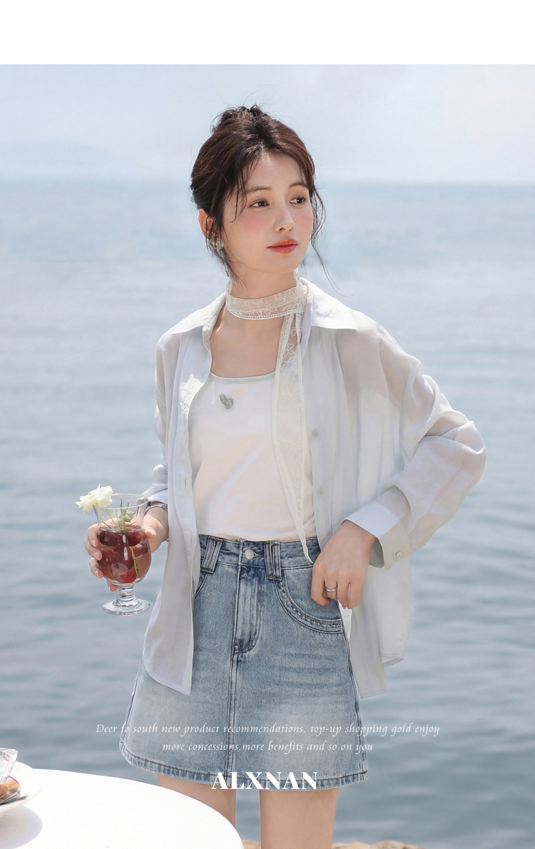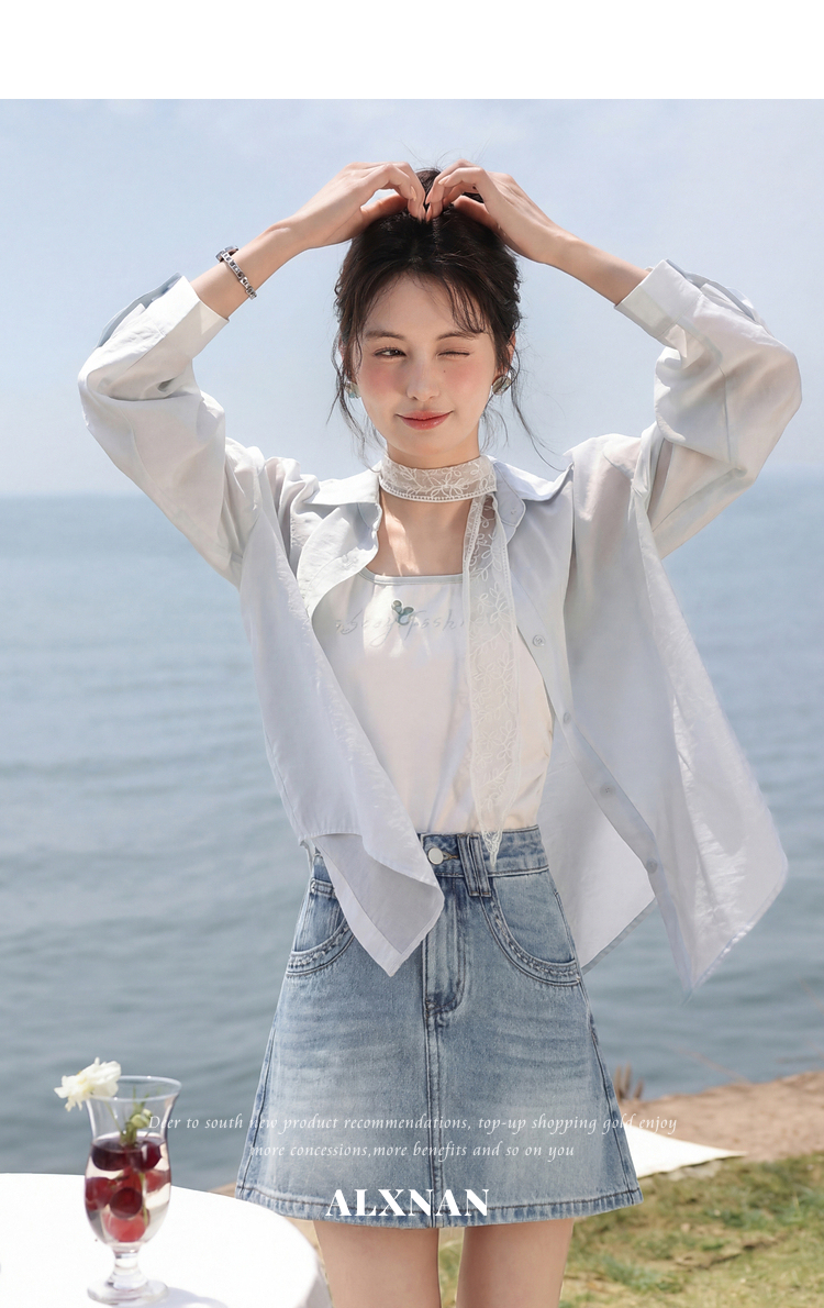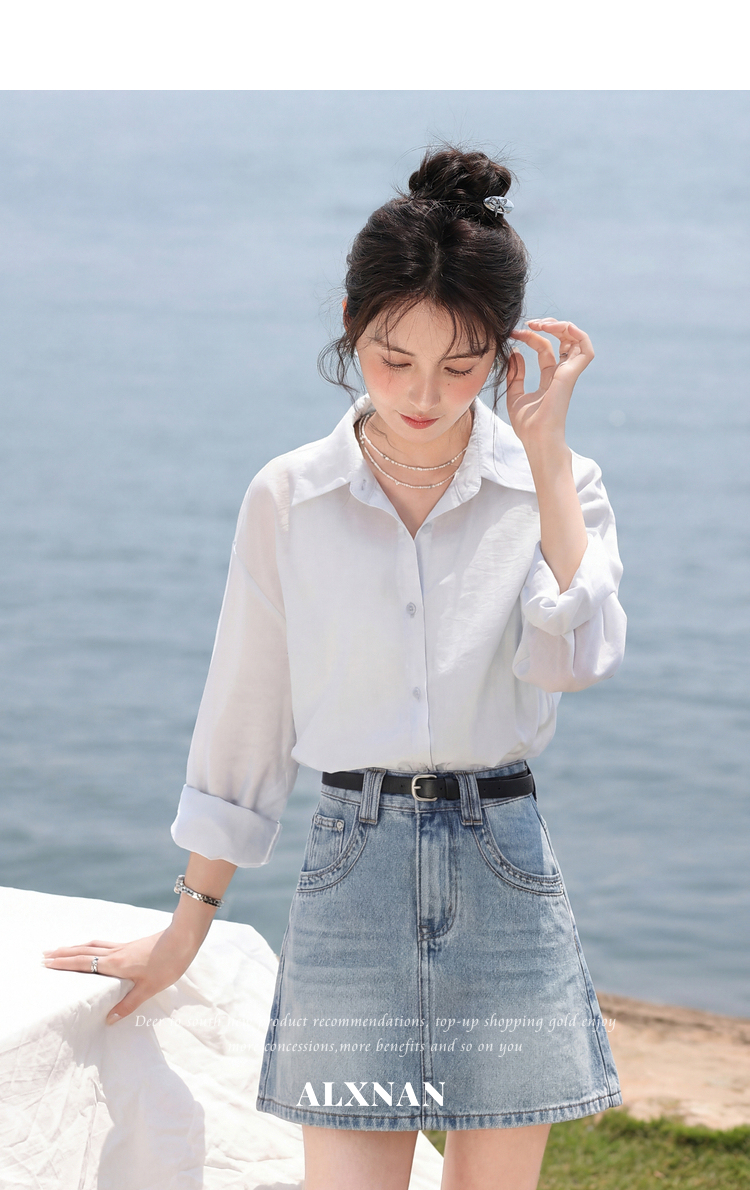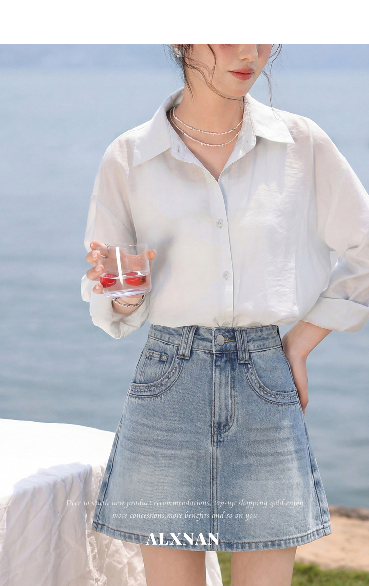 鹿向南「漫下歌语」小个子蓝色牛仔半身裙女夏季显瘦气质A字短裙