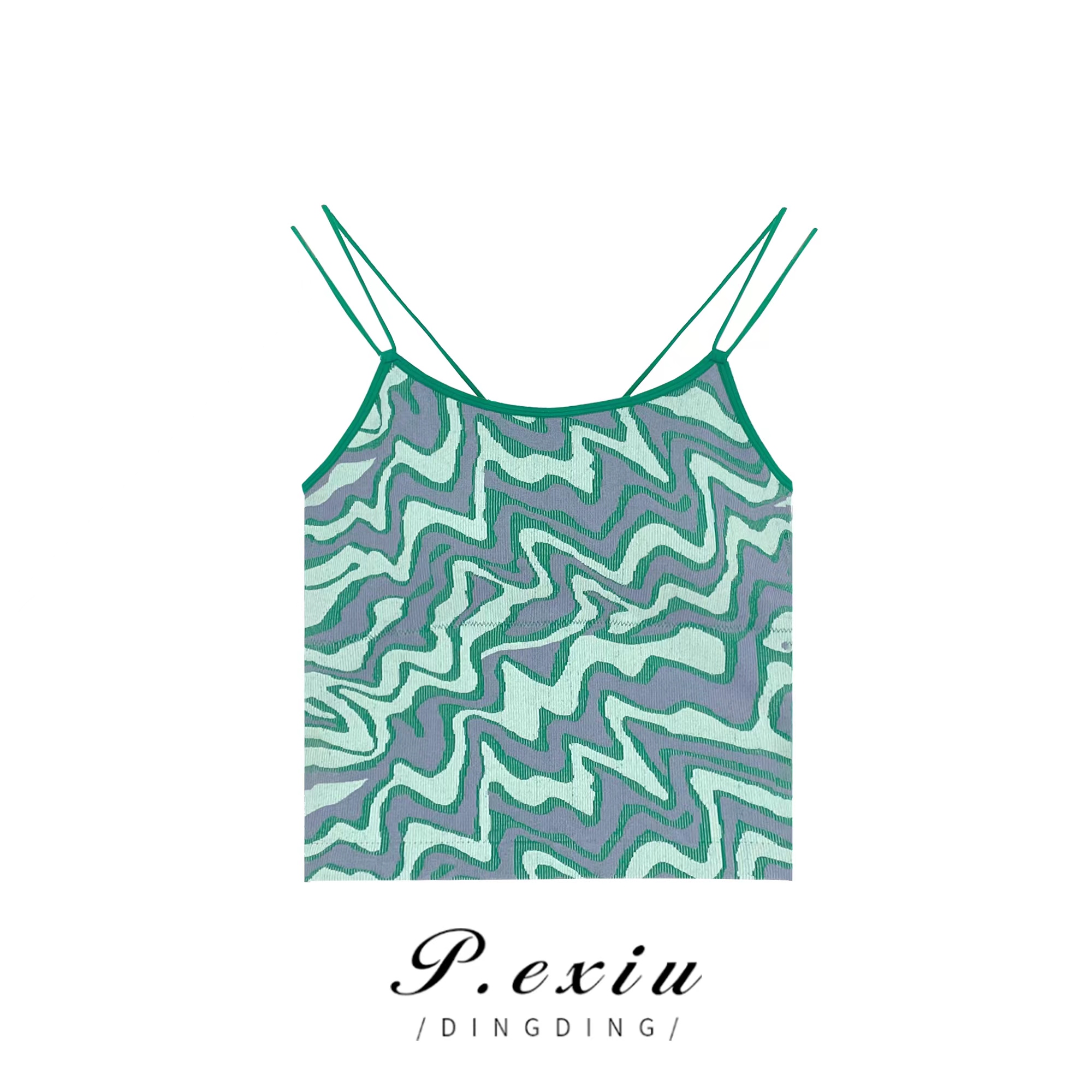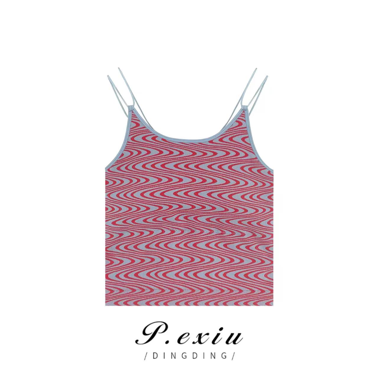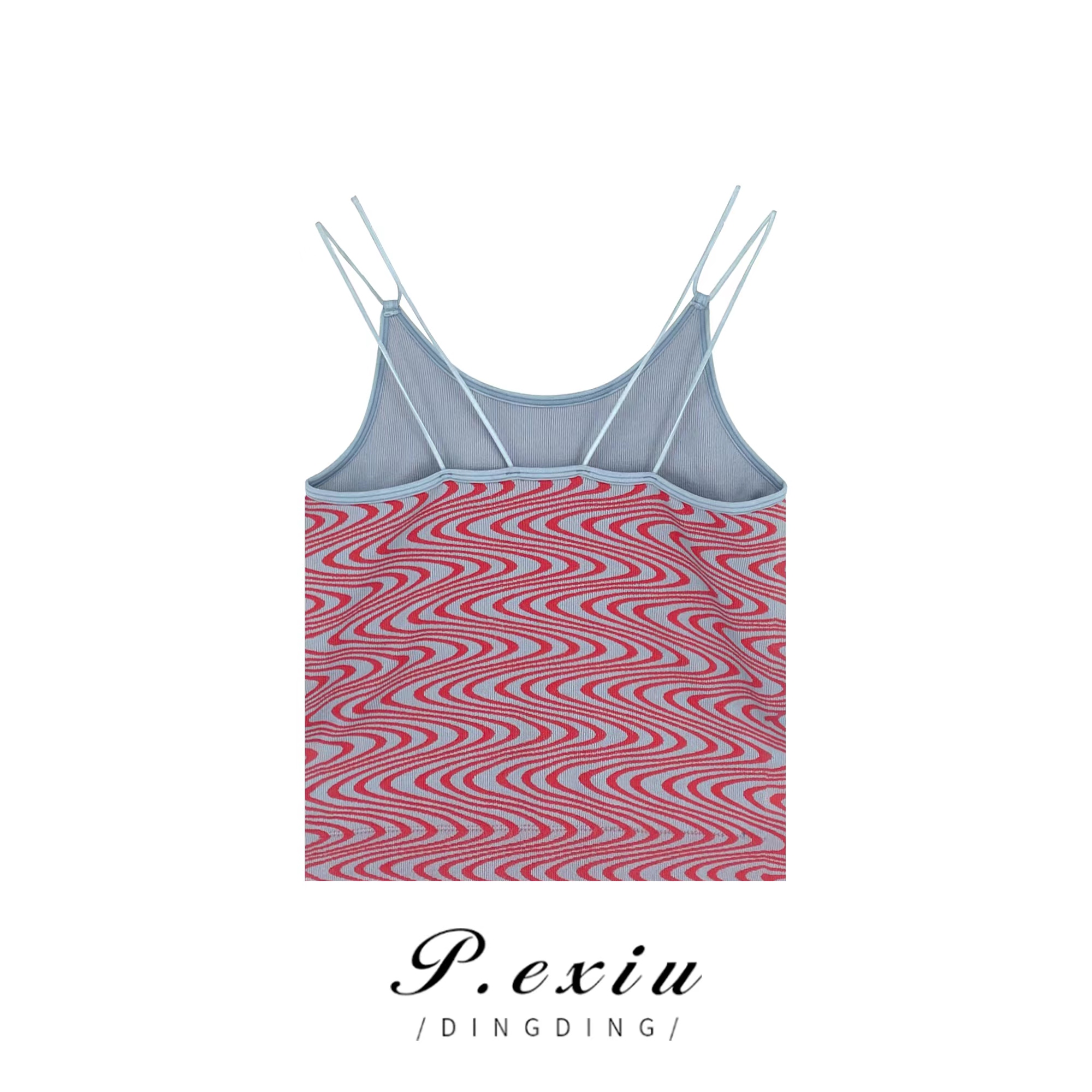 PanYiXiu/潘依绣水波纹撞色系带小众时尚吊带背心美背 ZQ001