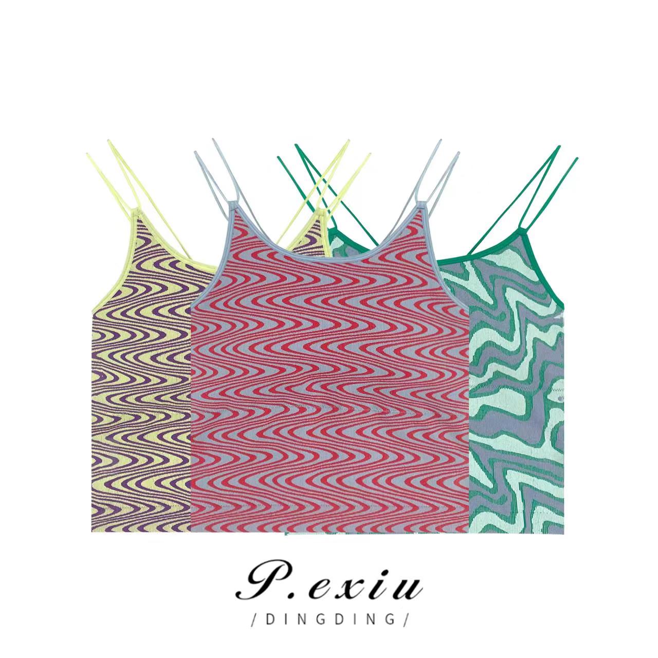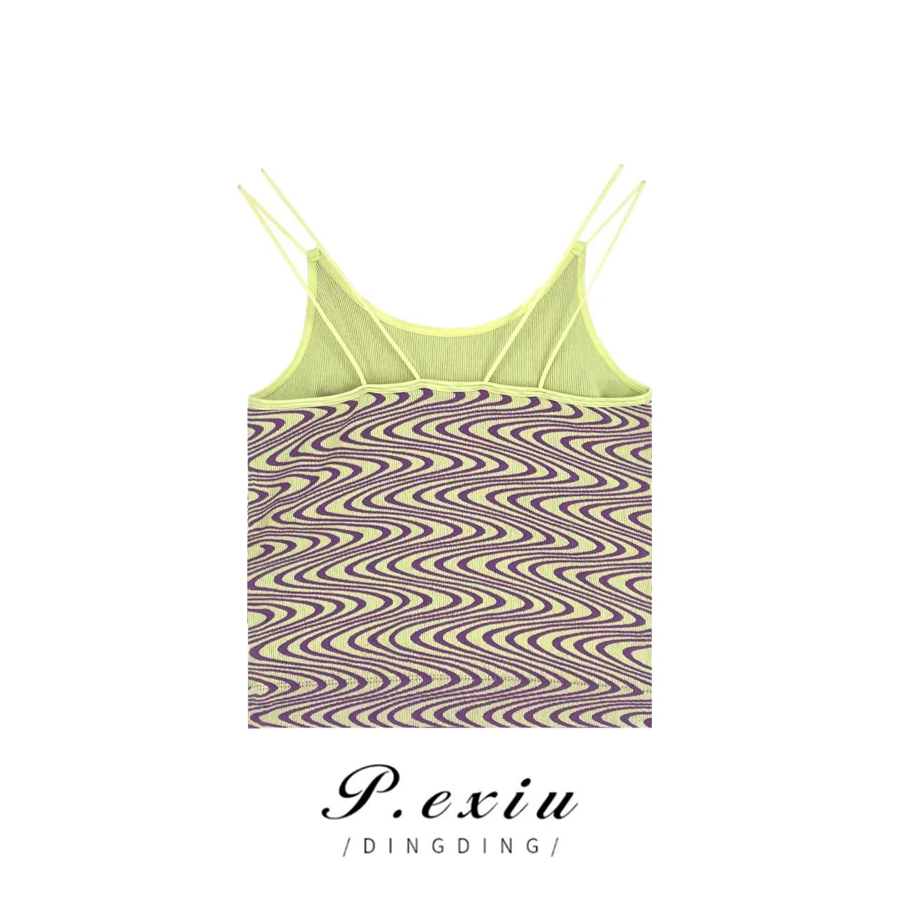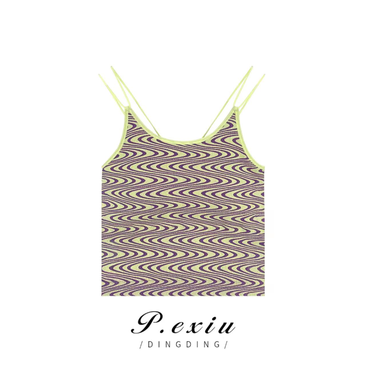 PanYiXiu/潘依绣水波纹撞色系带小众时尚吊带背心美背 ZQ001