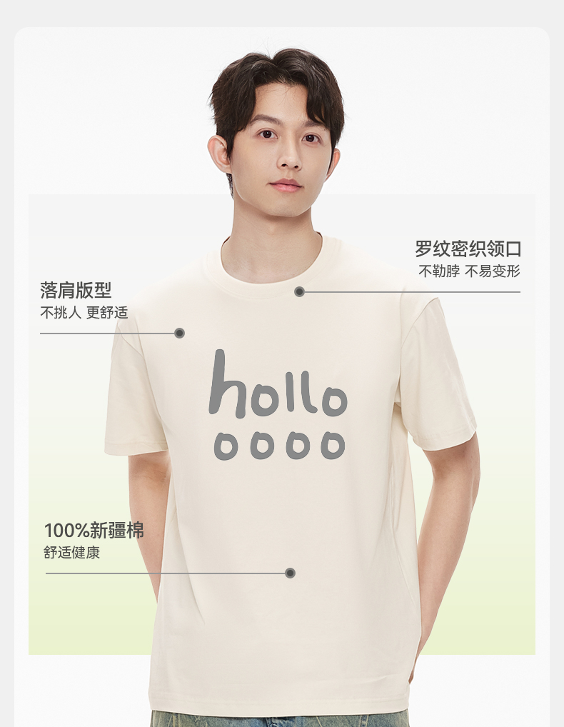 「棉的美学」纯棉230休闲简约字母印花T恤夏季款舒适透气个性上衣
