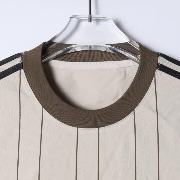 T2980夏季高级感新款韩版撞色条纹刺绣标圆领短袖T恤情侣复古套头上衣
