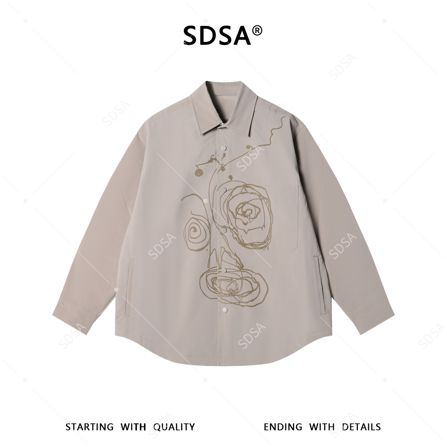 SDSA男装2026新款高贵轻奢简约抽象人脸印花按扣衬衫百搭高级感
