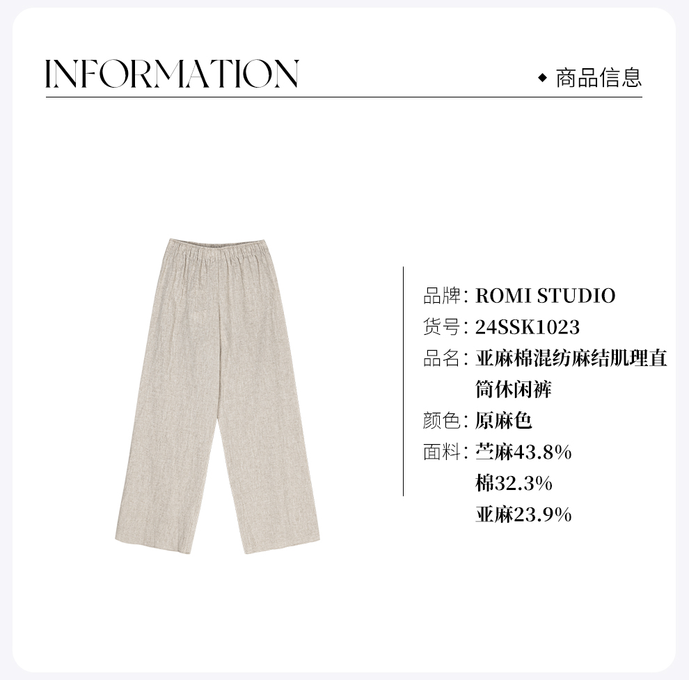 ROMI STUDIO “法式态度” 亚麻棉混纺麻结肌理直筒休闲裤24SSK1023