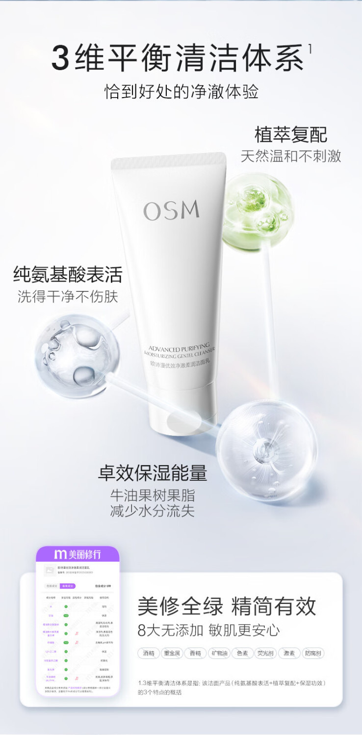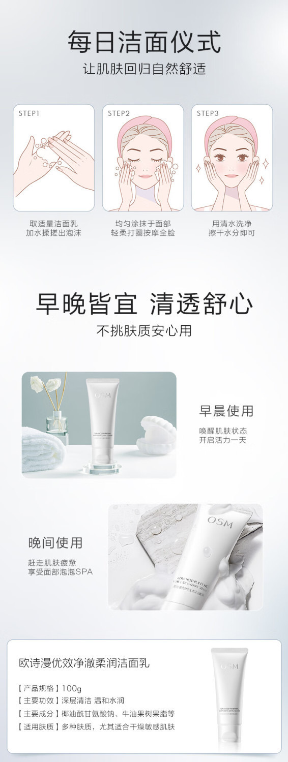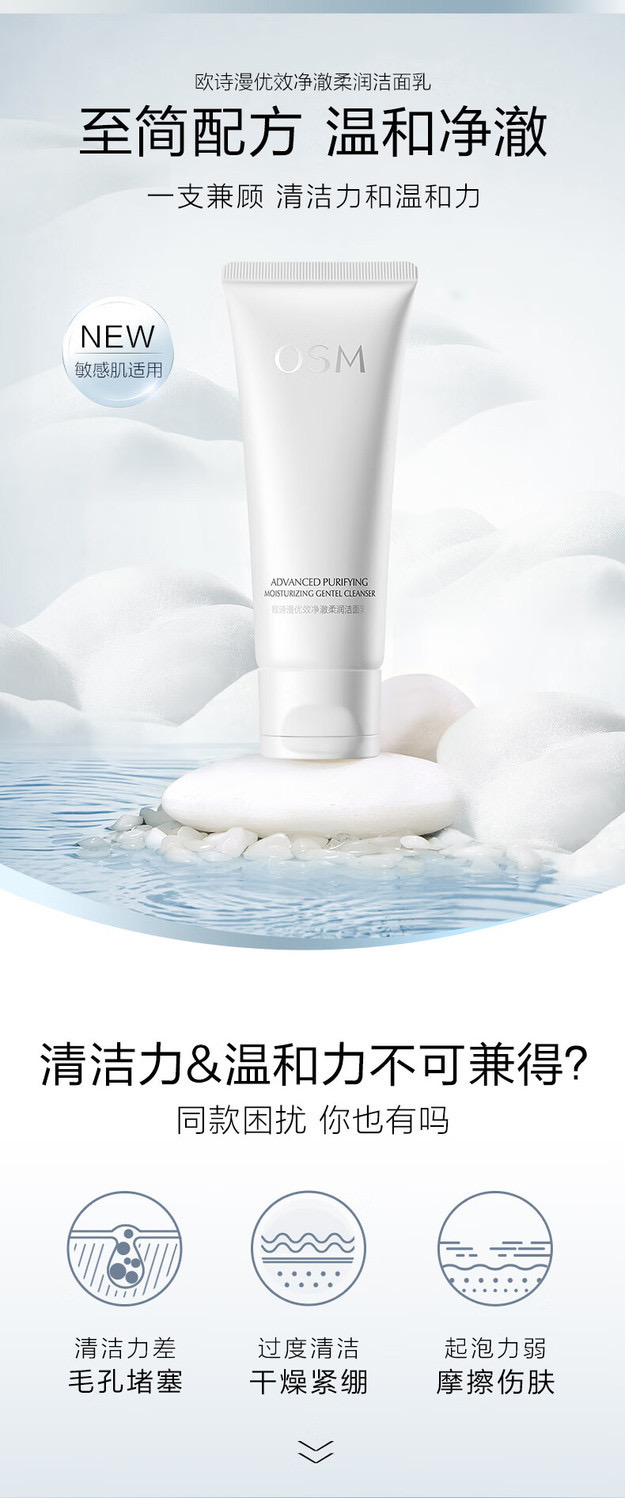 【买一赠一】欧诗漫优效净澈柔润洁面乳100g 赠:同款洁面1支