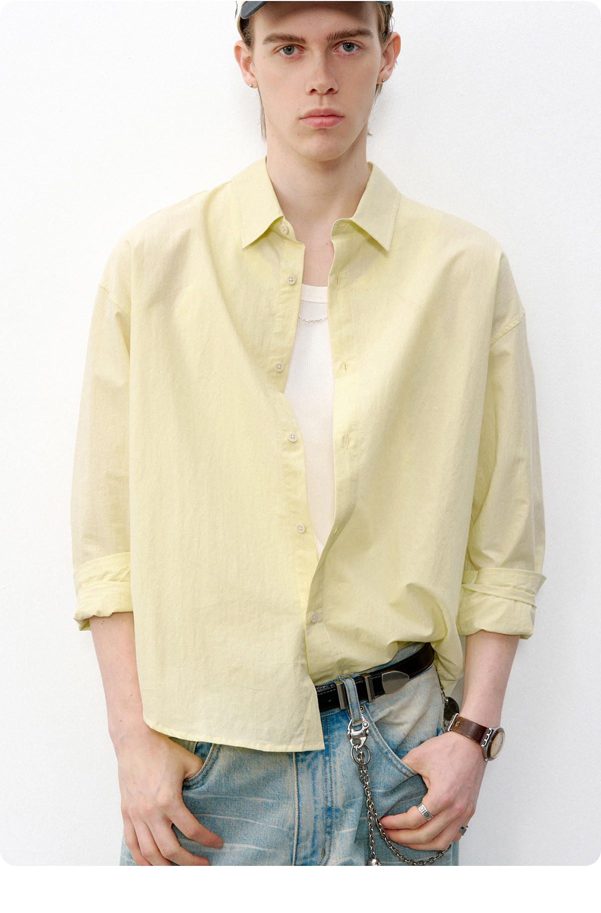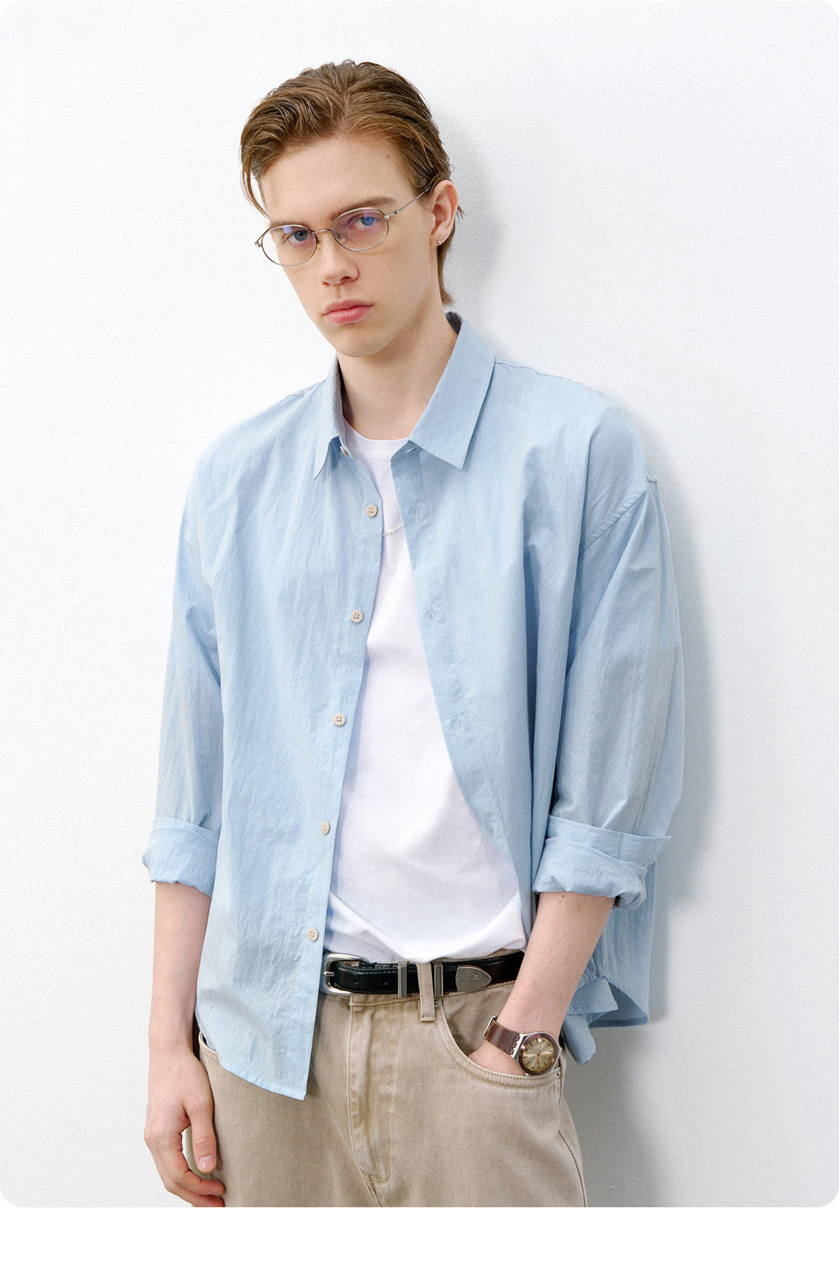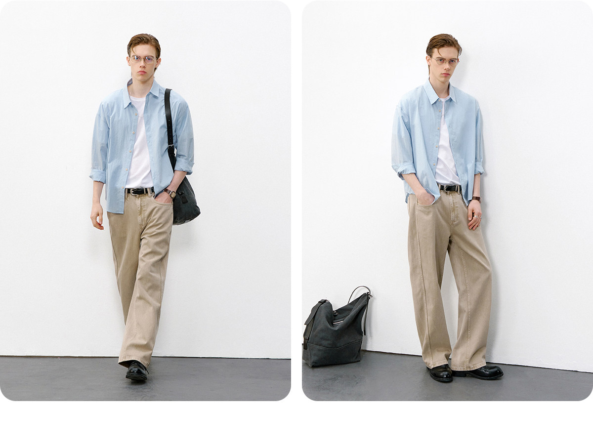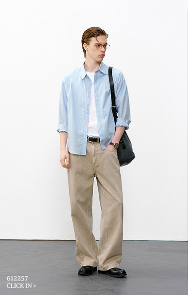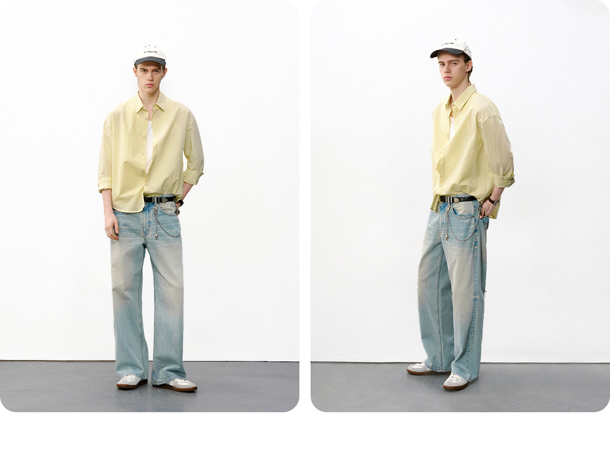 714street微皱肌理感长袖衬衫男2026春季潮牌宽松多巴胺情侣衬衣