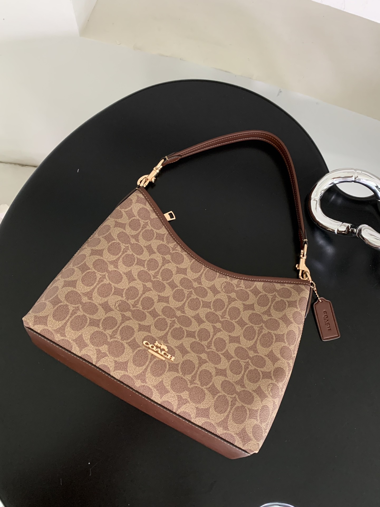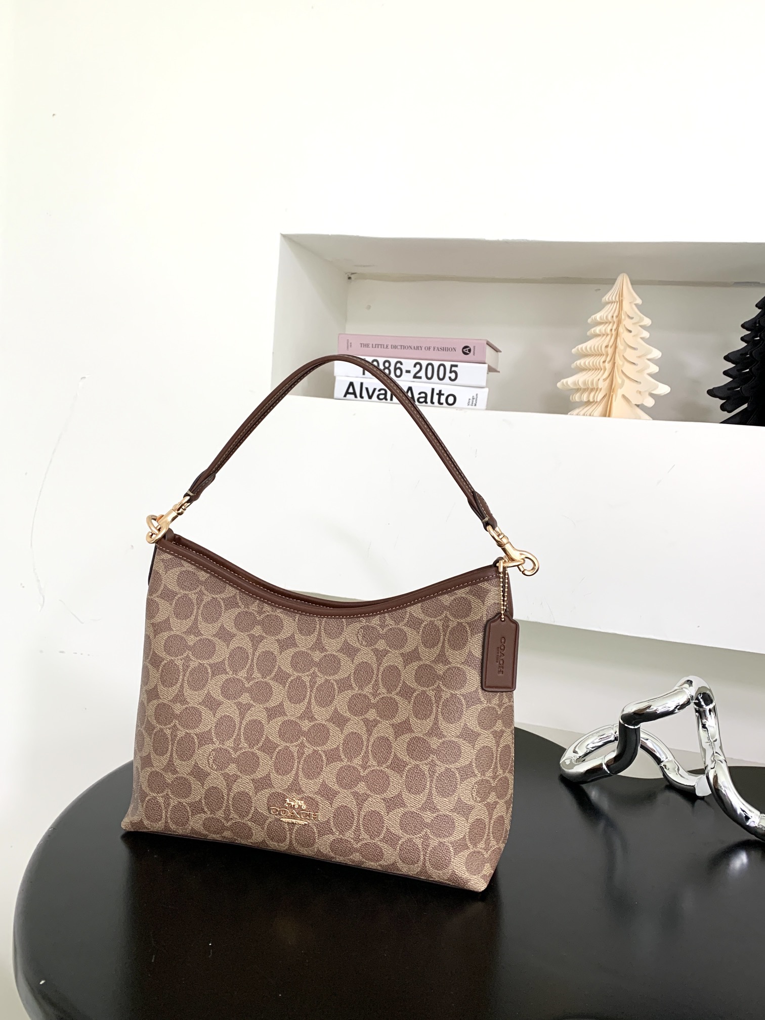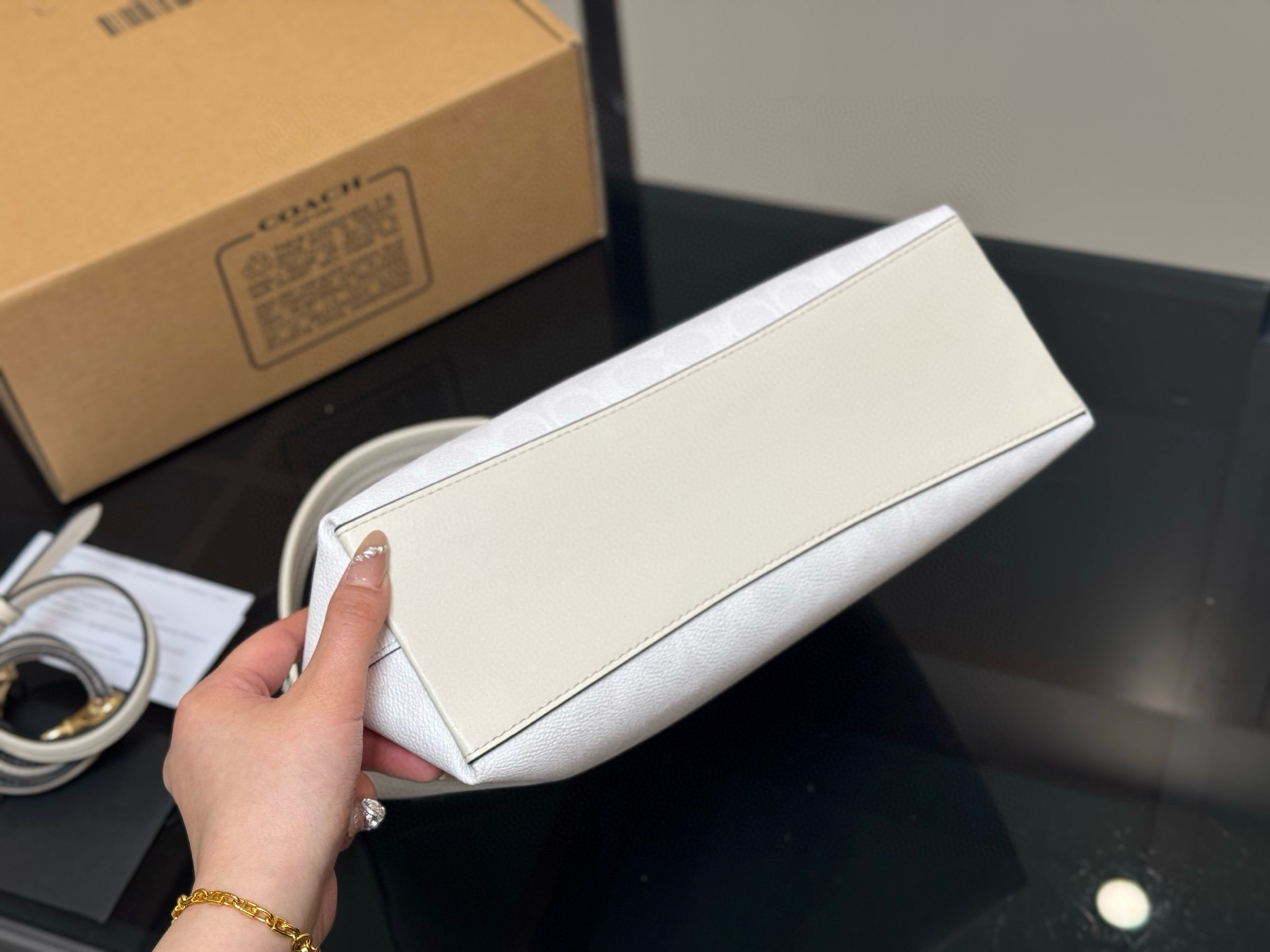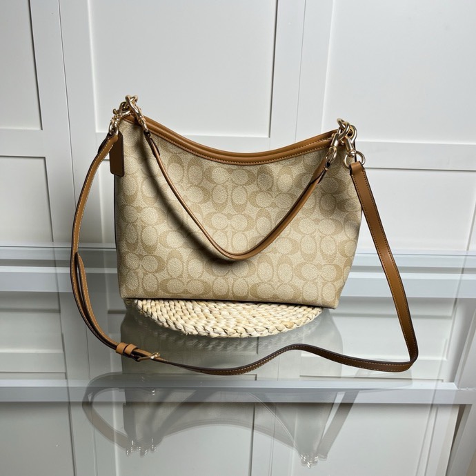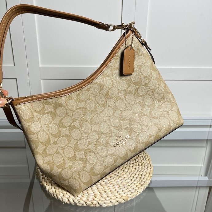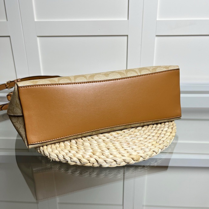 COACH蔻驰 Laurel 31 通勤大容量可拆卸肩带标志性涂层帆布和光滑皮革 流浪包腋下包单肩斜挎手提包(CB)