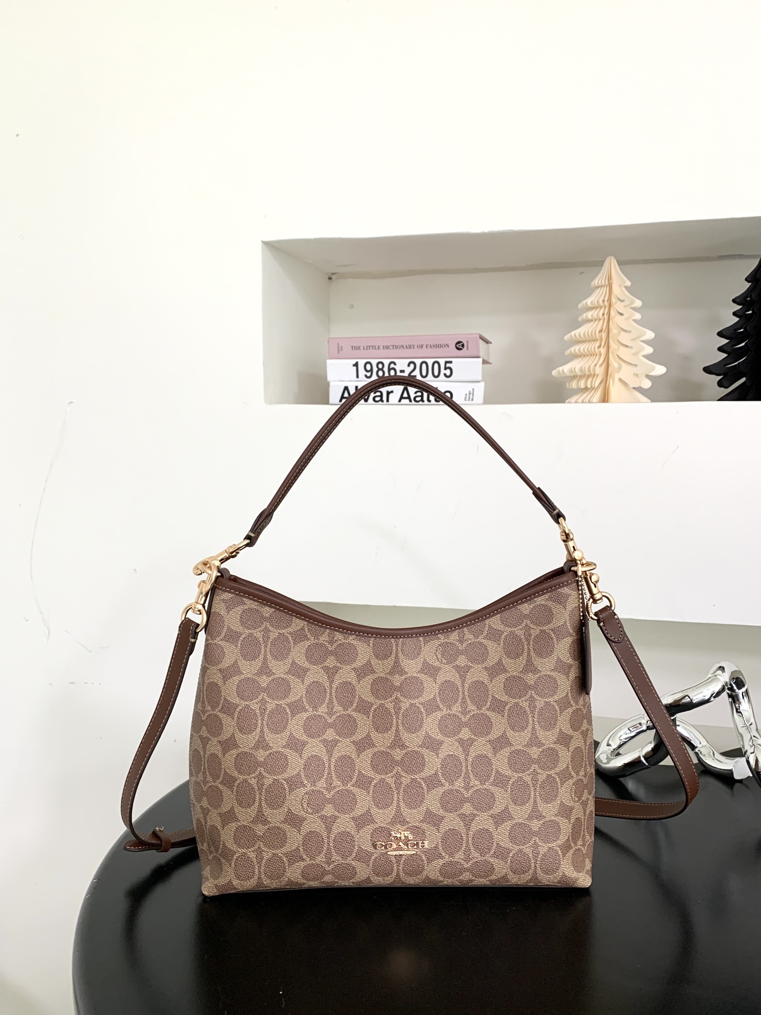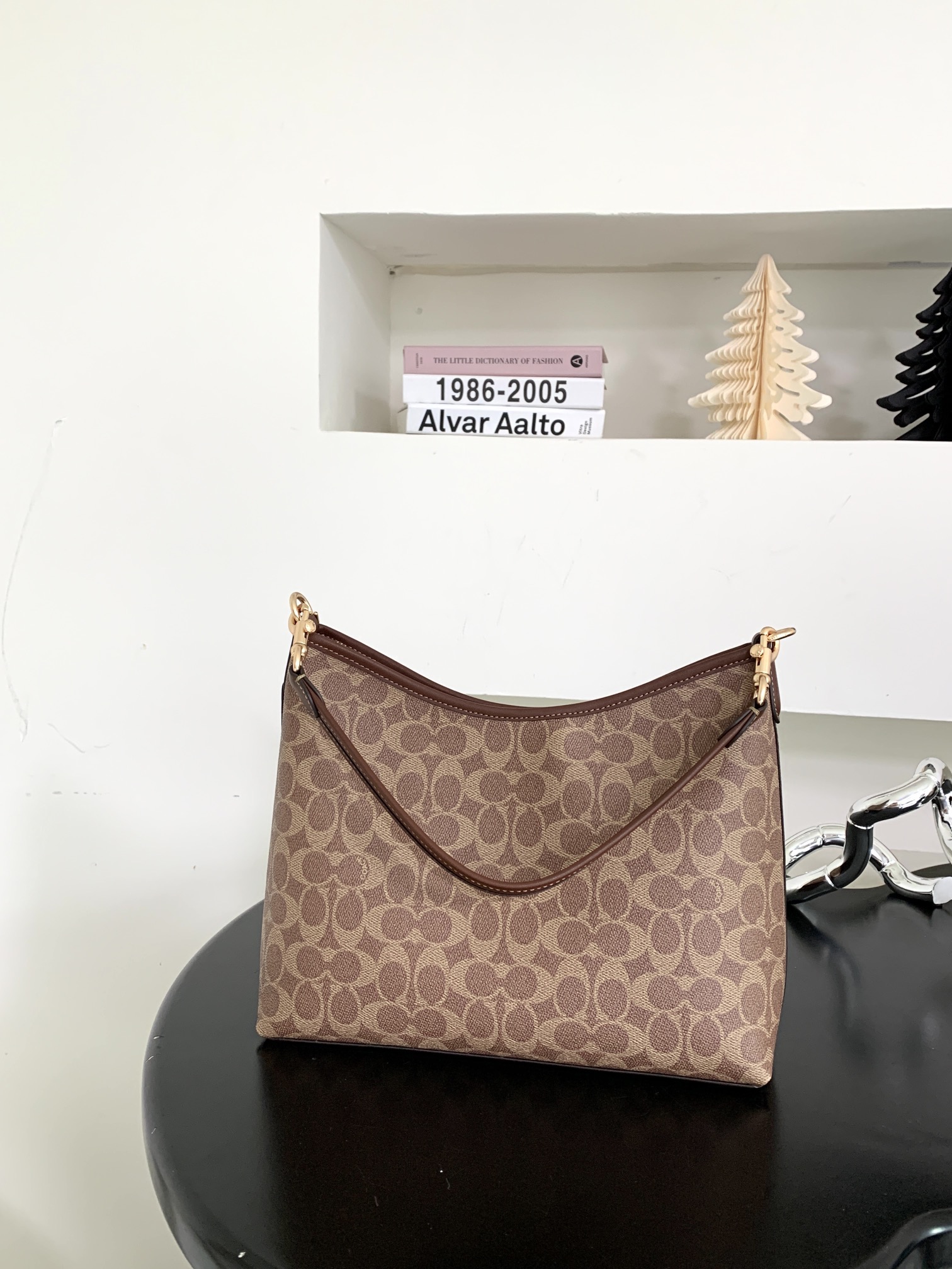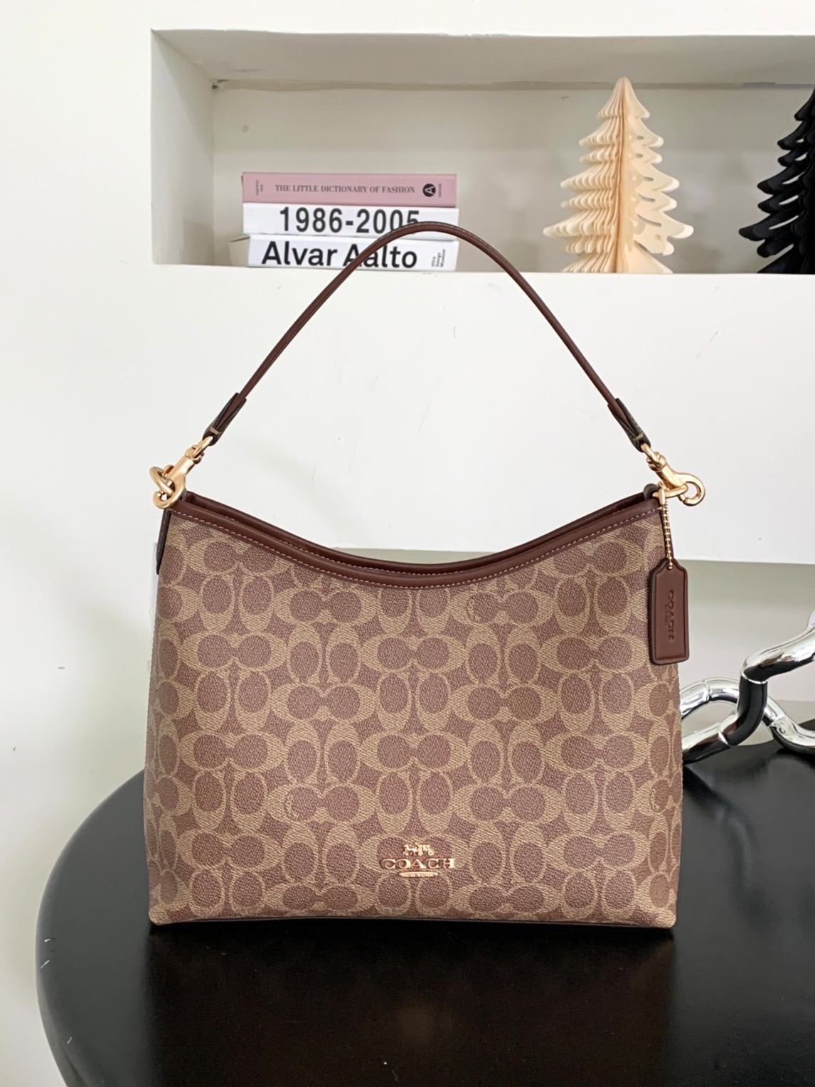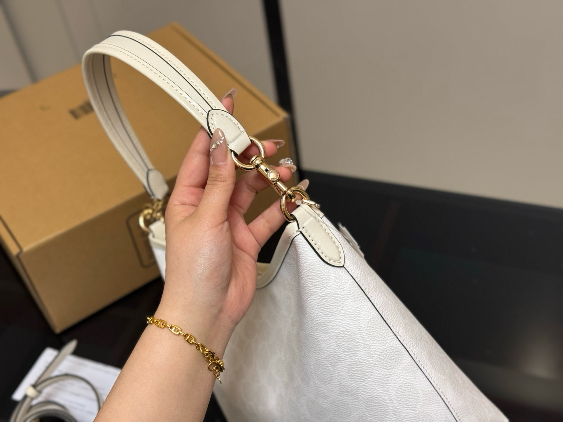COACH蔻驰 Laurel 31 通勤大容量可拆卸肩带标志性涂层帆布和光滑皮革 流浪包腋下包单肩斜挎手提包(CB)
