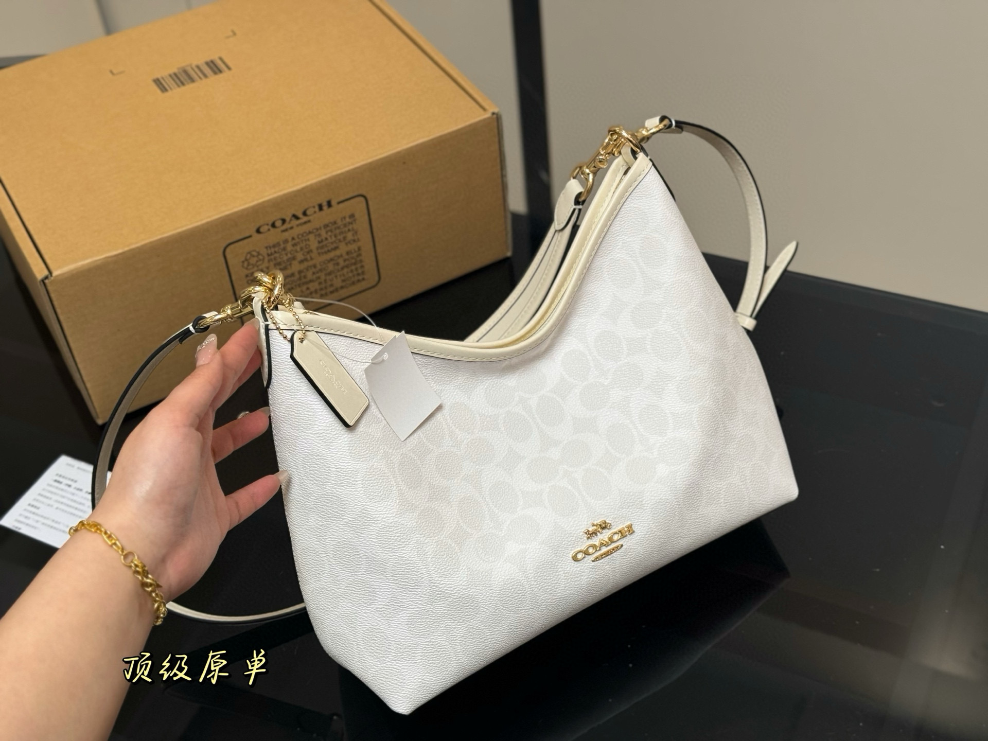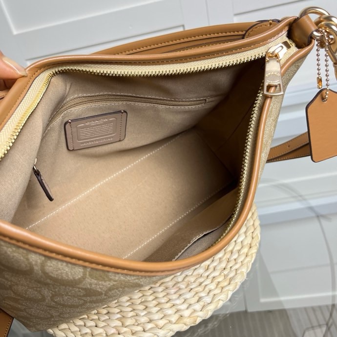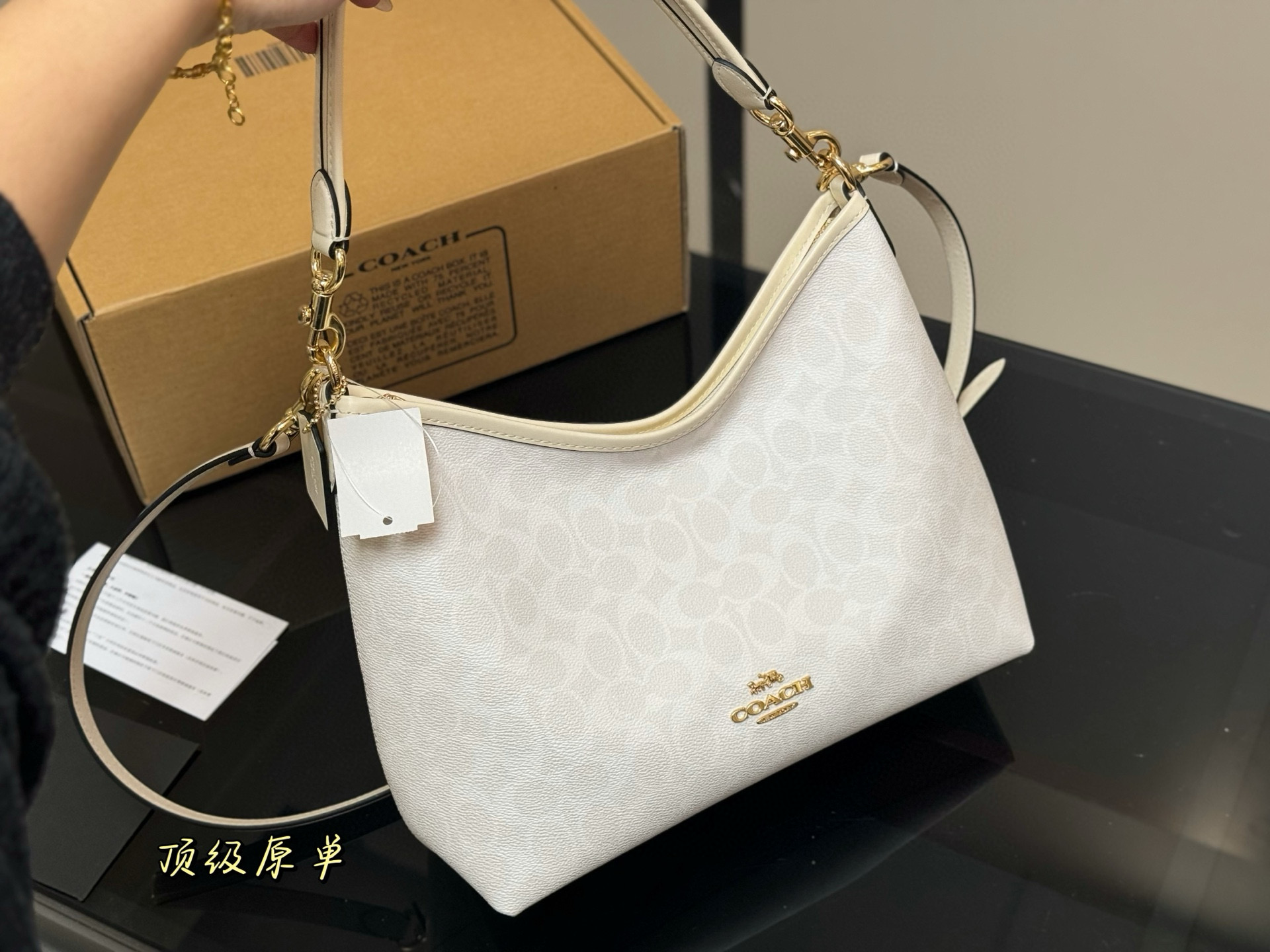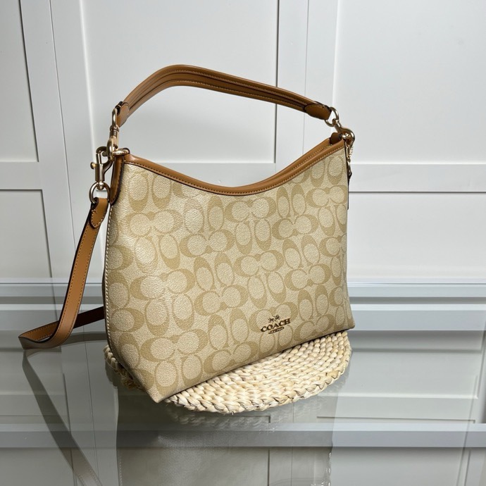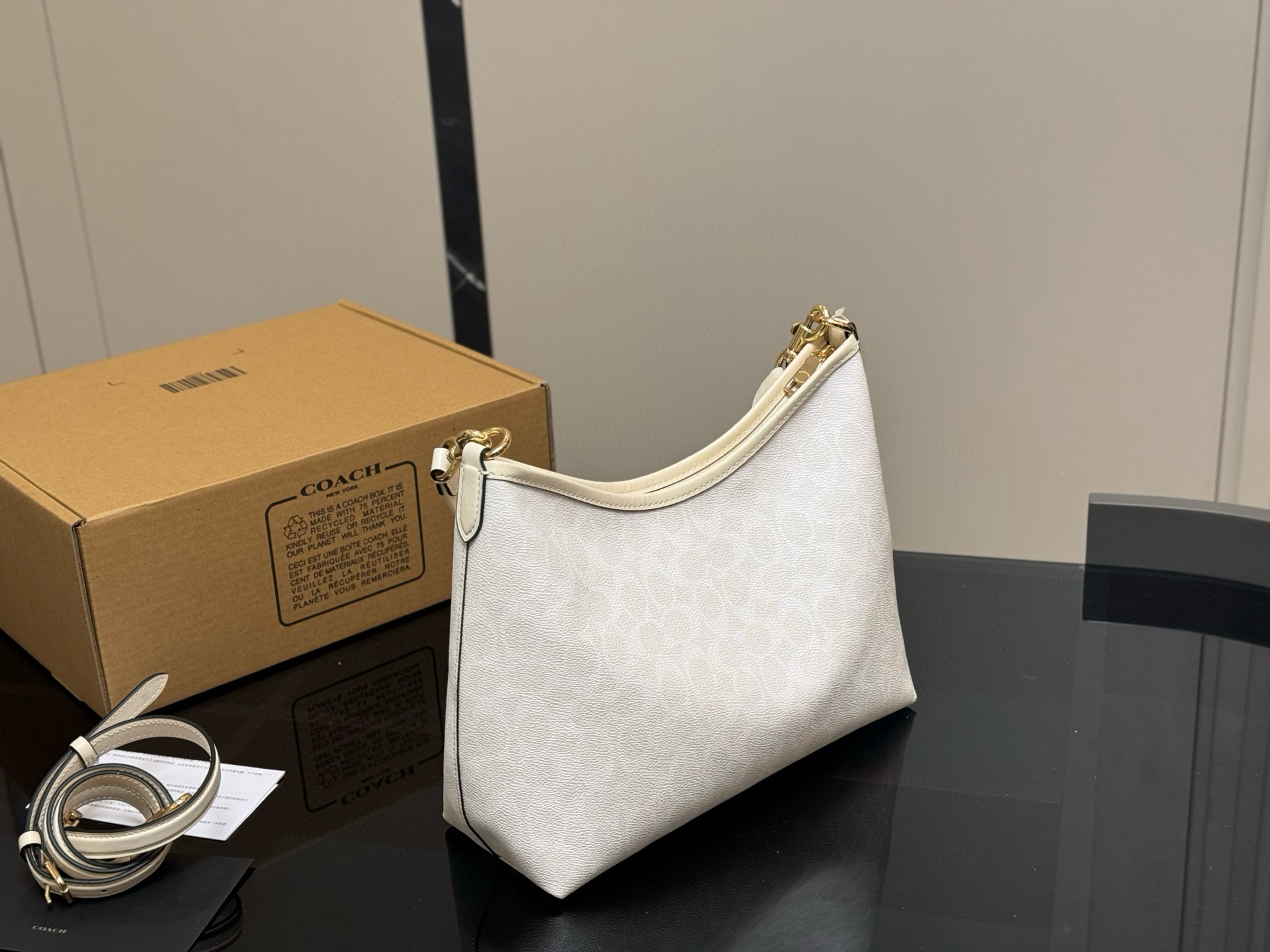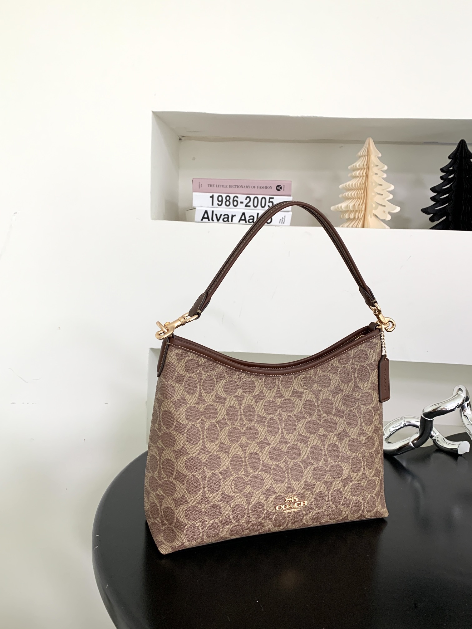 COACH蔻驰 Laurel 31 通勤大容量可拆卸肩带标志性涂层帆布和光滑皮革 流浪包腋下包单肩斜挎手提包(CB)
