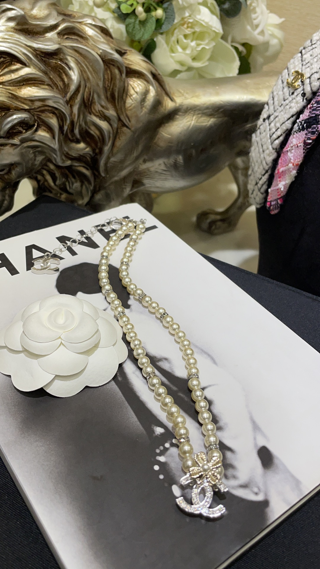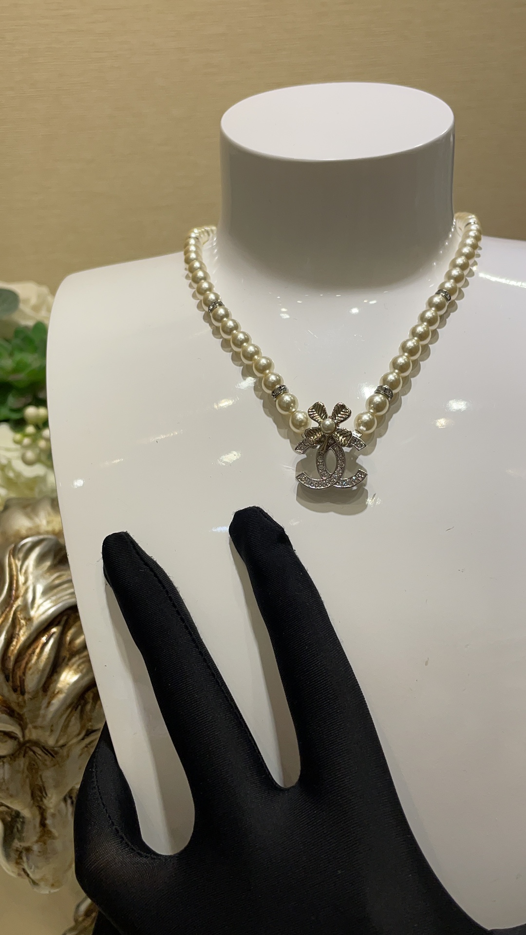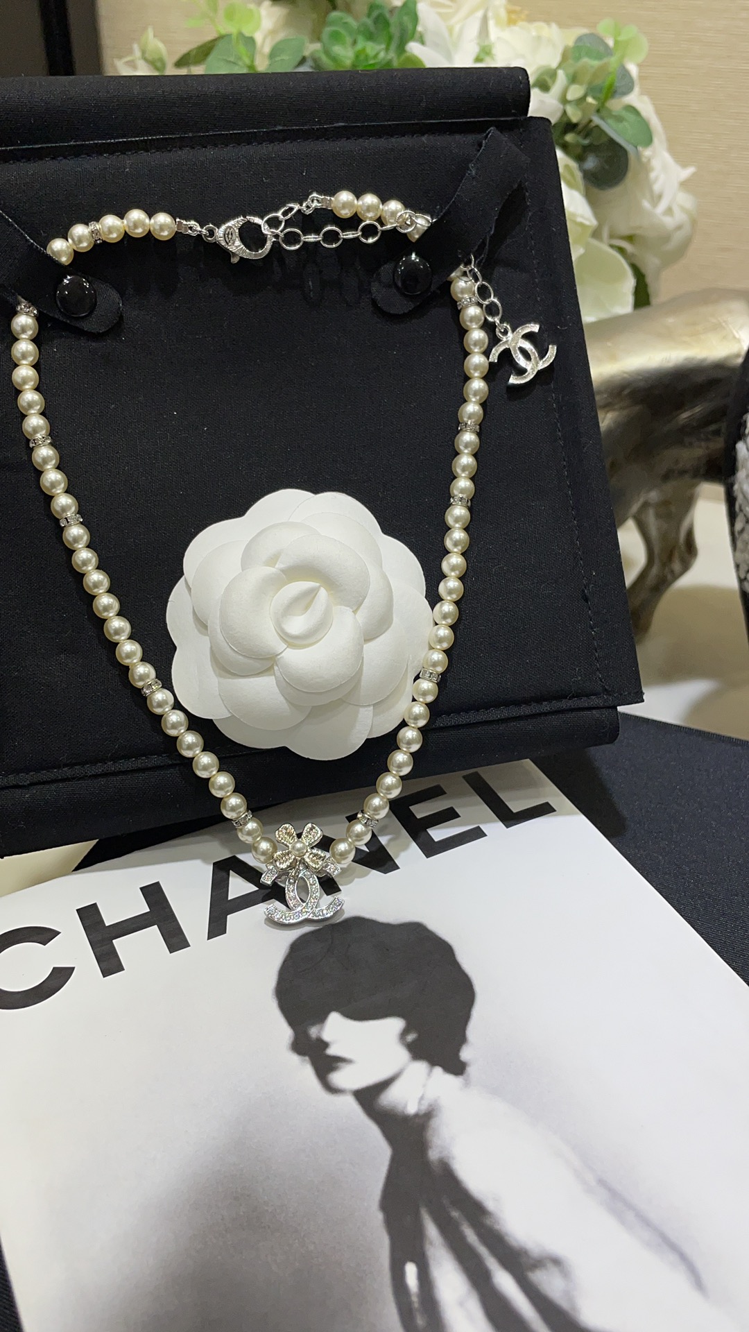 香奶奶 24K新款珍珠水钻四叶草满钻双C拼色珍珠项链