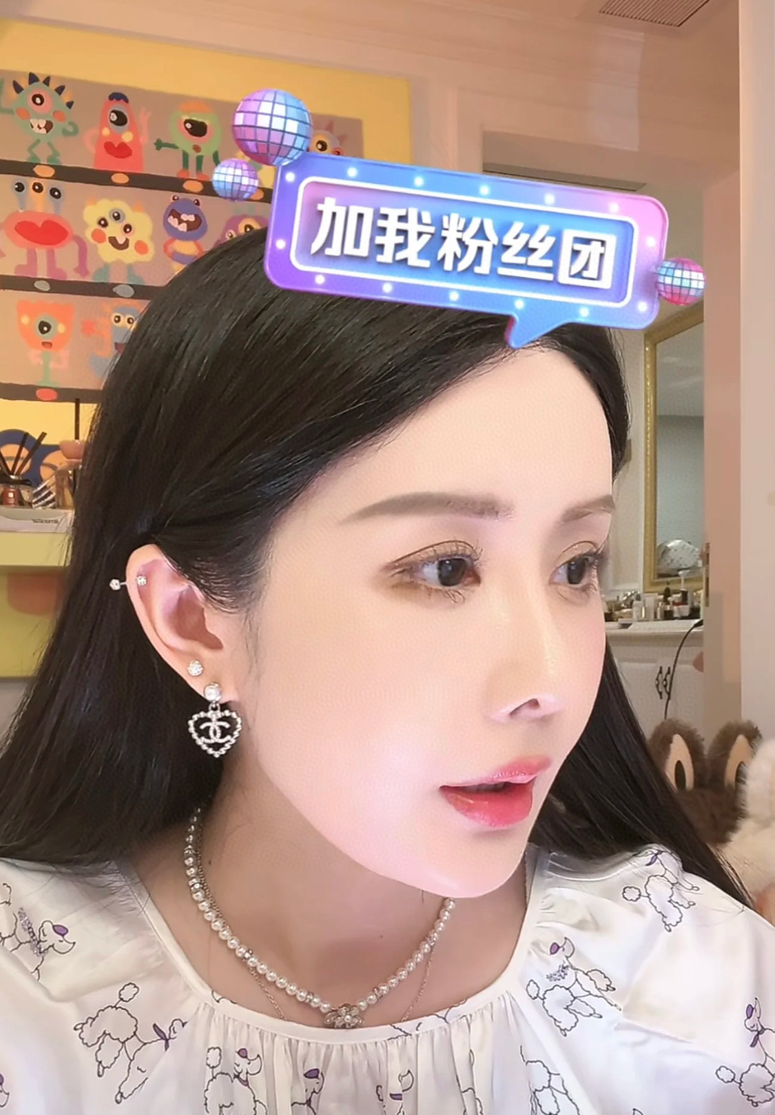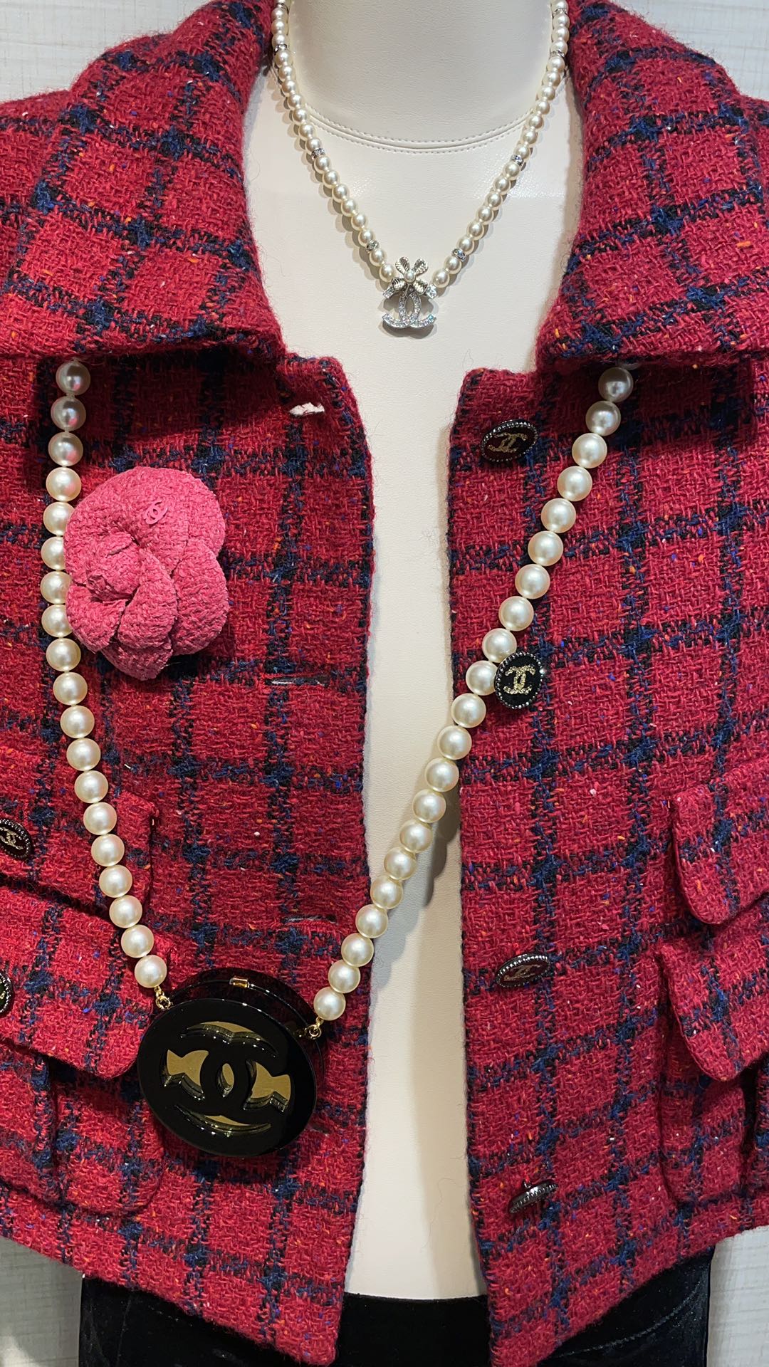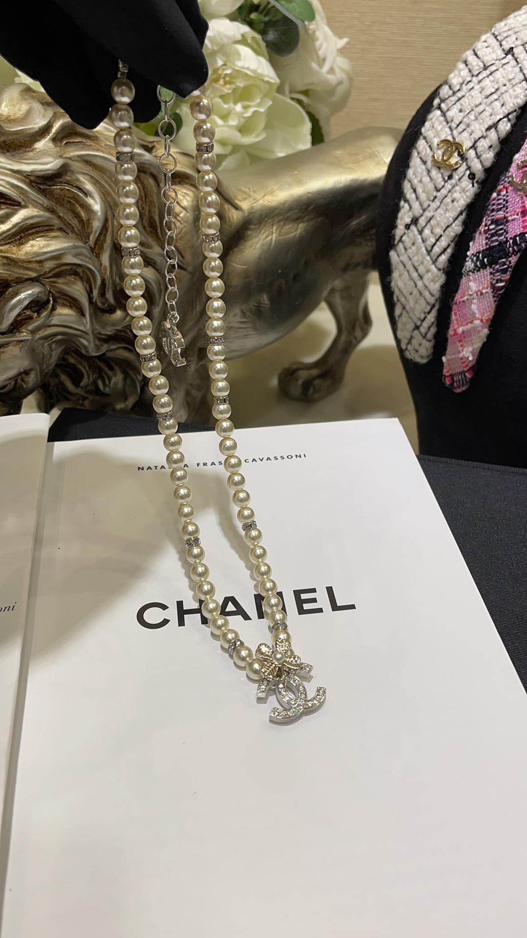 香奶奶 24K新款珍珠水钻四叶草满钻双C拼色珍珠项链