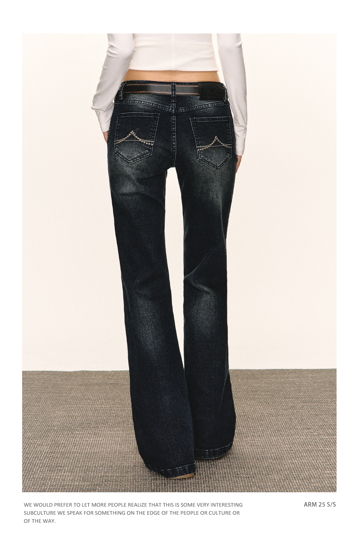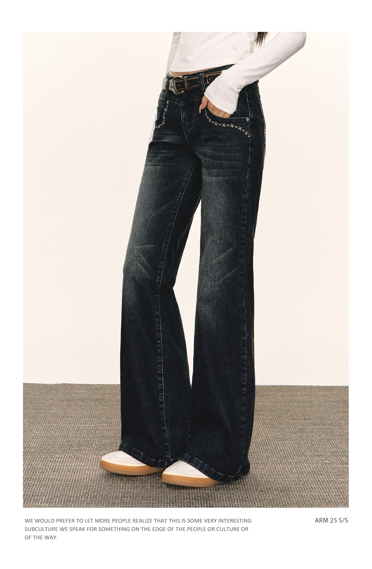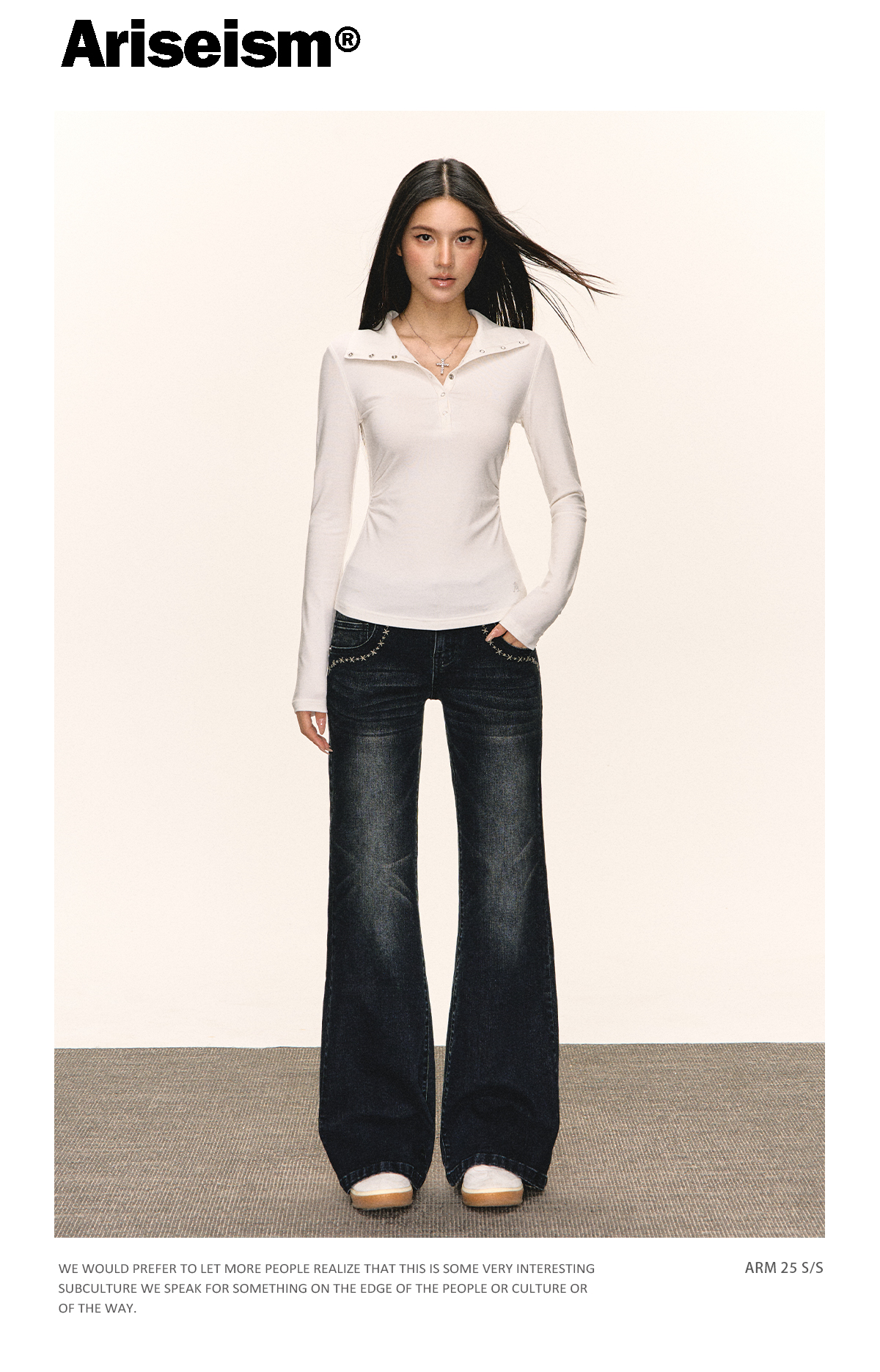 Ariseism 美式复古牛仔裤女秋季新款修身阔腿长裤子