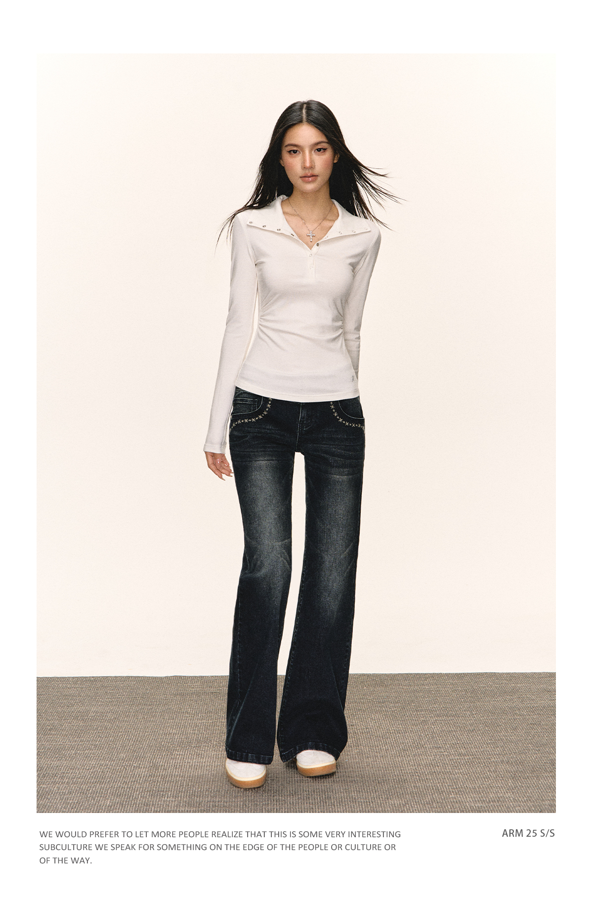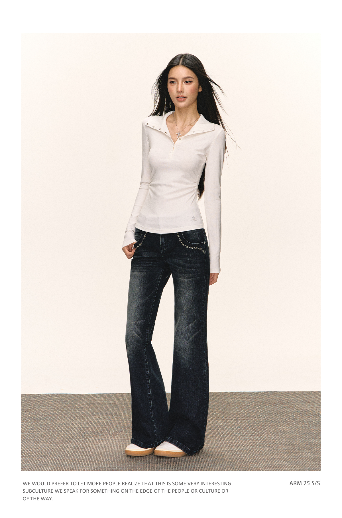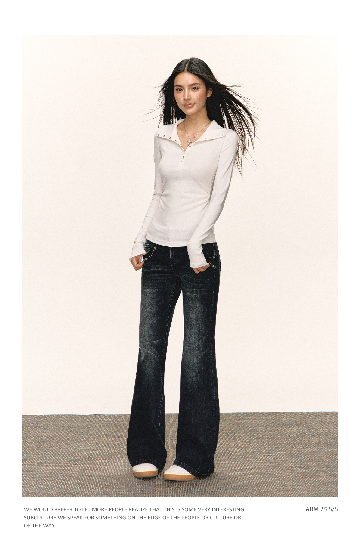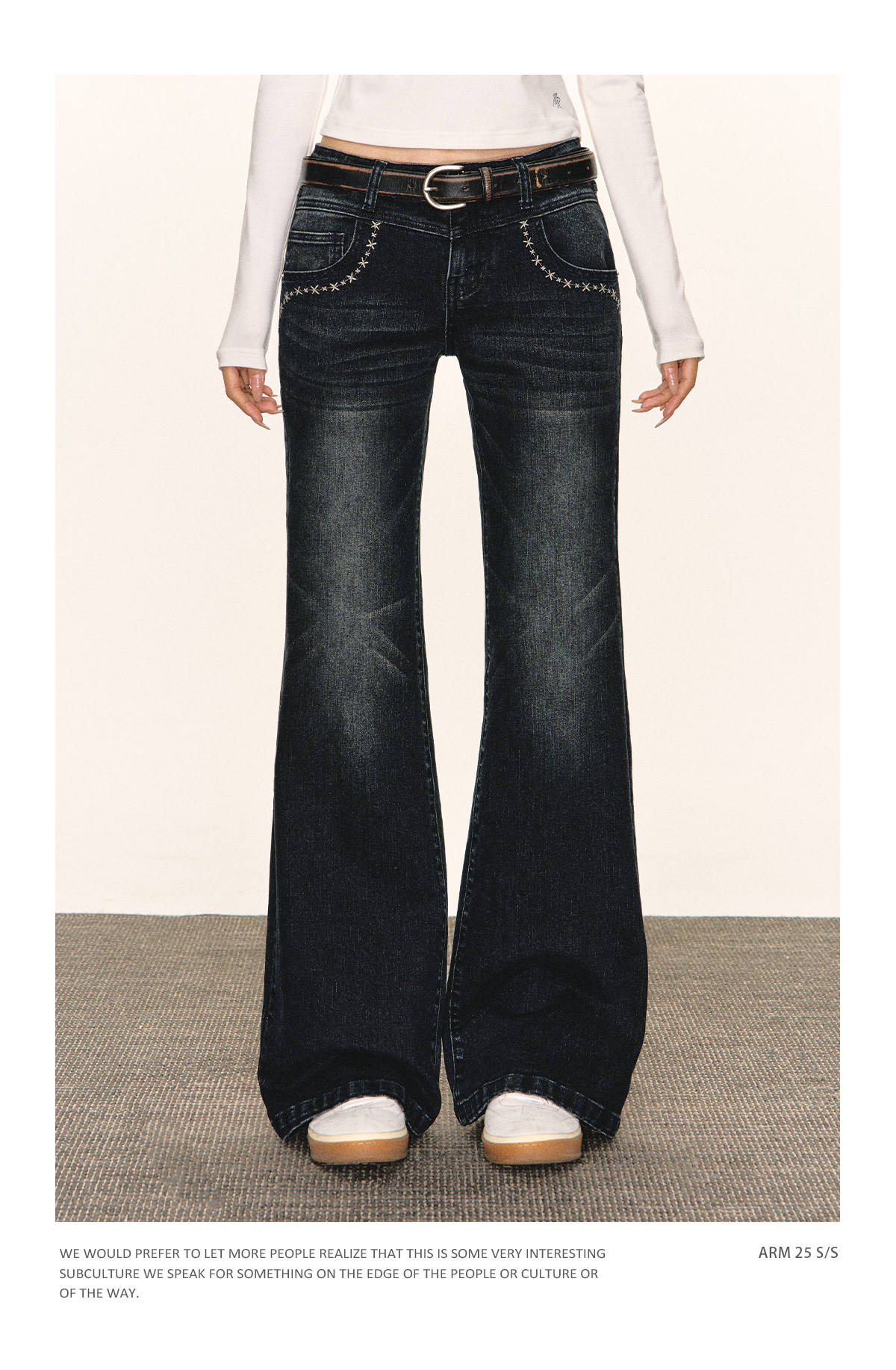 Ariseism 美式复古牛仔裤女秋季新款修身阔腿长裤子