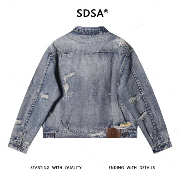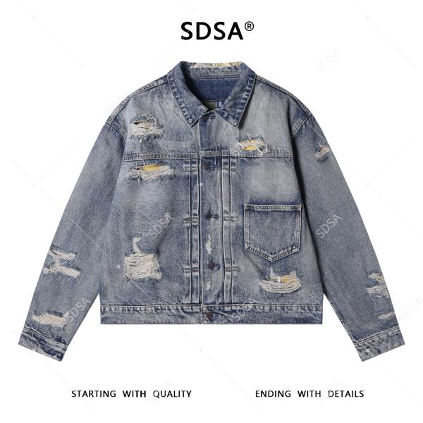 25209SDSA男士秋冬新款痞帅男装美式做旧磨破翻领纽扣夹克百搭宽松外套