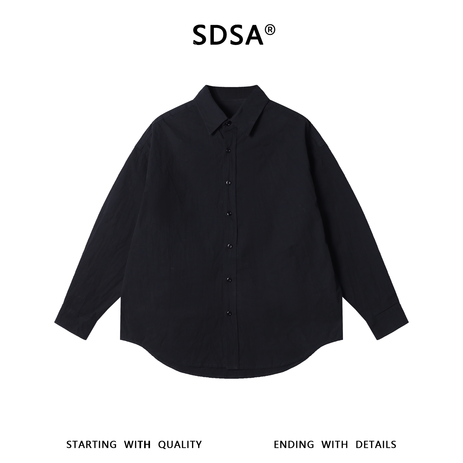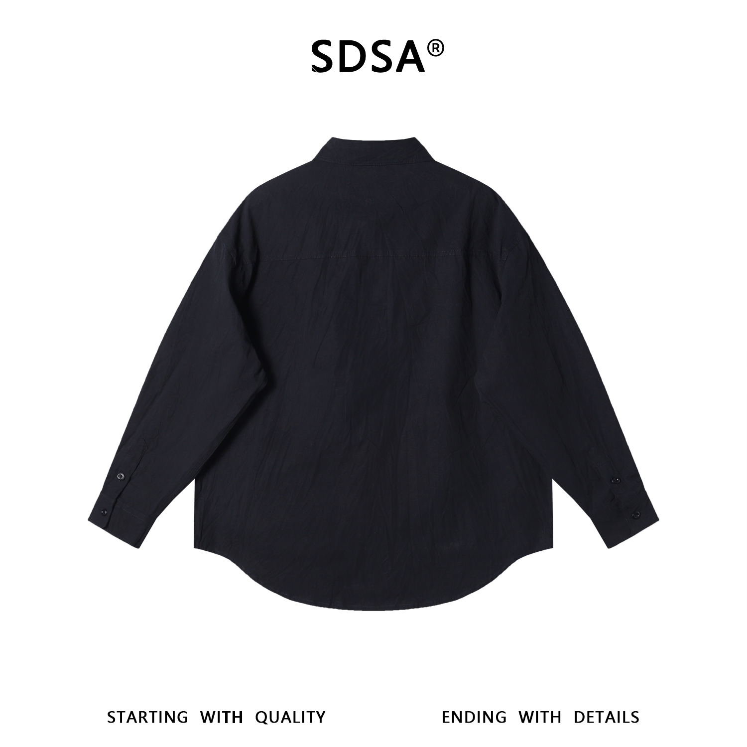 SDSA男装2026新款高贵轻奢韩版不规则压皱纯袖衬衫百搭简约衬衣