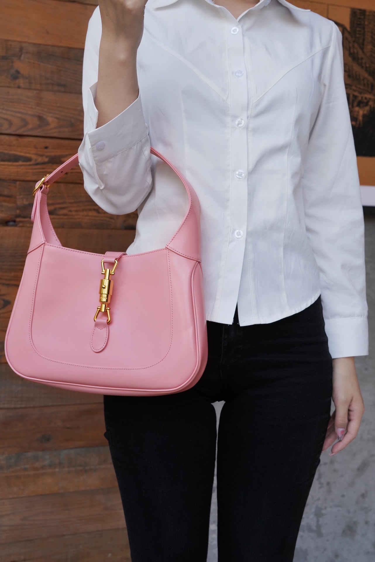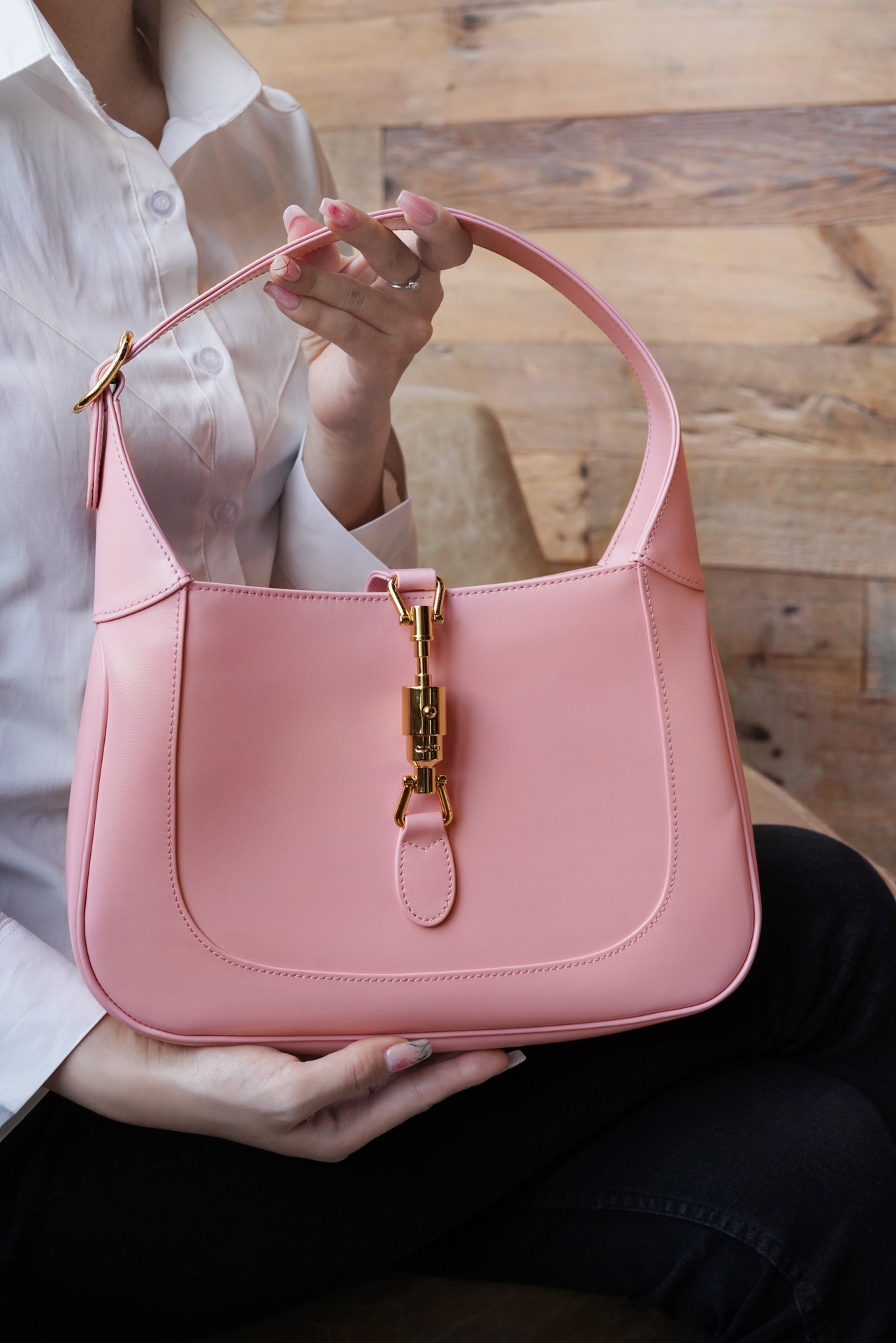 在本季,这款具有辨识度的手袋重回时尚前沿,采用淡粉色色皮革制作,配有一根额外的可拆卸肩带。