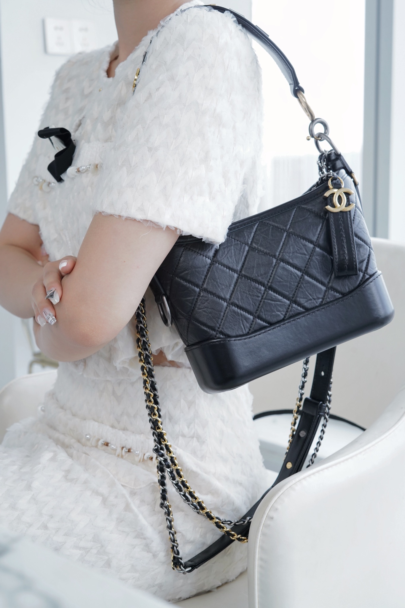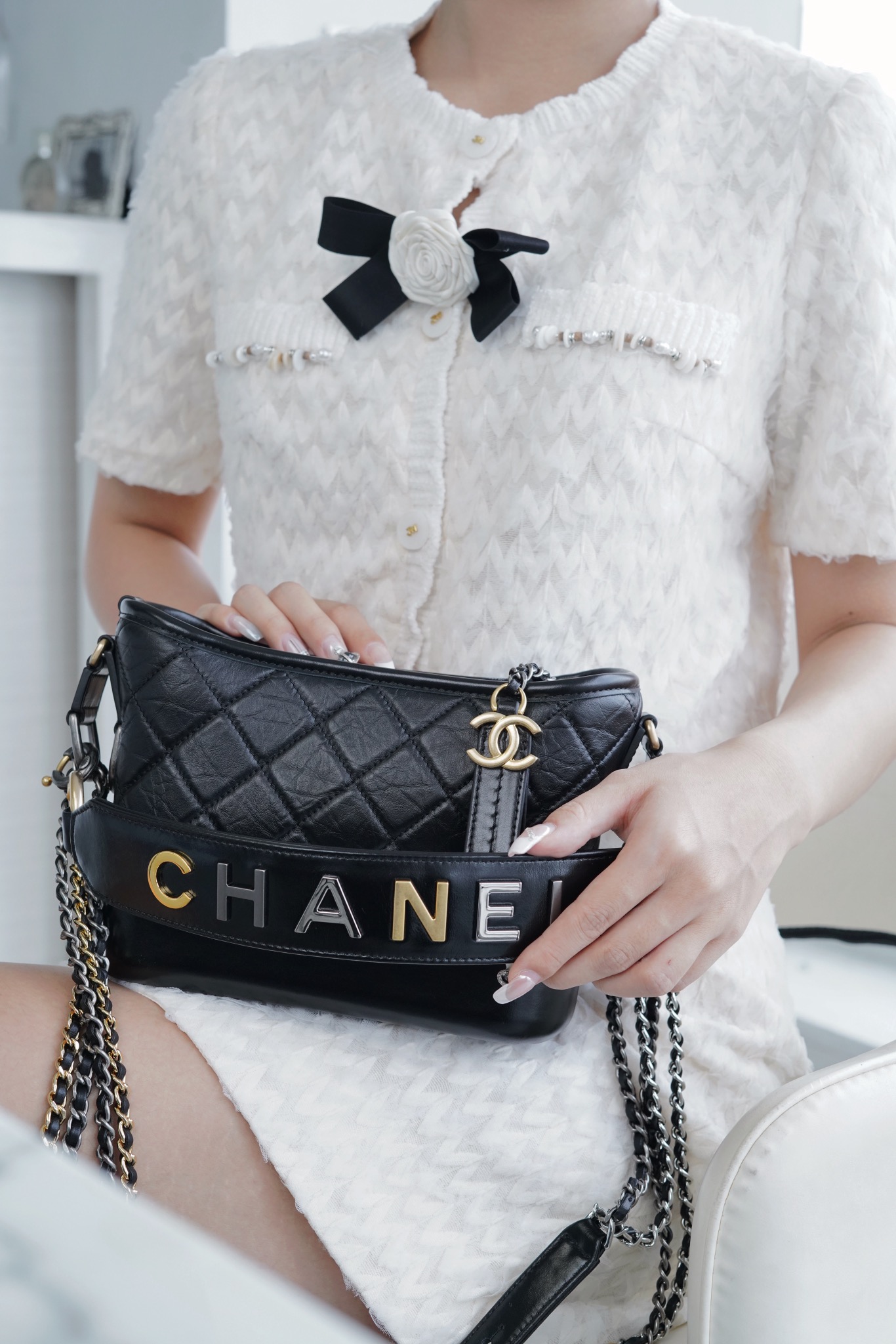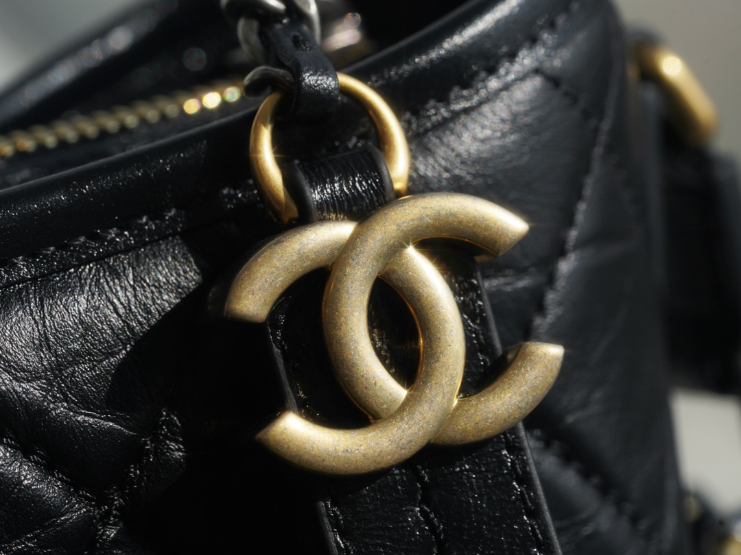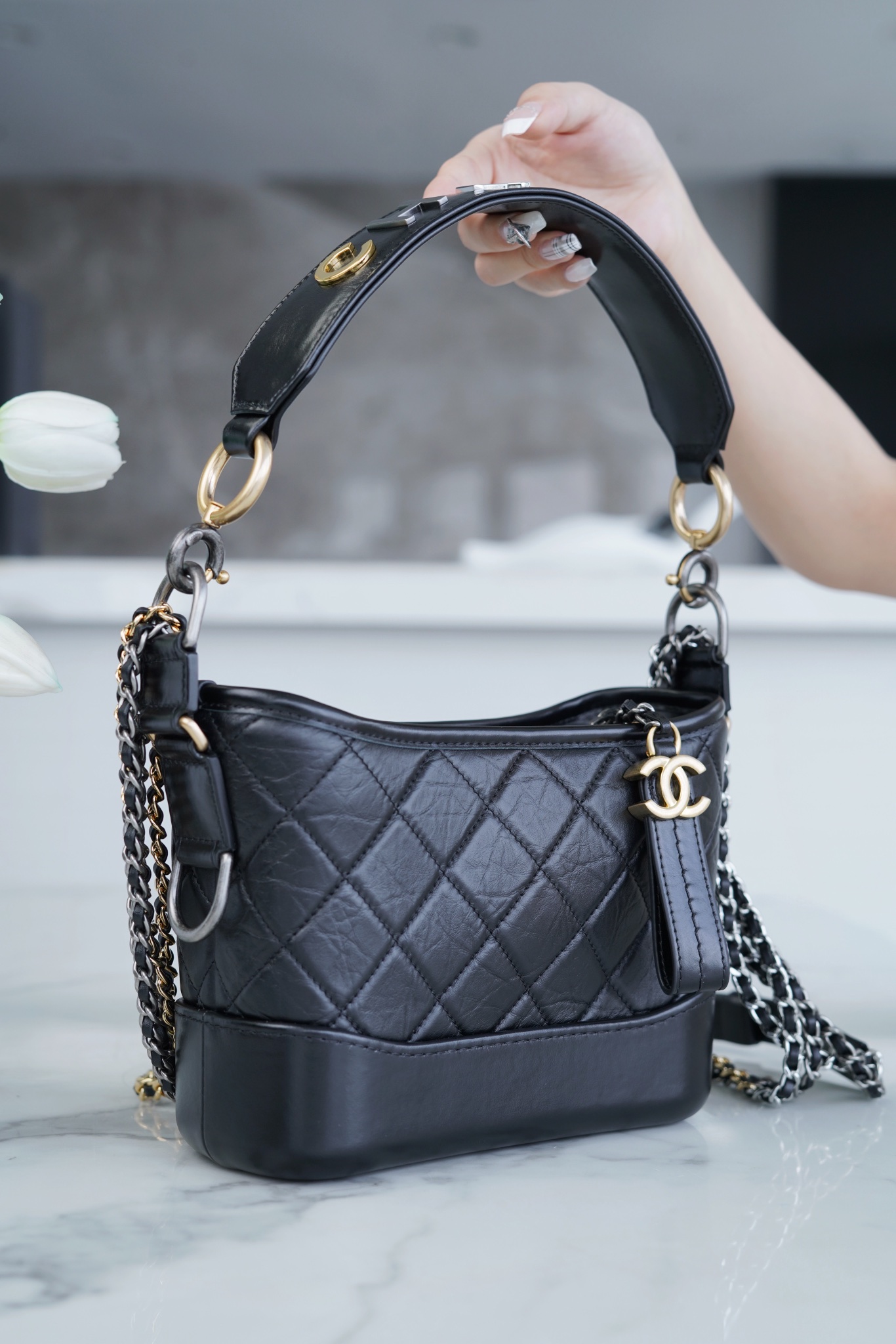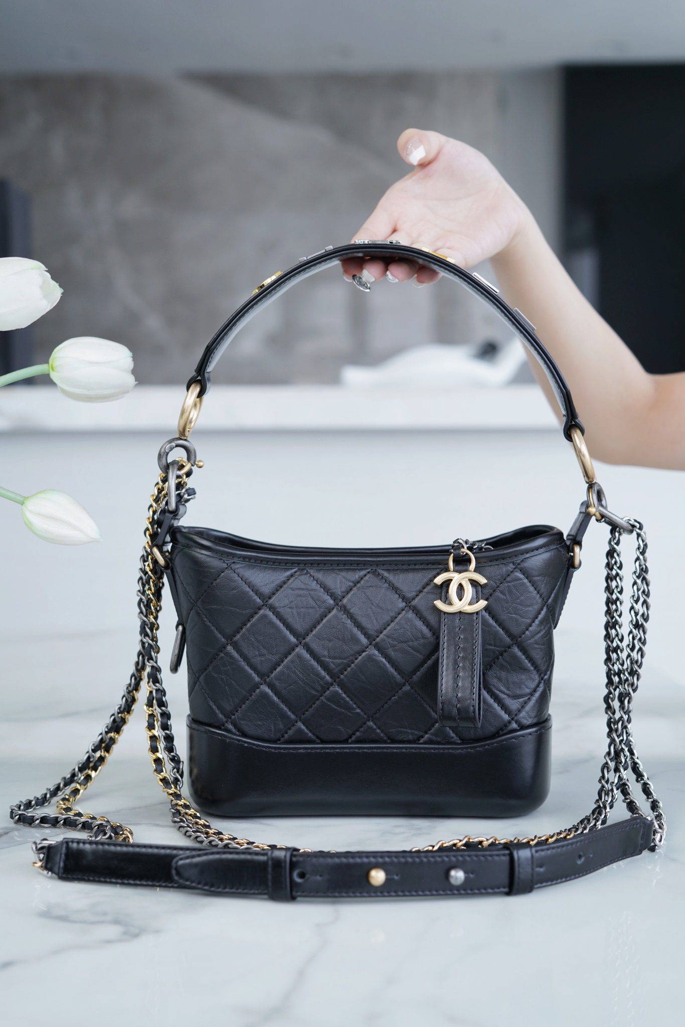 𝗖𝗵𝗮𝗻𝗲𝗹 𝗚𝗮𝗯𝗿𝗶𝗲𝗹𝗹𝗲 ❥经典手提流浪包 黑色 意大利🇮🇹独家进口胎牛皮,纹路自然无规则,正品神韵十足🤍轻盈包身、挺廓底座,独特的金色与银色双色金属手提带,经典拉链开合,缀以标志性双𝐶𝐿𝑜𝑔𝑜,呈现恰到好处的精致优雅! 尺寸:20cm/25cm