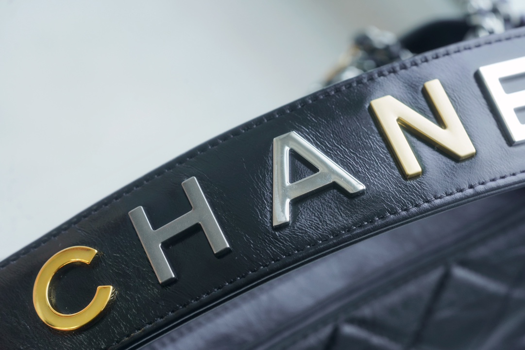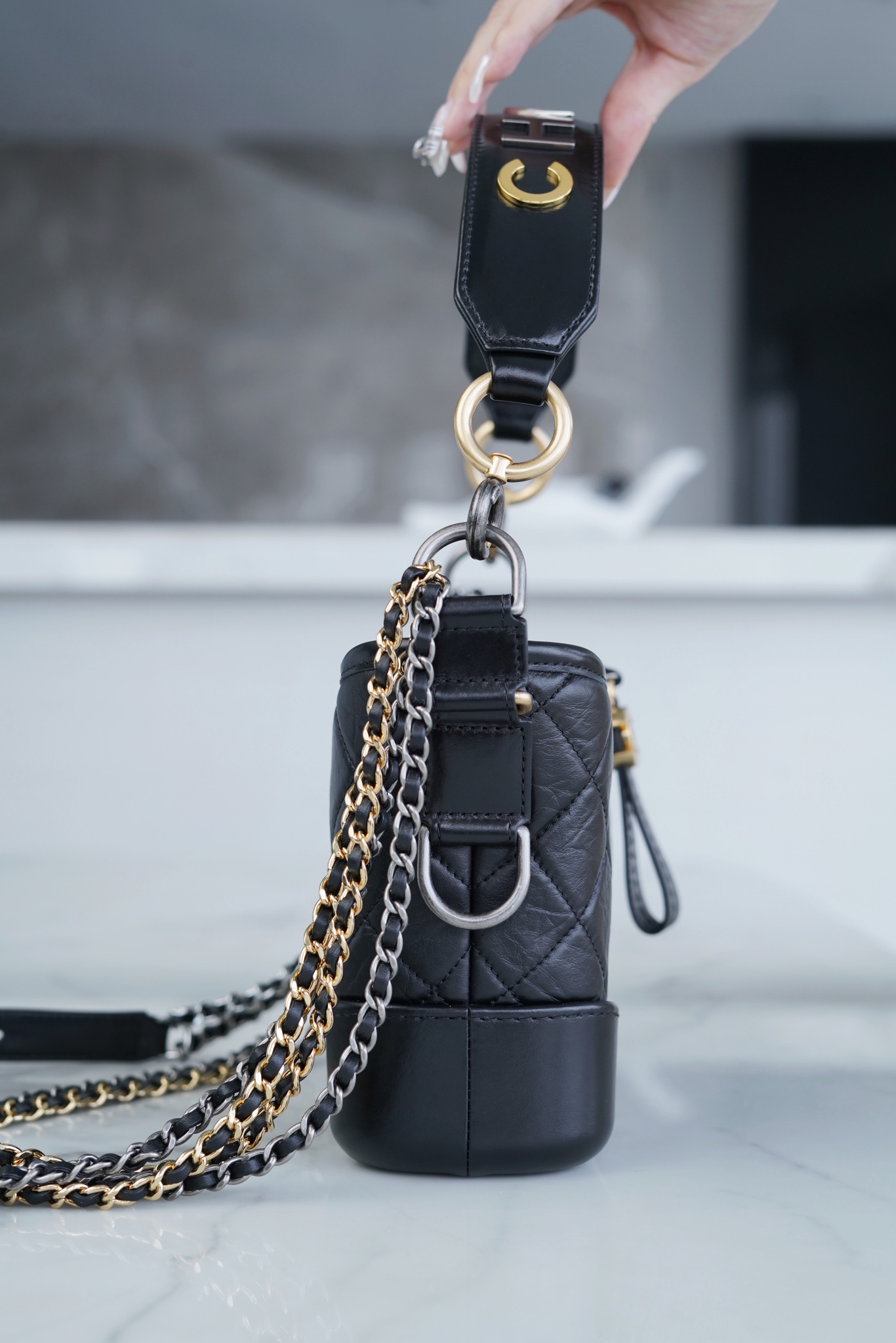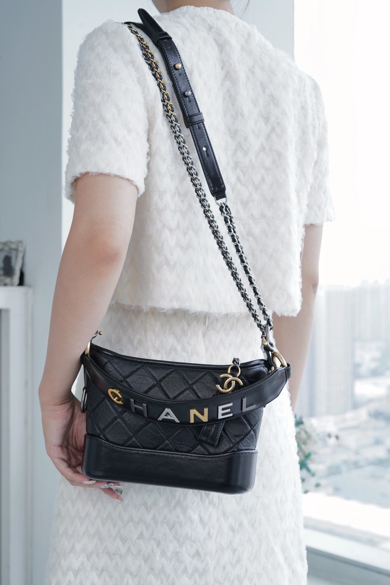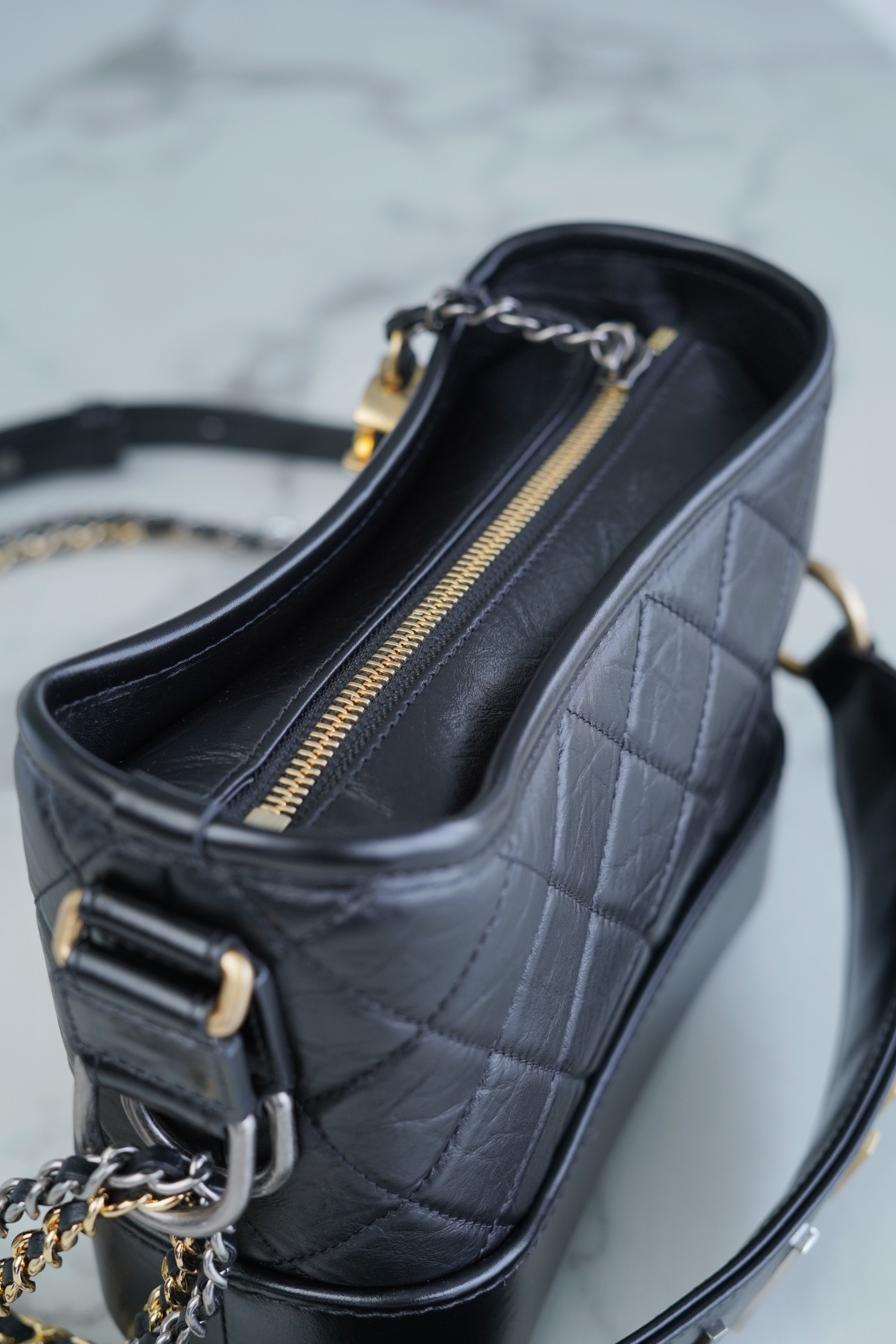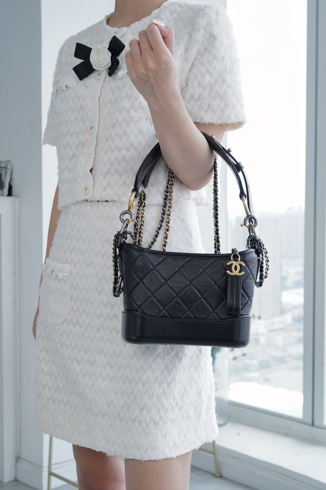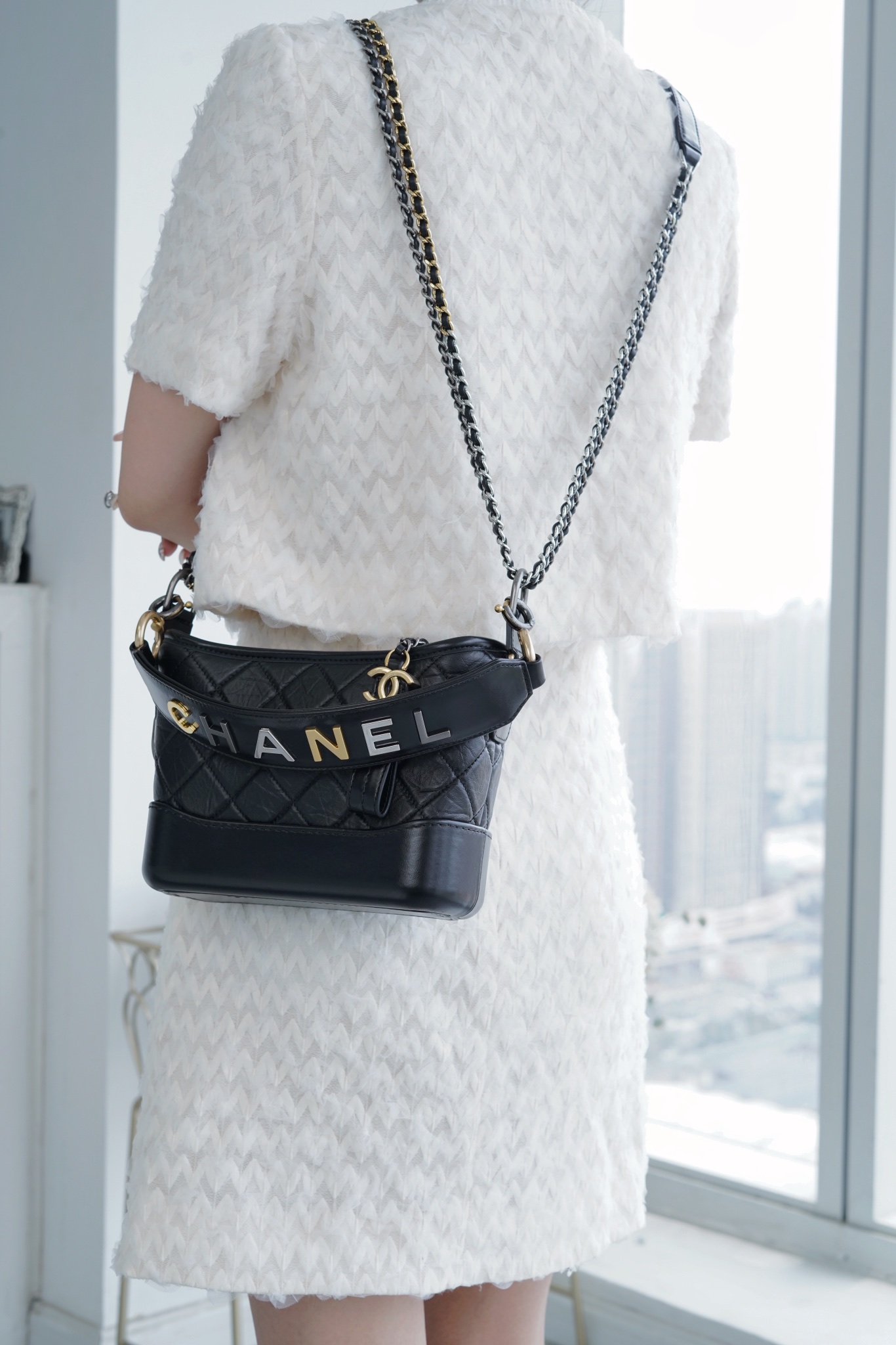 𝗖𝗵𝗮𝗻𝗲𝗹 𝗚𝗮𝗯𝗿𝗶𝗲𝗹𝗹𝗲 ❥经典手提流浪包 黑色 意大利🇮🇹独家进口胎牛皮,纹路自然无规则,正品神韵十足🤍轻盈包身、挺廓底座,独特的金色与银色双色金属手提带,经典拉链开合,缀以标志性双𝐶𝐿𝑜𝑔𝑜,呈现恰到好处的精致优雅! 尺寸:20cm/25cm
