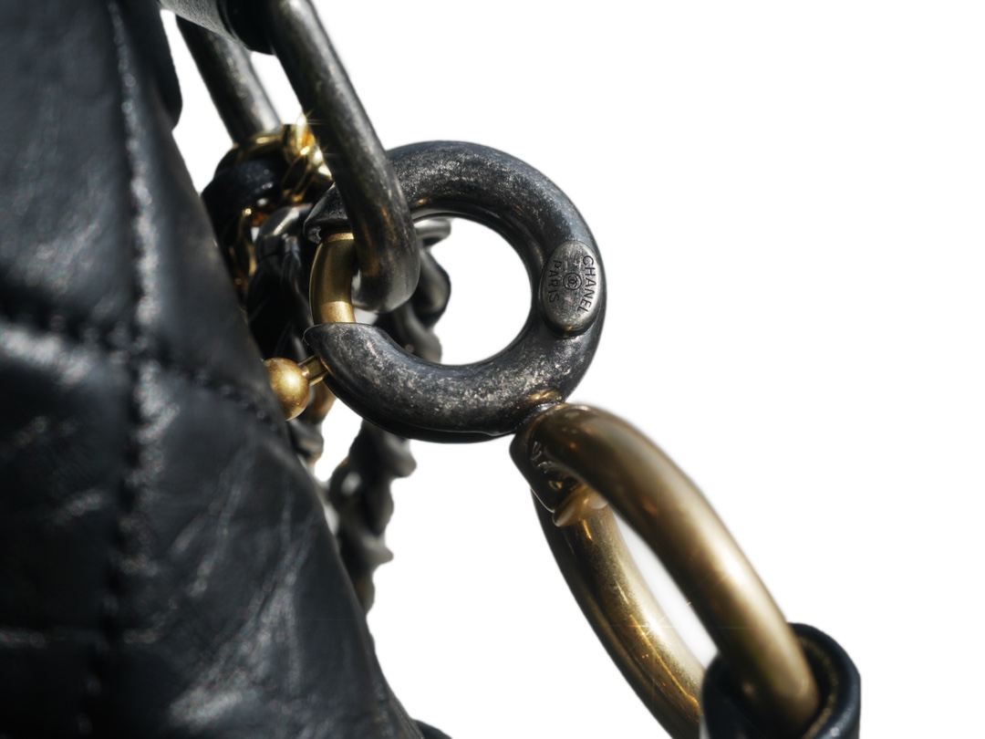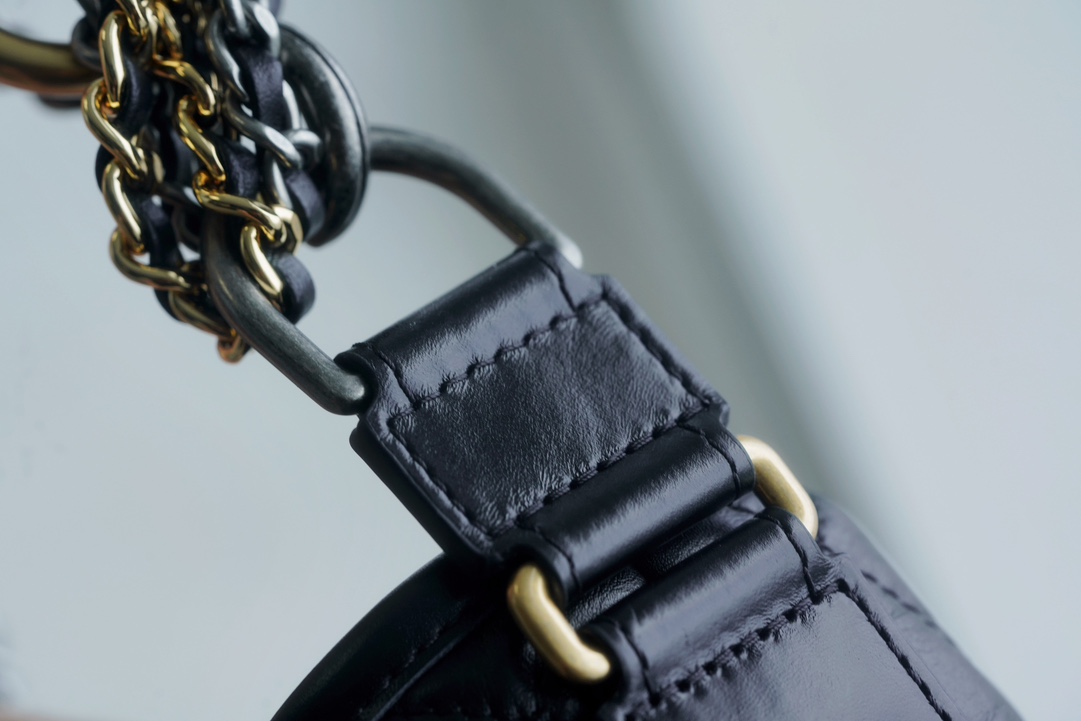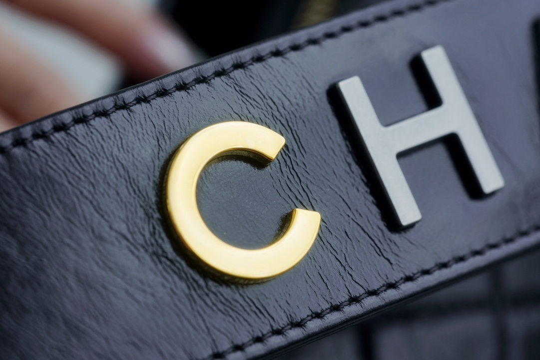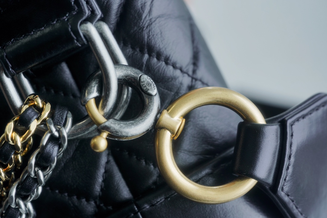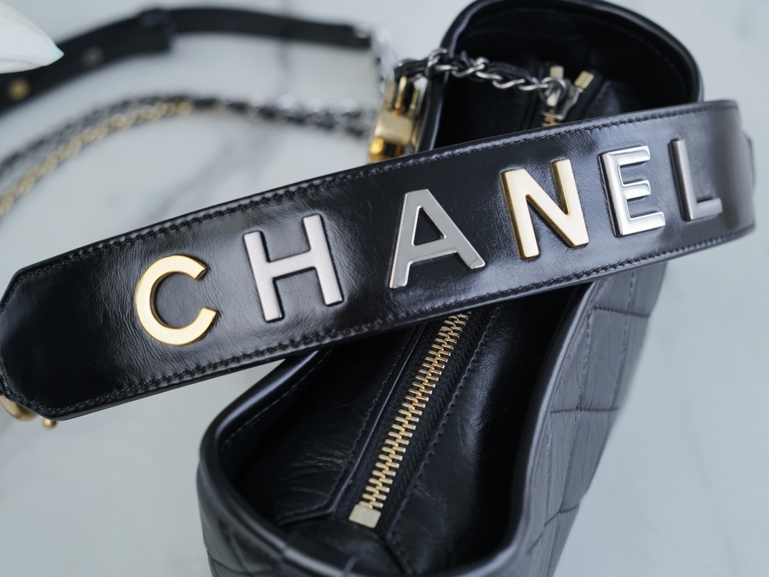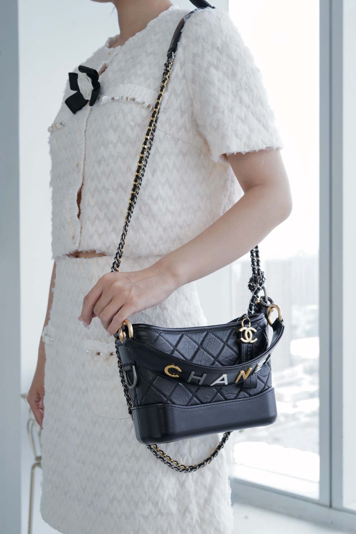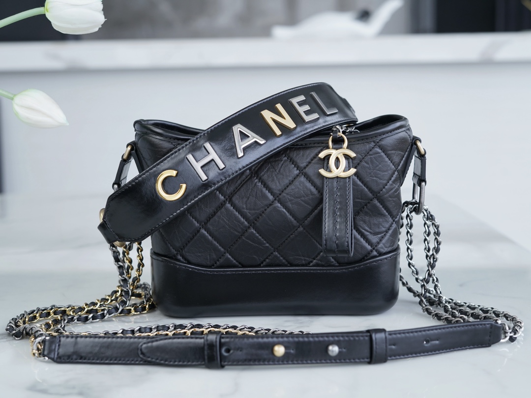 𝗖𝗵𝗮𝗻𝗲𝗹 𝗚𝗮𝗯𝗿𝗶𝗲𝗹𝗹𝗲 ❥经典手提流浪包 黑色 意大利🇮🇹独家进口胎牛皮,纹路自然无规则,正品神韵十足🤍轻盈包身、挺廓底座,独特的金色与银色双色金属手提带,经典拉链开合,缀以标志性双𝐶𝐿𝑜𝑔𝑜,呈现恰到好处的精致优雅! 尺寸:20cm/25cm
