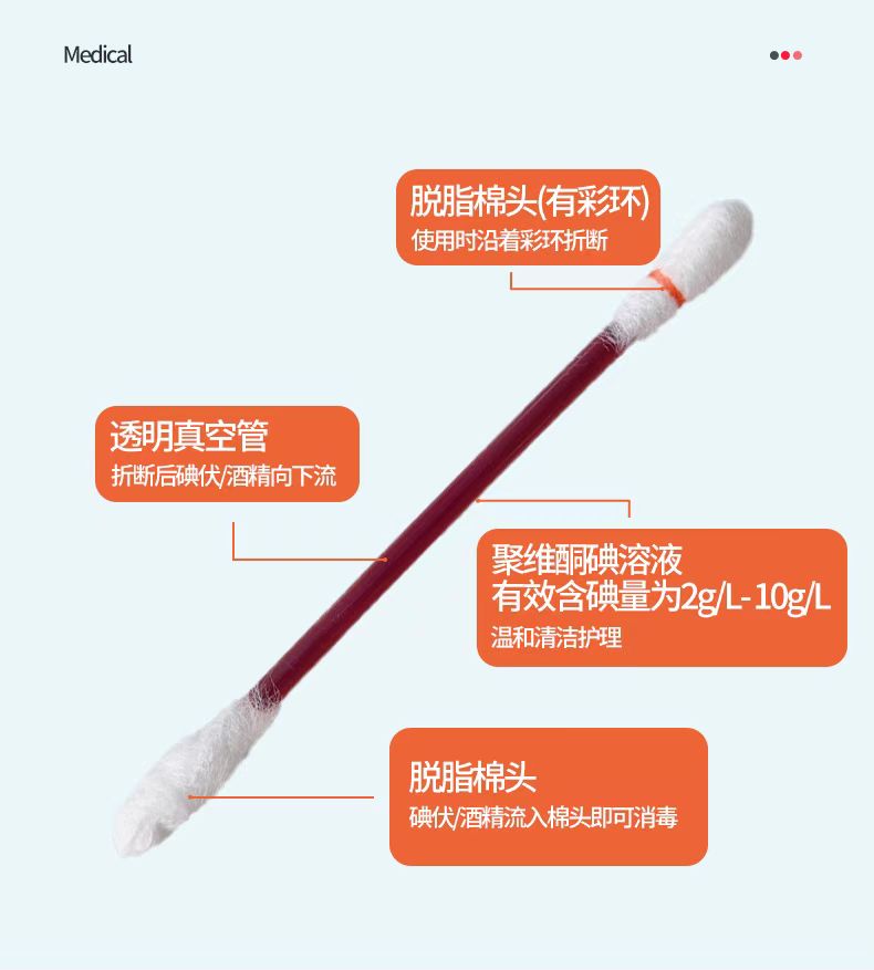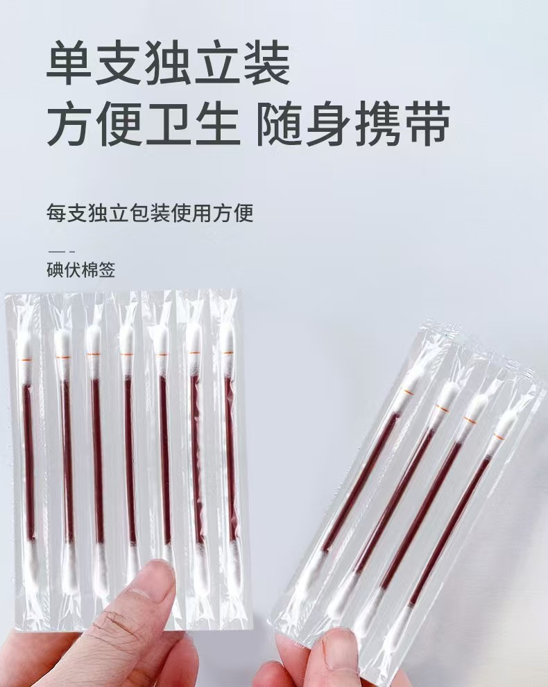 咪熙熊碘伏棉签【2盒72支】一次性新生儿宝宝肚脐带消毒无菌婴儿碘酒棉棒