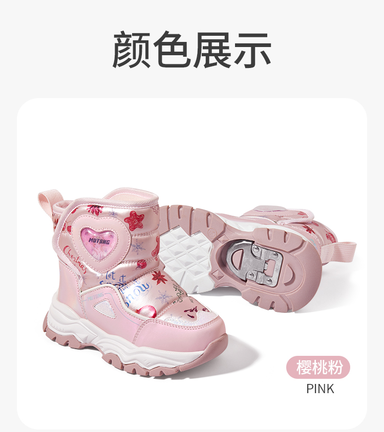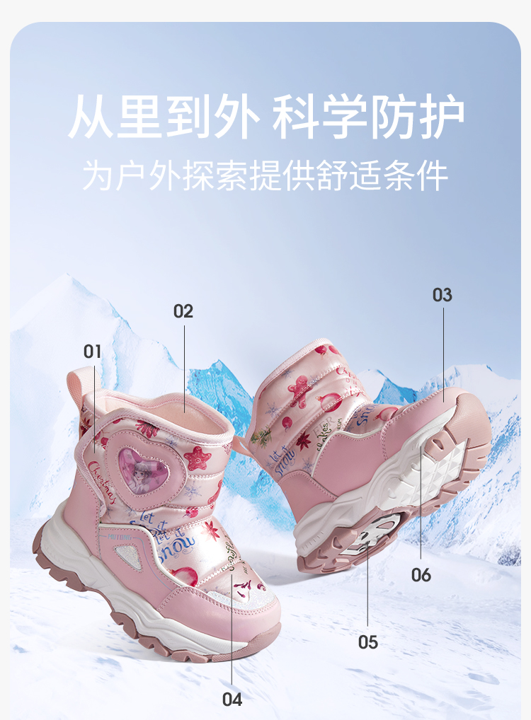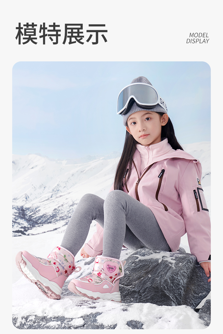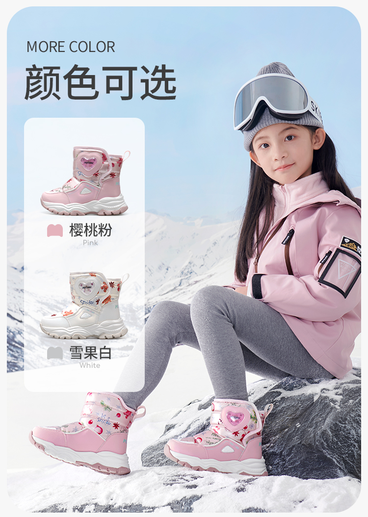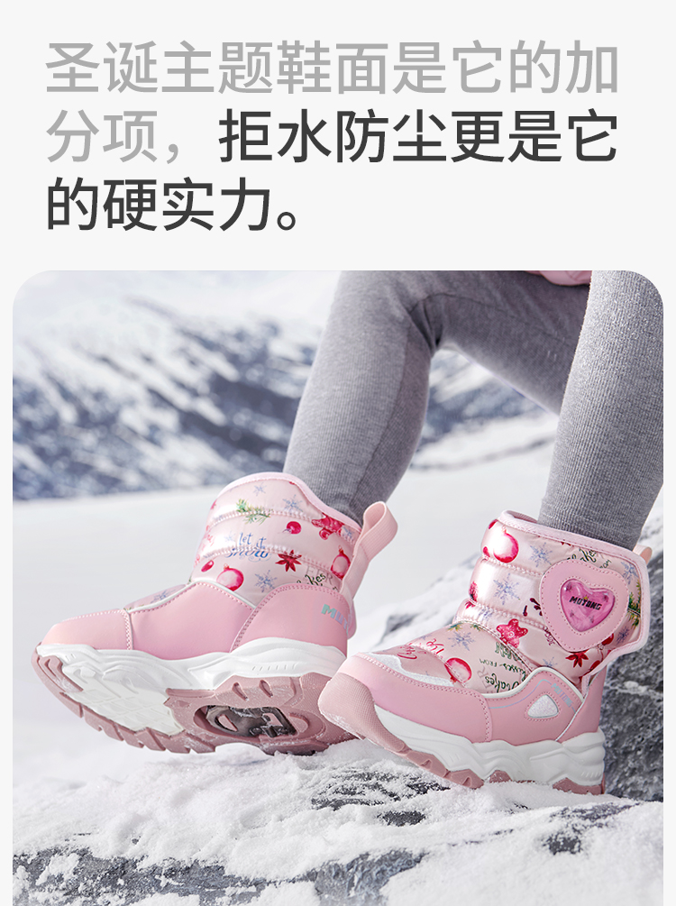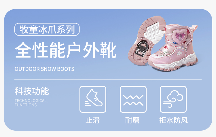 牧童冬季高筒滑雪雪地靴4-12岁中大童棉鞋子宝宝大棉加绒运动棉靴