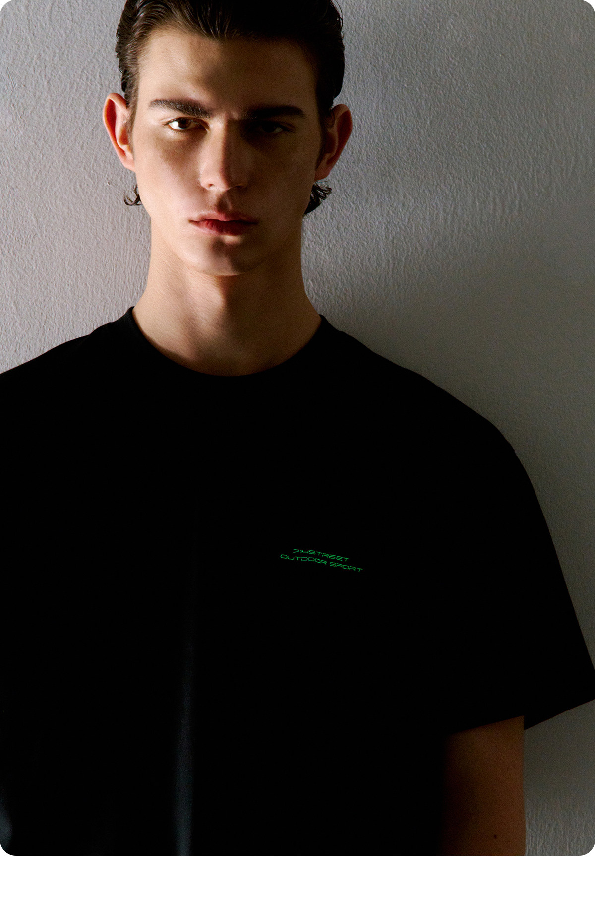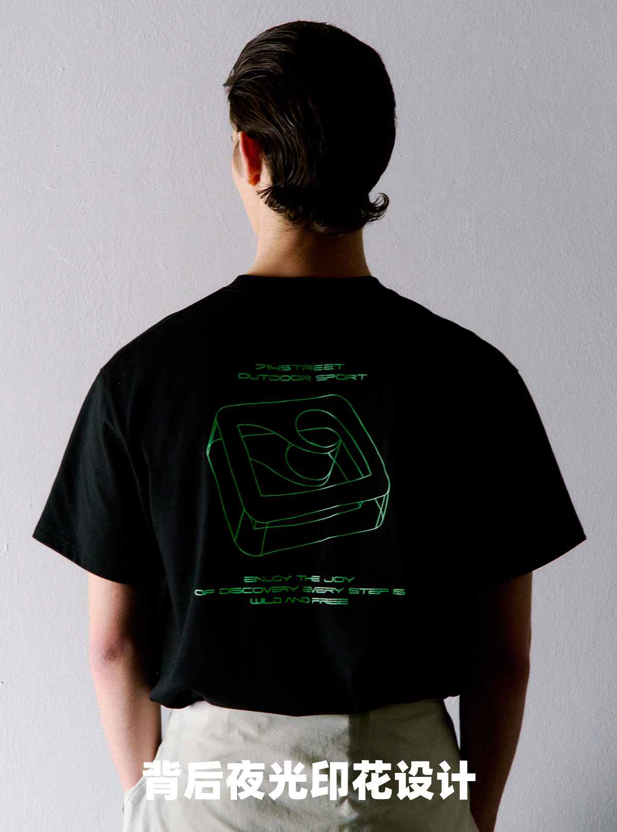 714street夏季7A抗菌速干凉感短袖男潮牌宽松圆领夜光印花情侣T恤