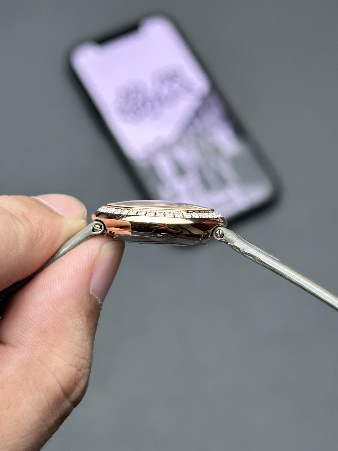 表带材质采用意大利小牛皮、且另有绢丝表带可供选择,质感表带,为腕间增添高雅迷人的魅力;表带装配针式表扣,佩戴方法十分简易~