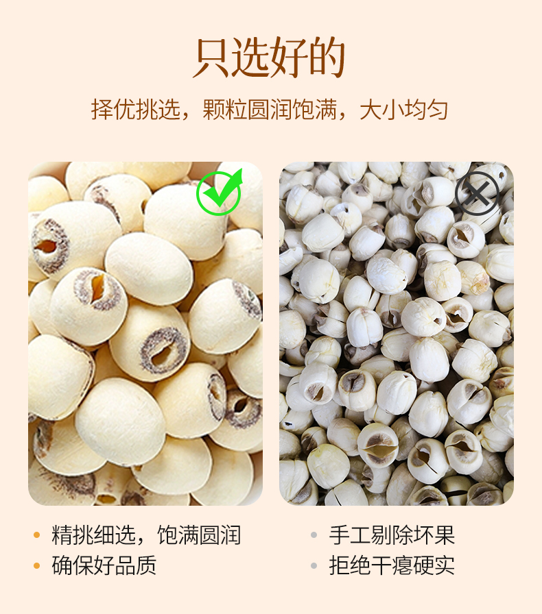 燕之坊莲子200g 磨皮莲子干货去芯莲特产无芯莲百合银耳莲子羹
