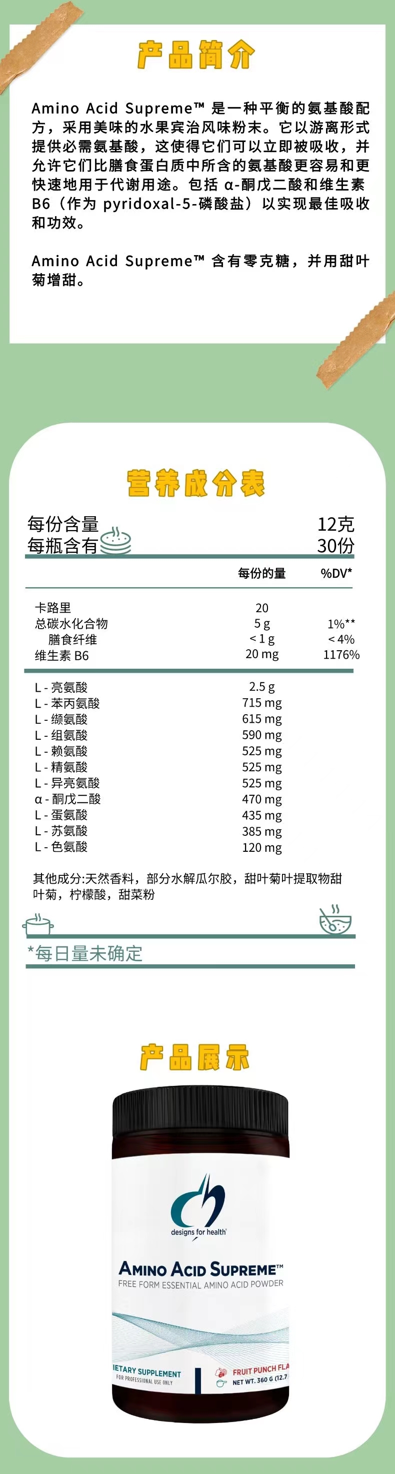 海淘 健康设计 至zun氨基酸粉剂 Amino Acid Supreme 360克/瓶 04/26
