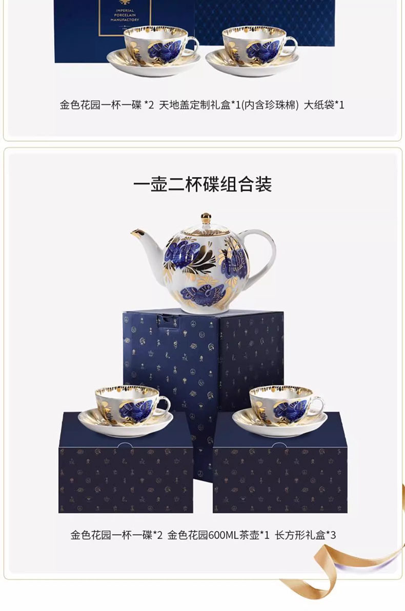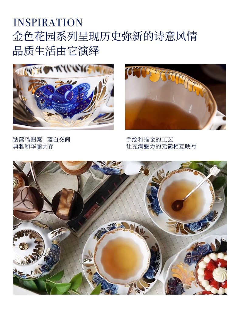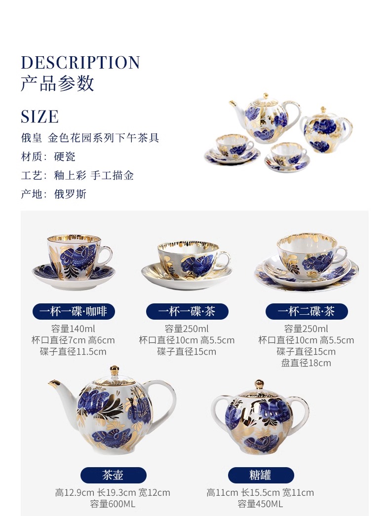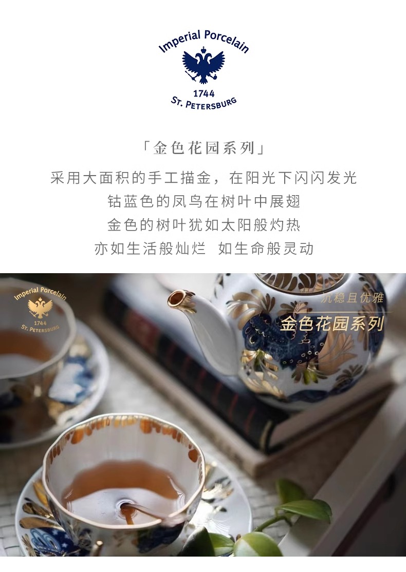 LOMONOSOV 俄皇 金色花园咖啡杯子高档精致陶瓷英式下午茶具套装