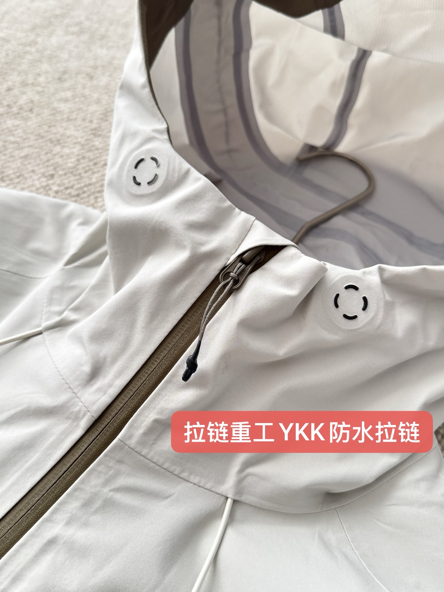 全身压胶!! 只要是大家能看到的位置都是压胶!!! 且大家注意看原chang压胶水准!!! 他的拉链都是防水压胶拉链!! ⚠️让我们在雨天也保持干爽体感!