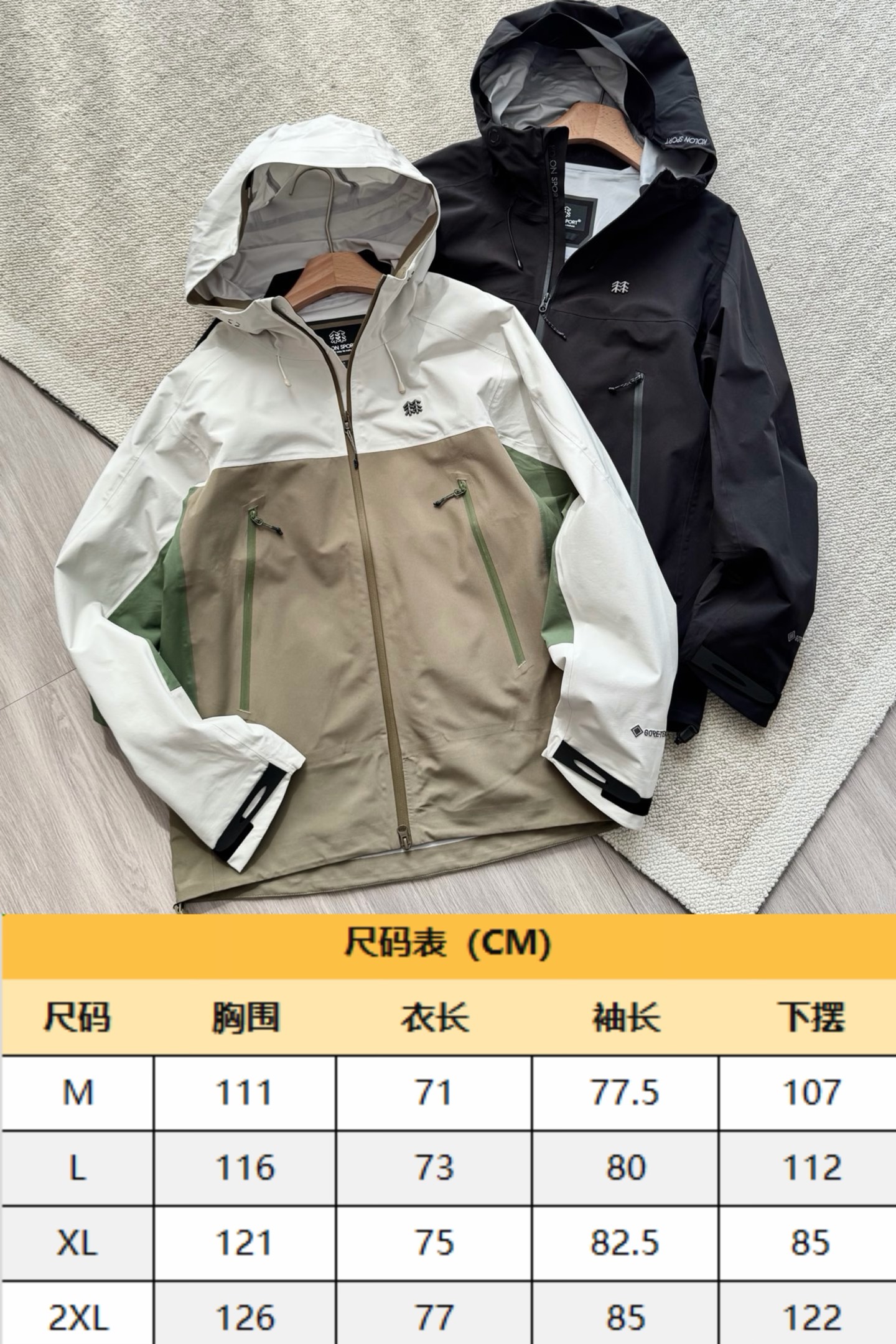 原可隆!! 专业级研发客供面料 ⚠️70D锦纶GORE-TEX 3L TriCot面料 全身都是实打实的100%锦纶材质 完全不是那种软塌塌 没质感的便宜货! 能够有效阻挡水分侵入!同时允许体内湿气和热气顺利排出,真正实现既防水又透湿的舒适体感,区别常规冲锋衣!真心舒服!!