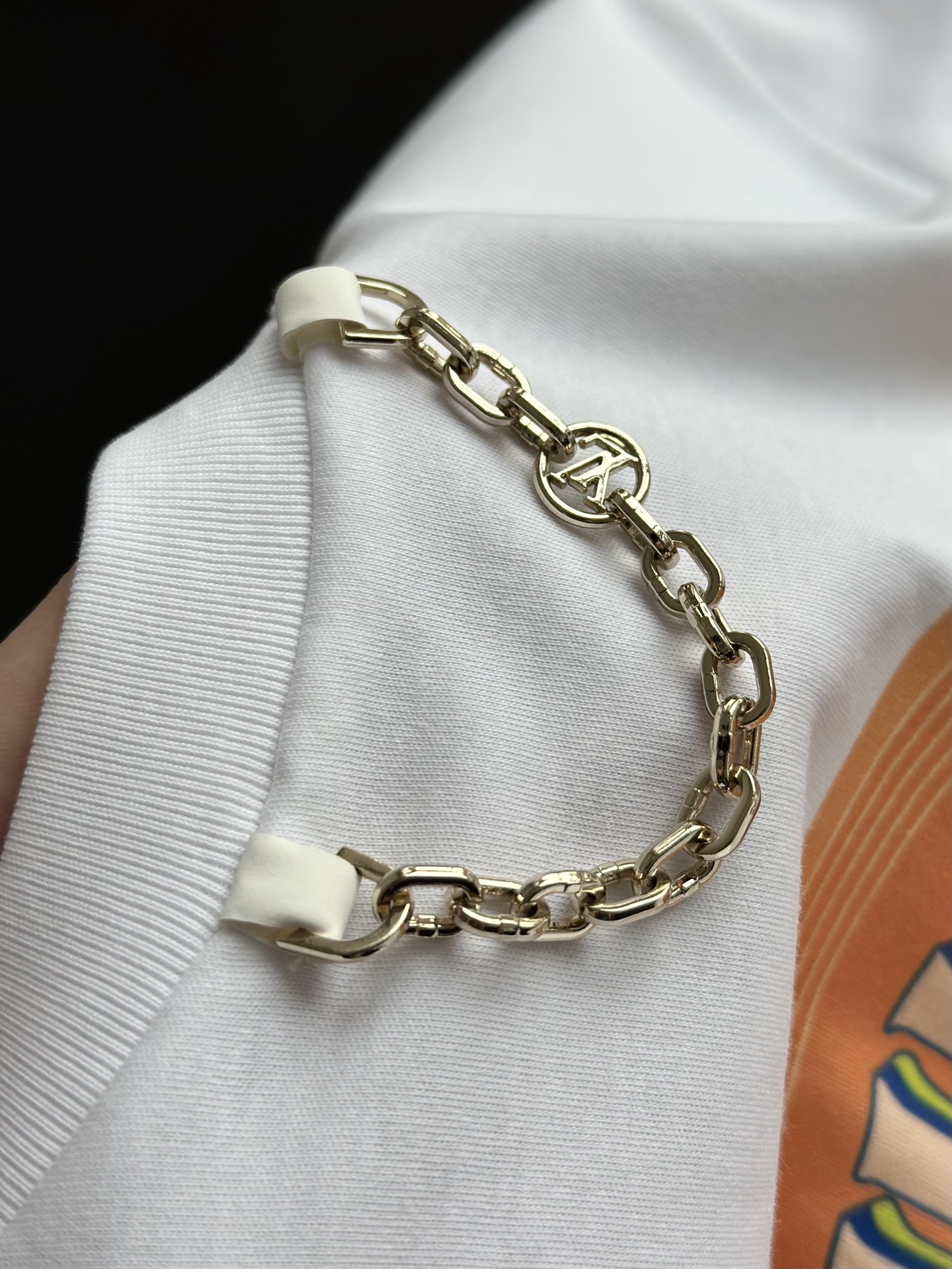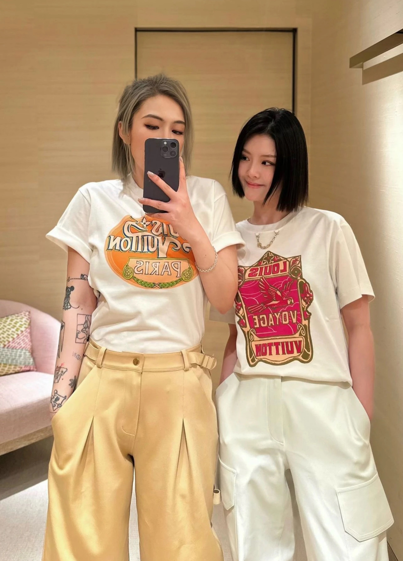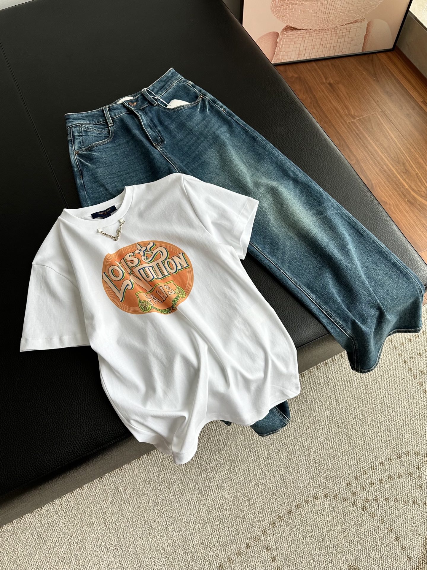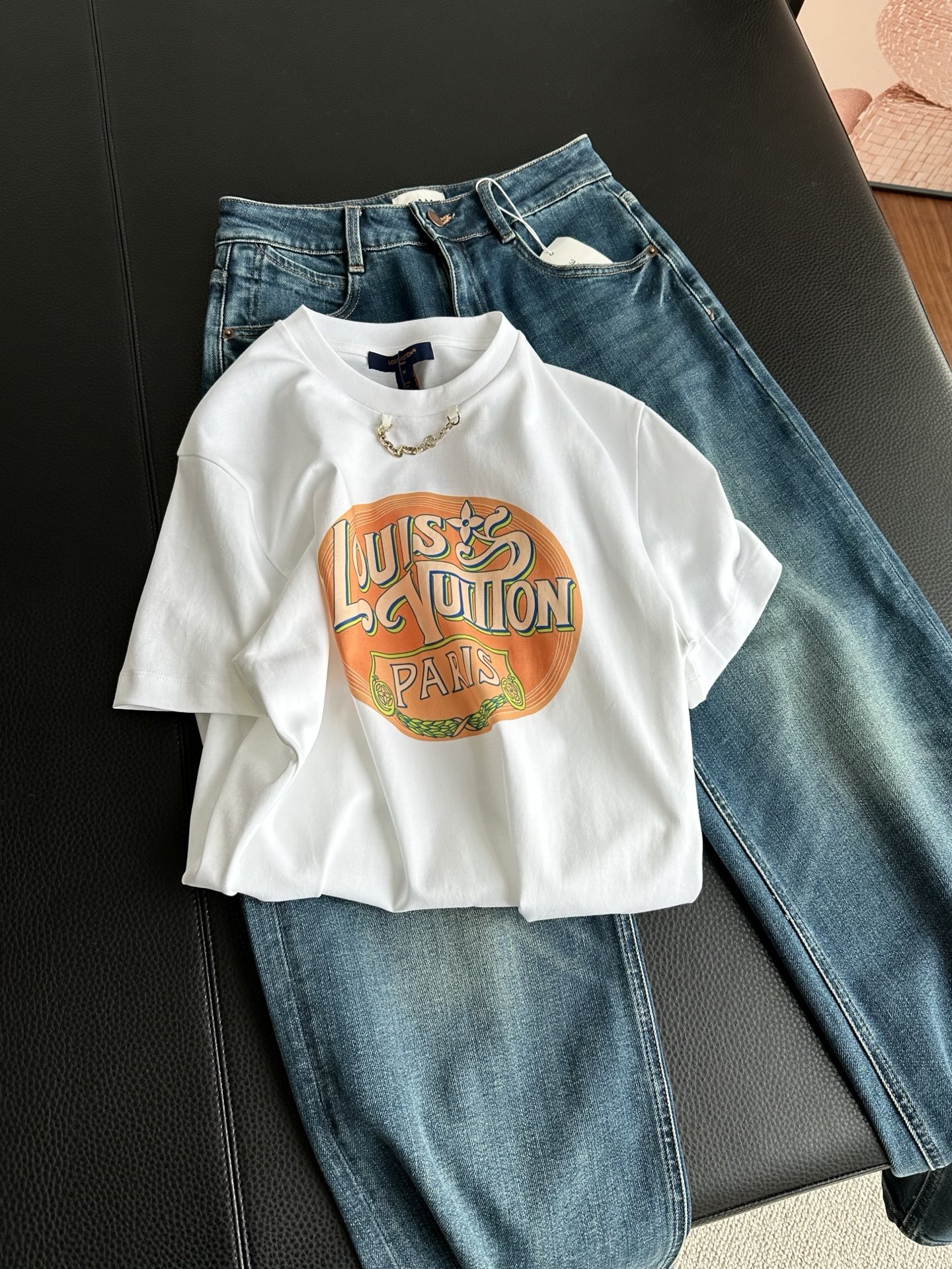 Lv 25夏装巴黎旅行印章T恤 全新夏季巴黎旅行印章T恤,面料为100%全棉50支纱220克双面平纹布料,其面料特性就是舒适柔软透气,印花采用康利全棉活性透气数码印花,印完花后在整个印花上的宝蓝色部位又加一层光亮的油光浆料,加了这层工艺后印花效果会更加光亮更特殊一点,领口的浅金色lv镀金链一直是lv的女款T恤百搭的经典装饰! 码数:S/M/L
