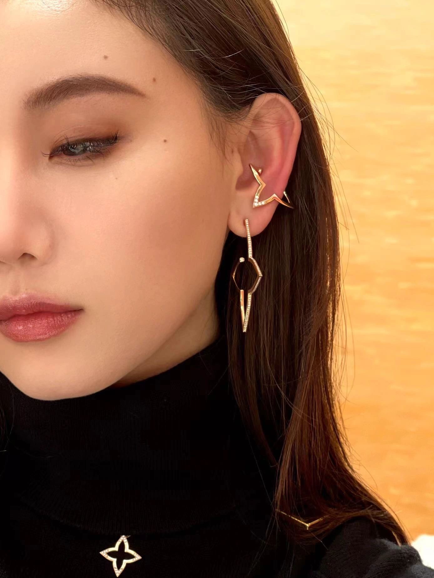 Mini Hoop 18K 金耳环致意品牌经典花卉的绽放,以镂空结构塑造星形 Monogram 花卉,再以璀璨钻石耳钉点亮星辉。可混搭同系列其他单品,尽展典雅风范